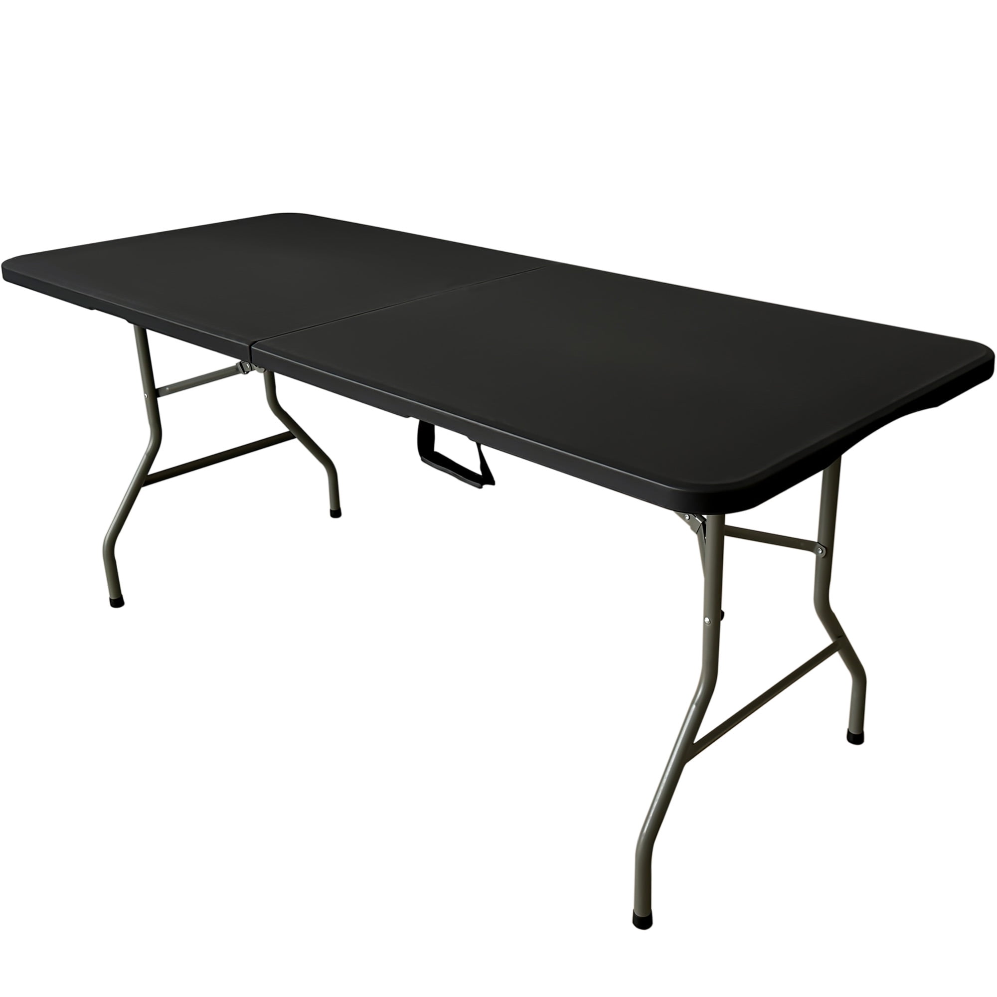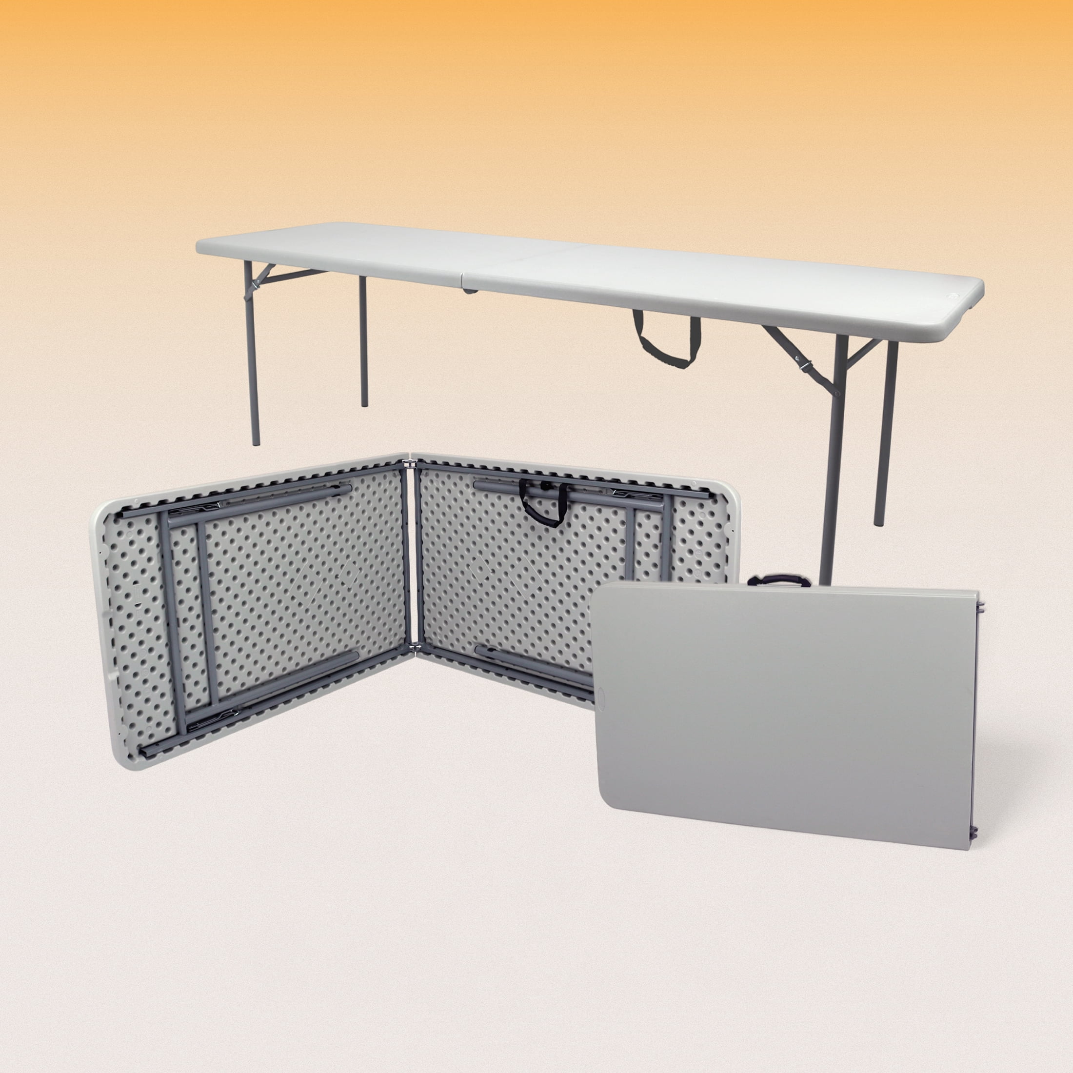 Looking for the perfect table for all your gatherings? Meet the Frank Premium Fold-in-Half Table, your new go-to for any occasion, whether it’s a backyard BBQ or a fun indoor game night. Made from super tough UV-resistant HDPE plastic, this table can handle anything you throw at it without getting scratched. Its smart leg design means no more bumping into annoying table legs, giving you and your friends plenty of space and comfort on all sides. This table is all about versatility. Need a spot for a big family dinner, a DIY project, or a community event? It’s got you covered. The sturdy steel legs and 1.75″ thick blow-molded top, supported by an industrial-grade 18-gauge frame, ensure it stays rock solid on any surface, while the non-slip covers protect your floors and keep everything steady. This 30” x 96” versatile table, with its cool speckled grey color looks great anywhere – indoors or out. And the best part? Setting it up is a breeze. Just unfold it, and you’re ready to go in seconds. No tools, no hassle. So, get ready to enjoy extra space and endless fun with the Frank Premium Seating Fold-in-Half Table from Hampden – where durability, convenience, and good times come together!