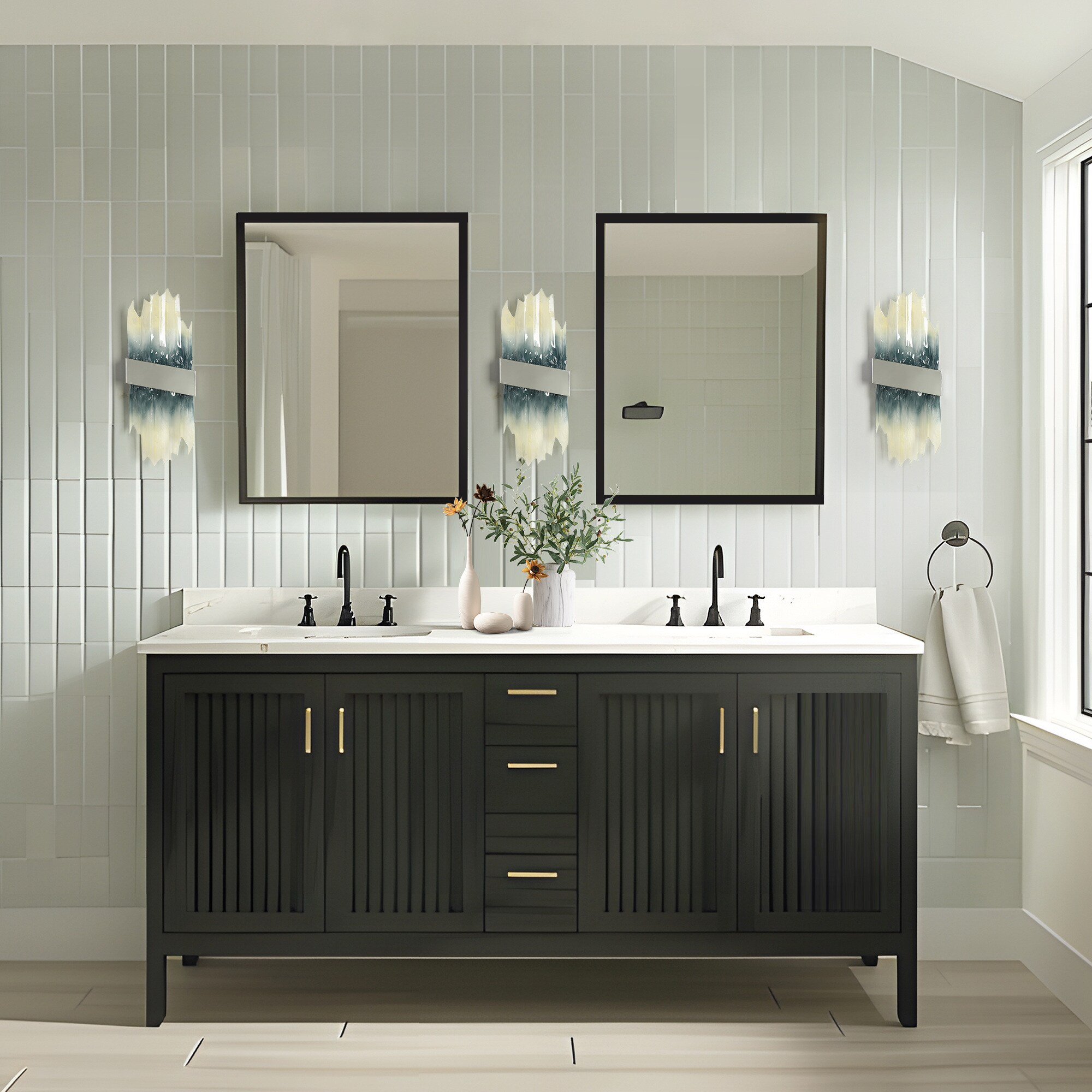 Add a touch of elegance and modern design to your space with this exquisite resin wall sconce. Featuring a beautiful blue and white gradient finish, it effortlessly blends contemporary style with artistic flair. The sconce is equipped with an energy-efficient LED bulb, providing soft, ambient lighting that enhances any room. Perfect for adding a unique statement piece to your living room, hallway, or bedroom.