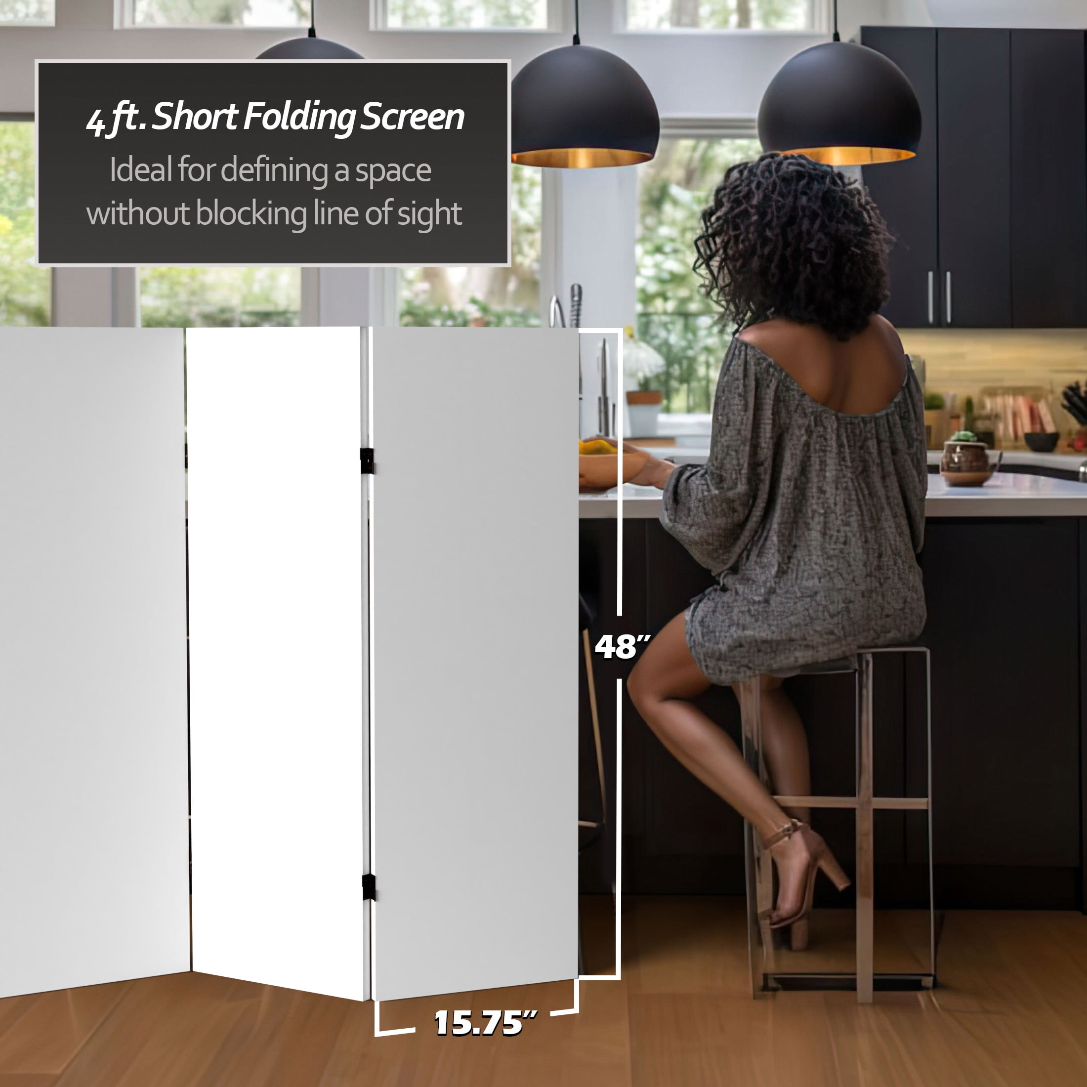 Add a personal touch to your space with this handmade room divider. Its white canvas surface invites you to unleash your creativity and make it your own. Perfect for creating privacy, dividing a room, or adding a decorative focal point to any indoor setting. Features: Double-sided, Do it Yourself design Contemporary style with a primary color of white Made with a wood-framed, free-standing board Available in three, four, five, or six panel options Material: Wood and canvas Screen height: 4 feet Average standing width (as shown in image): 37 inches Dimensions: Flat dimensions: 48 inches high x 47 inches wide Story Behind the Art: This room divider is handcrafted by skilled artisans in a third-generation family-run workshop in mainland China. The artists are hired out of semi-retirement to work from home, passing on their age-old techniques to the next generation. By purchasing this item, you are supporting their efforts to keep these traditions alive. What is Worldstock? Worldstock is an initiative that partners with artisan groups and small businesses around the world to bring their unique, handmade goods to a wider audience. Each item is crafted with care and reflects the cultural heritage of its maker. *Ships Carbon Neutral: We are committed to reducing our carbon footprint and have partnered with carbonfund.org to offset our shipping emissions.