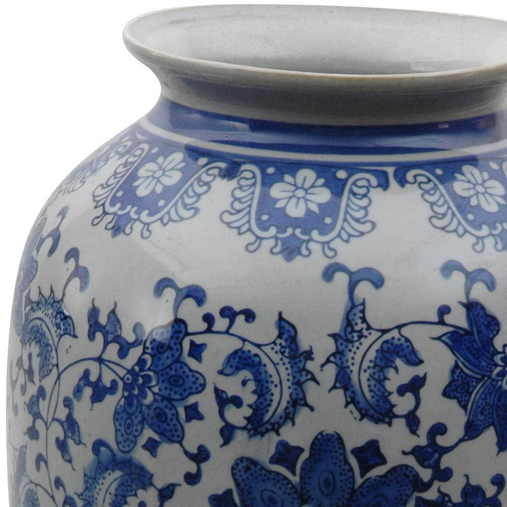 This unique and elegant vase offers with a wide opening for displaying a large bouquet of flowers. With an overall shape is similar to a decorative jar, this Tung Chi vase is handmade of porcelain with a blue and white floral pattern. Product Features: Color options: Blue/white Materials: Porcelain Opening: 4 inches in diameter Dimensions: 14 inches high x 8 inches in diameter Stand not included Story Behind the Art: This handcrafted item and many others come from a third-generation, family-run workshop in mainland China. Their skills of hand-painting, hand-rubbed lacquering and hand-tooling have been passed down for many generations. We are proud to support them in their quest to keep their age-old techniques alive for future generations. Many of the artists are hired out of semi-retirement to work from home, training the next generation to become master craftsmen. These masters are highly respected in their craft and their culture which have survived through many Chinese dynasties and continue to produce valuable and desirable pieces for your home decor. What is Worldstock? The handcrafted touch of artisan skill creates variations in color, size and design. If buying two of the same item, slight differences should be expected. Note: Color discrepancies may occur between this product and your computer screen. Imported Ships Carbon Neutral*