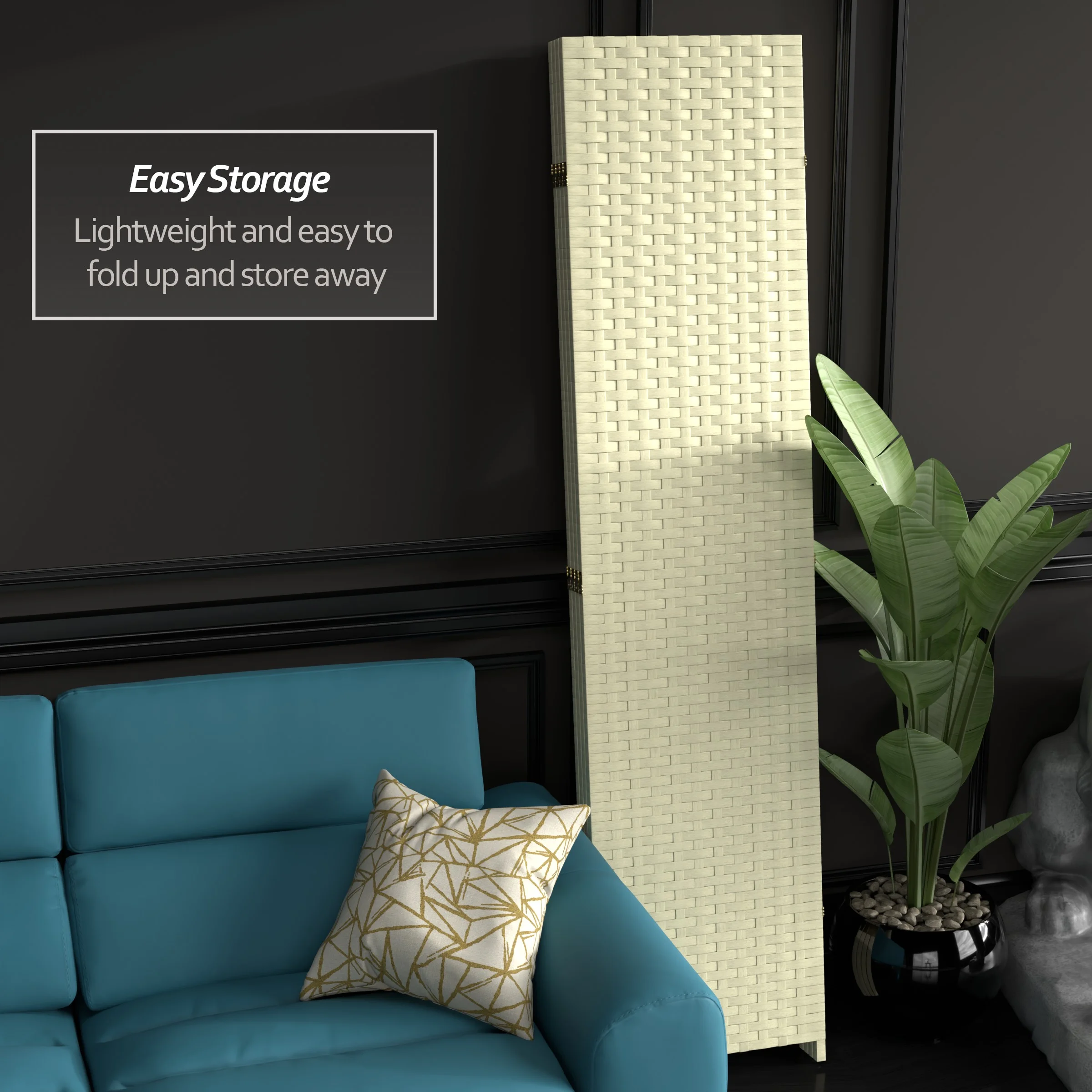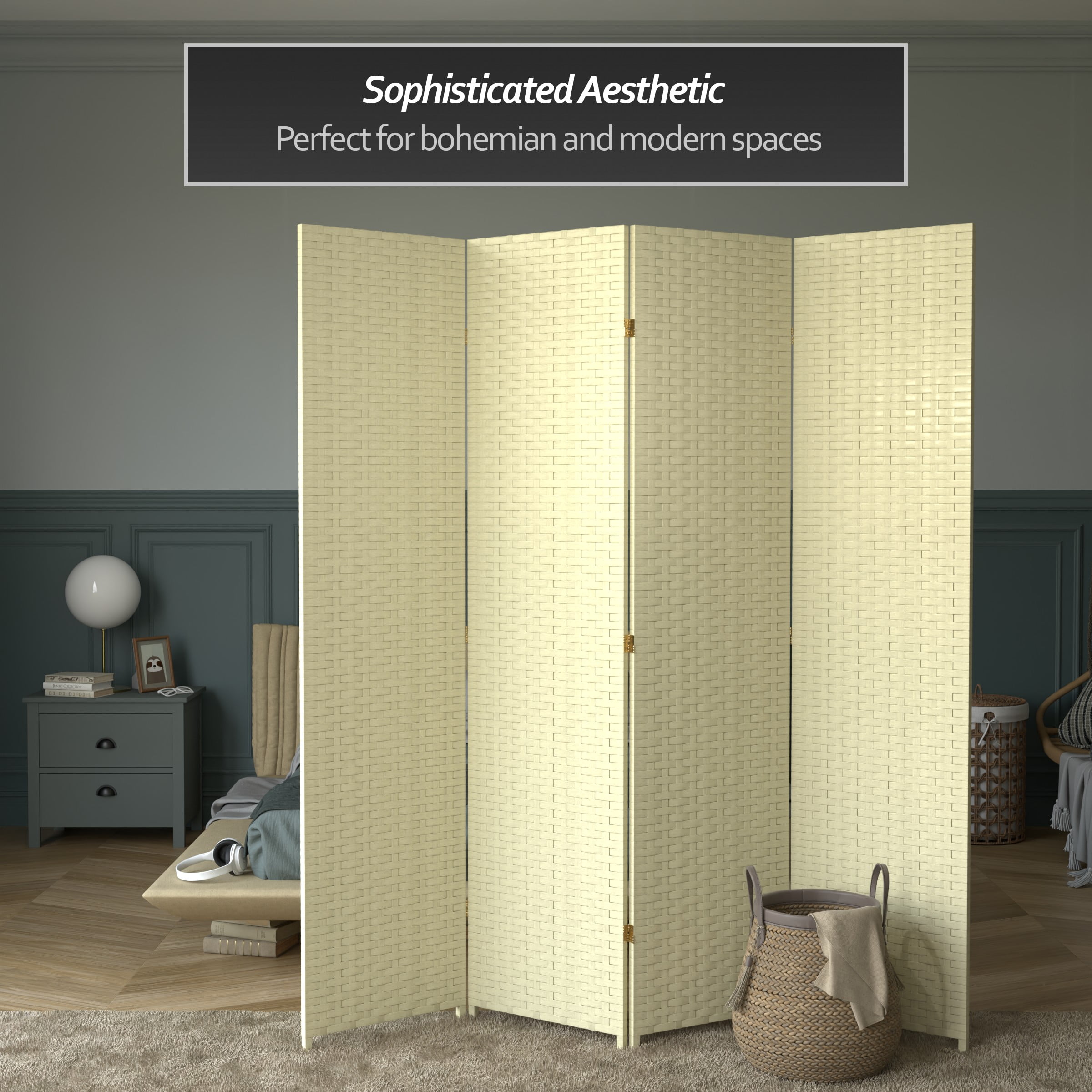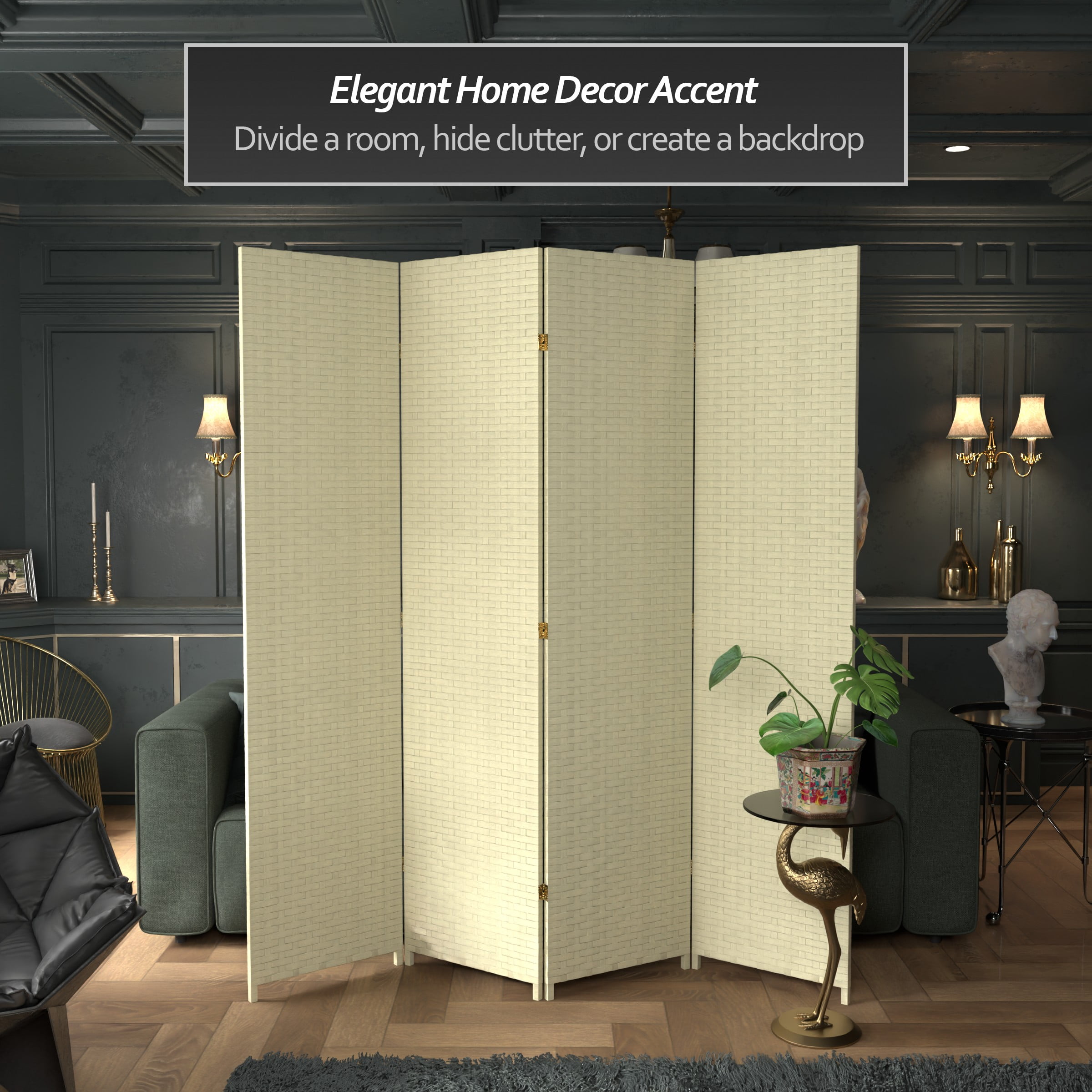 Red Lantern 7 ft. Tall Woven Fiber Folding Screen – Cream – 4 Panel