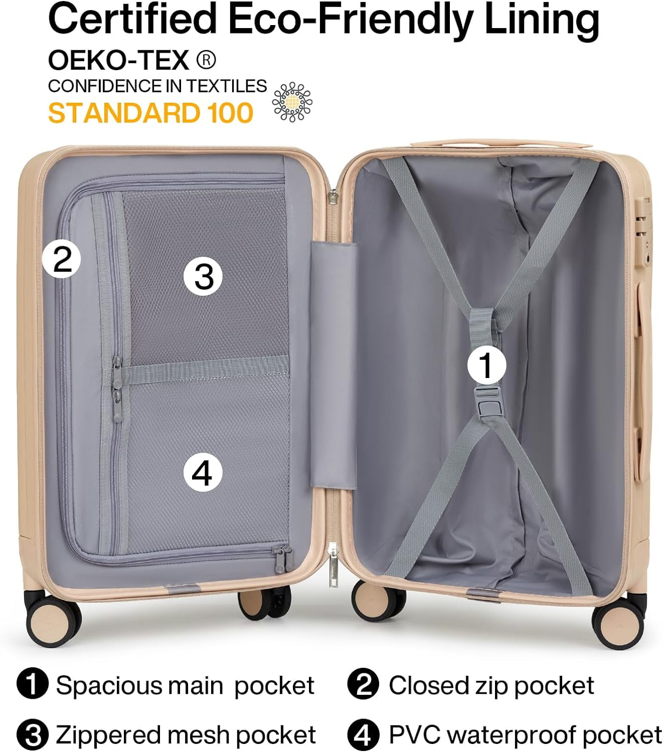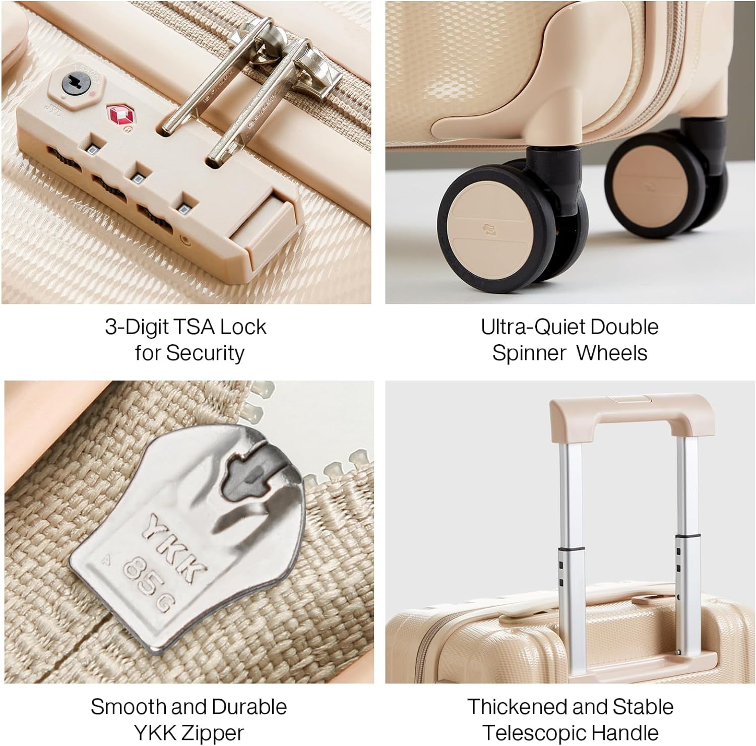 Hanke Upgrade Carry On Luggage Airline Approved, 20 Inch Lightweight Hardside Suitcase PC Hardshell Luggage with Spinner Wheels & TSA Lock,Carry-On 20-Inch(Cuban Sand)
