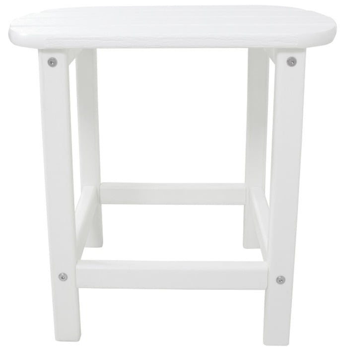 19″ x 15″ side table from Hanover’s All-Weather Collection Made out of 100% eco-friendly materials Naturally resists UV fading, moisture, staining, insects, salt and corrosive substances. All-weather material requires no painting, staining, waterproofing, or similar maintenance Commercial-grade stainless steel hardware Frames resemble wood but will not splinter, crack, chip, peel, or fade No maintenance required Color: White