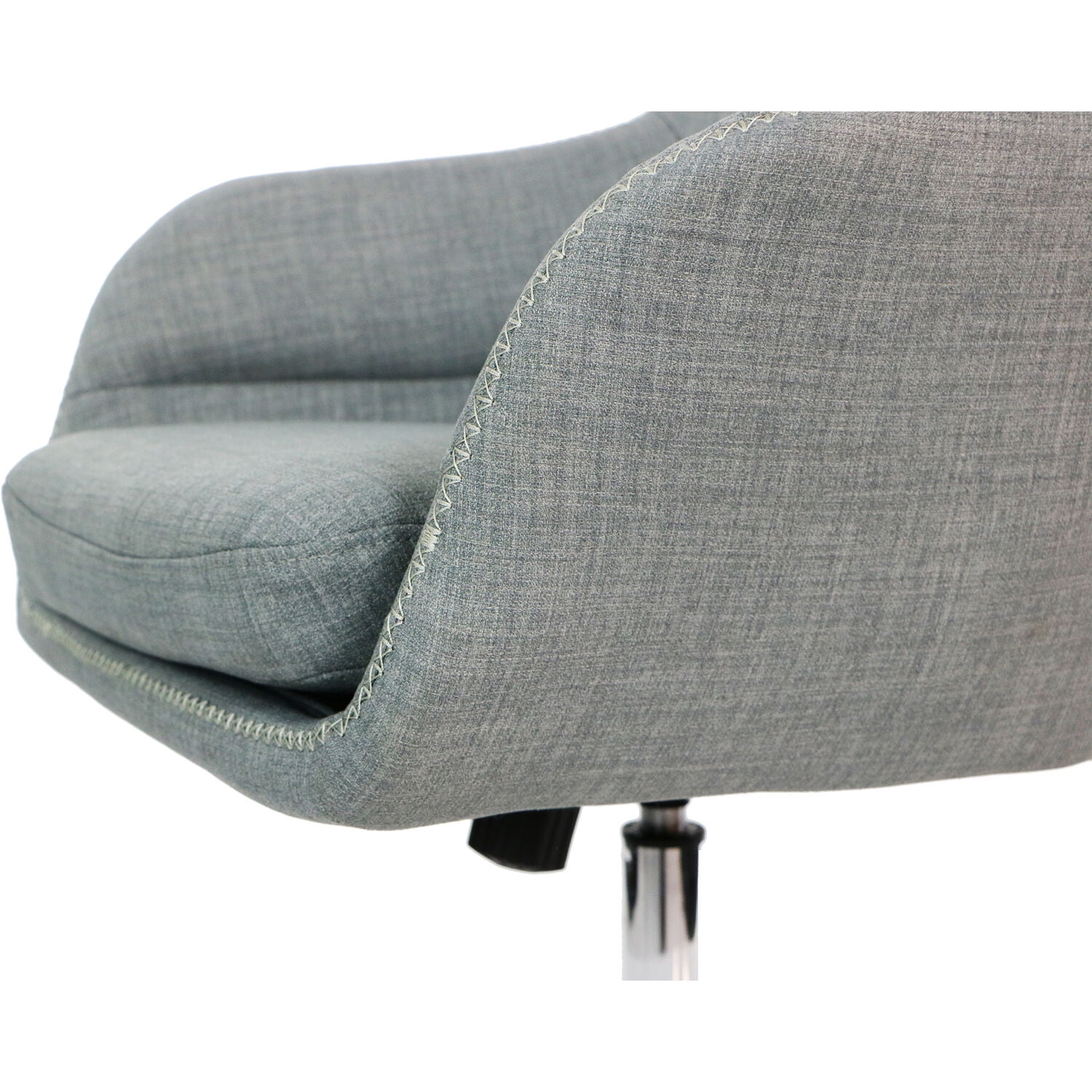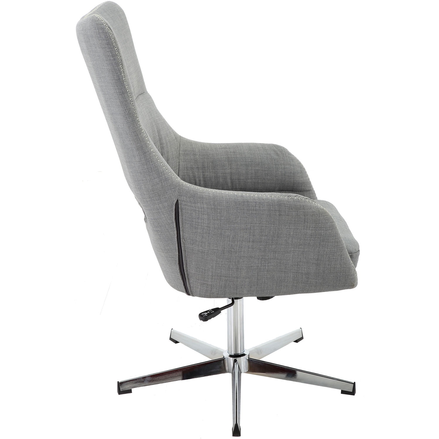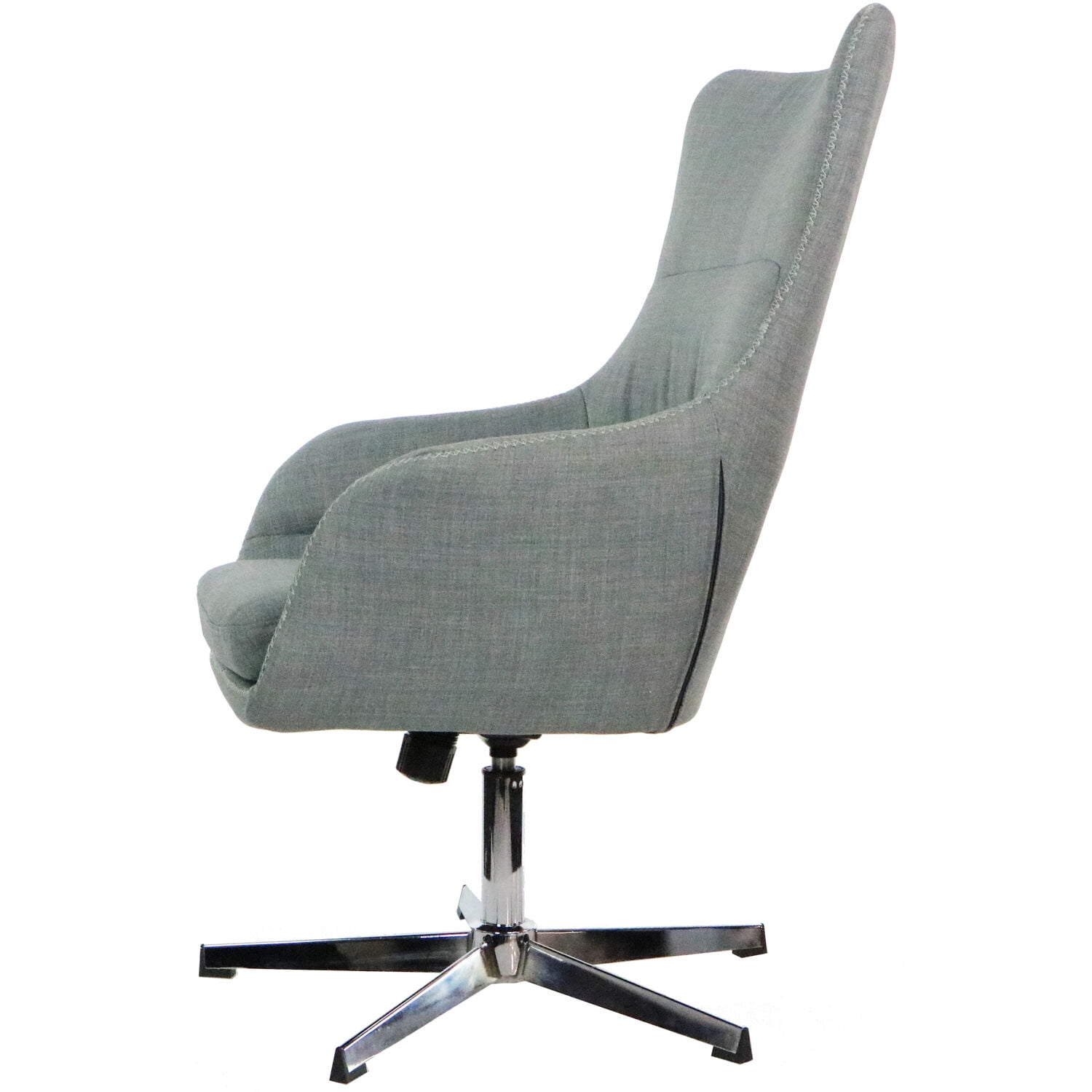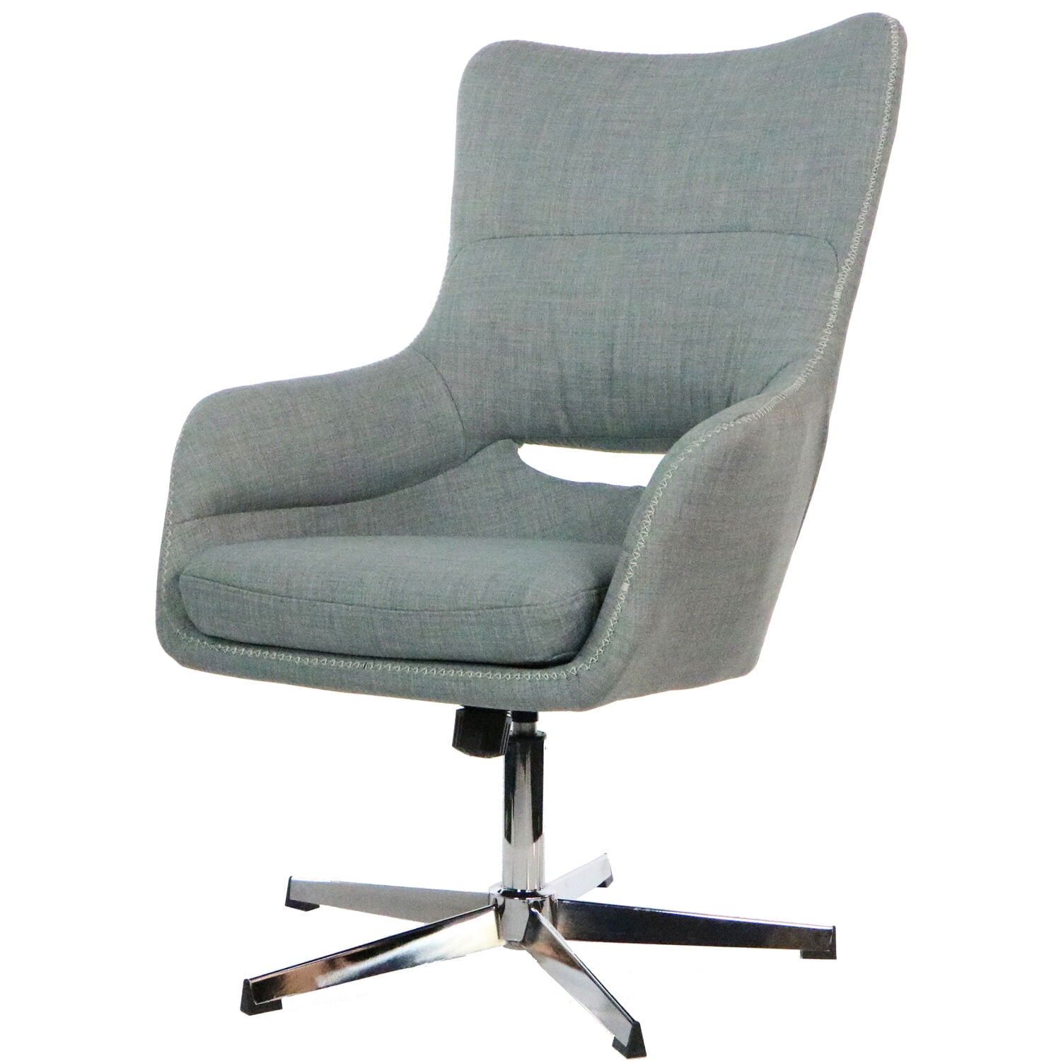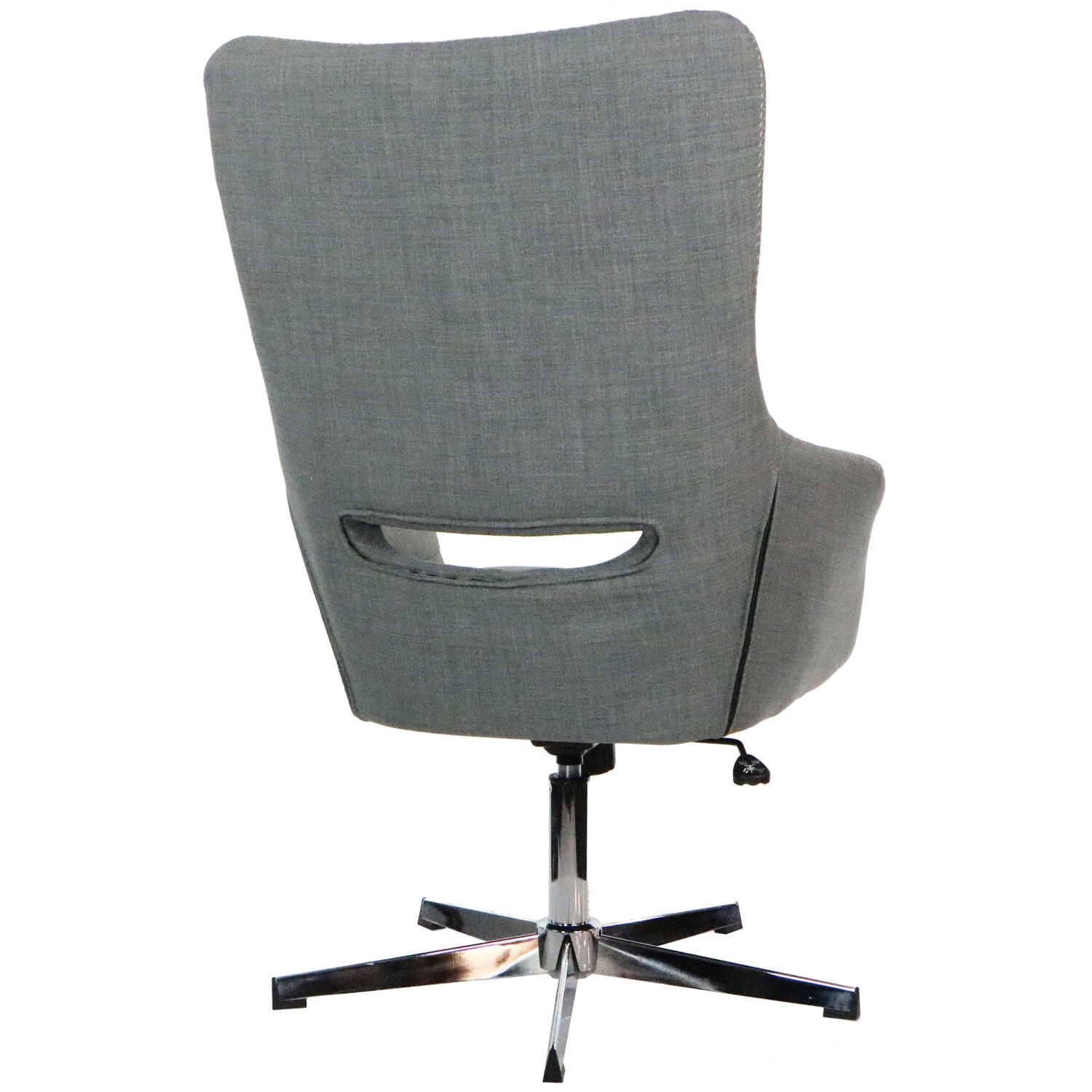 Mid-century modern chair from the Carlton Collection Wingback design with plush, all-over foam padding Perfect for use as a desk chair in the office or an accent chair everywhere else Soft, polyester fabric wraps around the curved chair frame Effortless height adjustments with a gas-lift cylinder lever Metallic chrome base stands securely in place Swivel mechanism offers a smooth, 360-degree spin without moving the base Color: Gray Quick and easy assembly in less than 10 minutes 2-year limited warranty