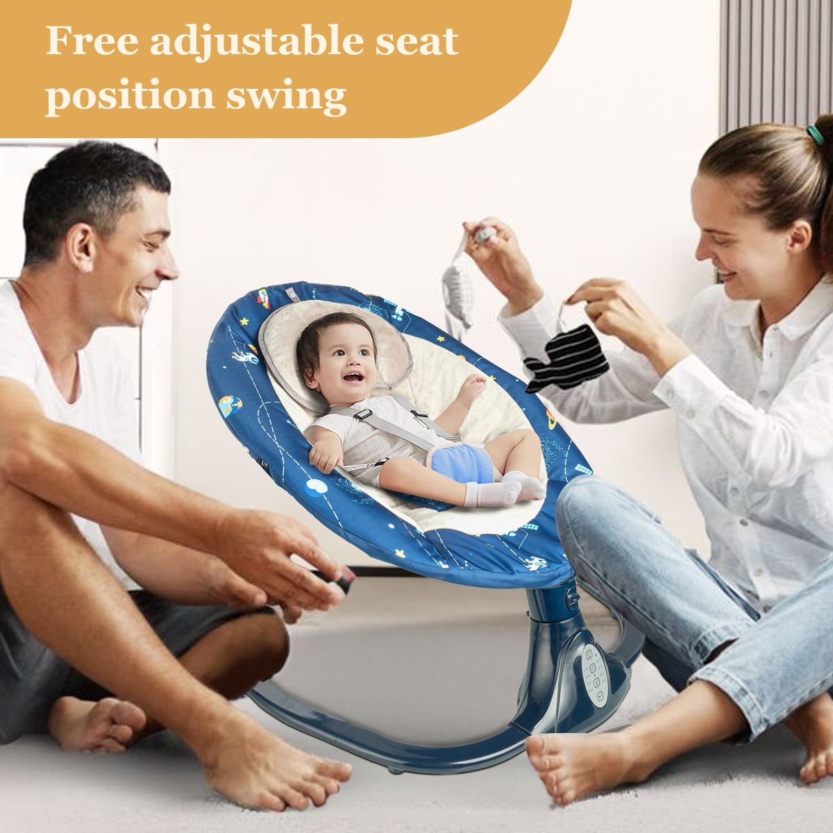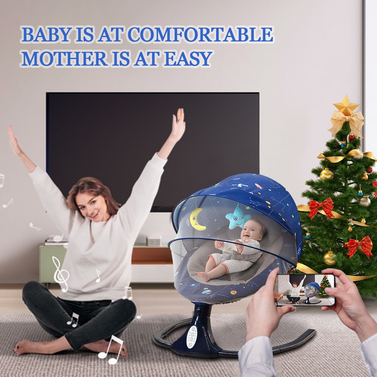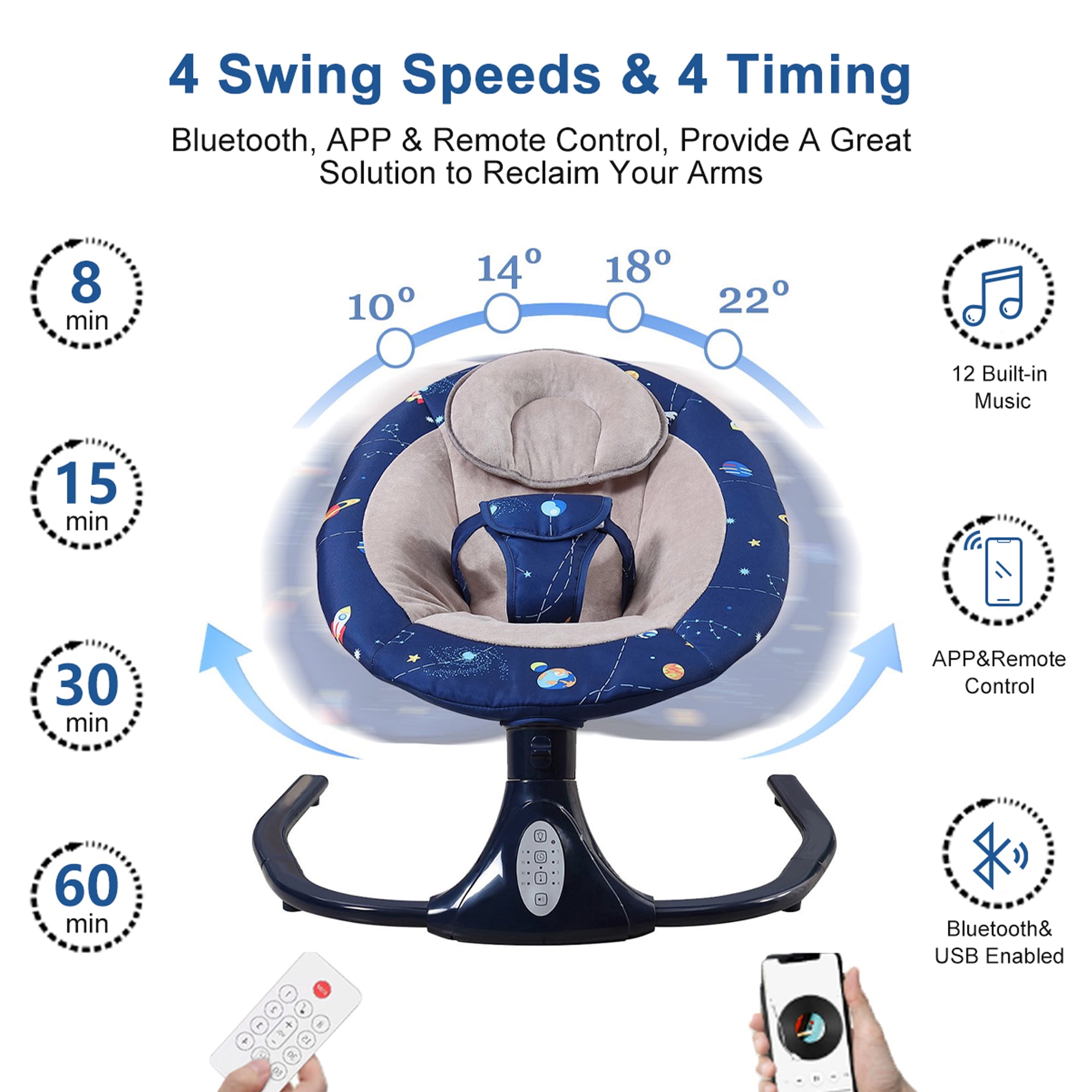HAOUUCYIN Baby Swing for Infants, Newborn Electric Swing Chair with 4 Gears & Timer & bluetooh Music, Blue
