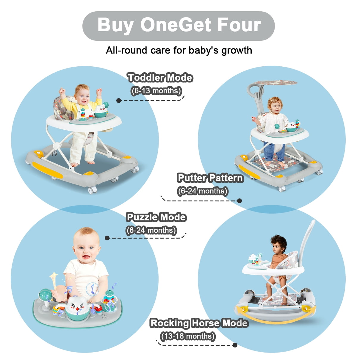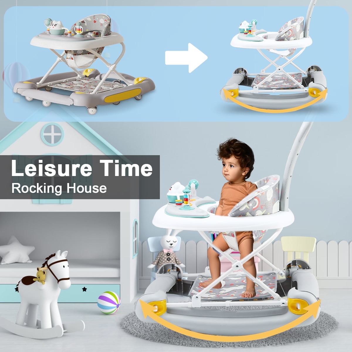 HAOUUCYIN Baby Walker, 6-in-1 Multi-functional Foldable Push Walker, 6-24 Months, Gray
