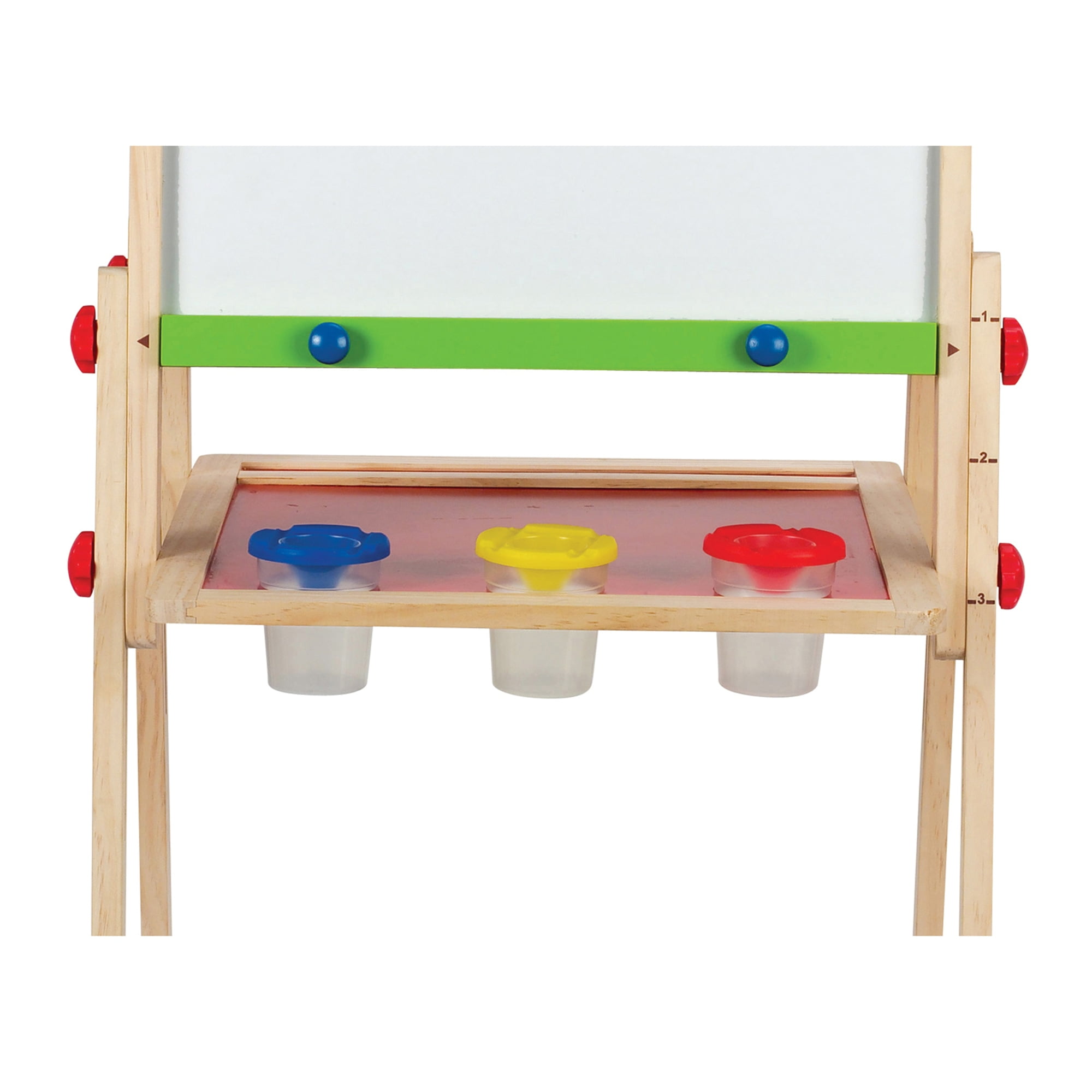 ALL-IN-1 ART TOY: Double sided easel with blackboard, magnetic whiteboard and paper roll on top. 2 fun easel boards means there’s more ways than ever for mini Monets to get together and express their creativity. IDEAL FOR CRAFTS: Perfect for painting, writing, or drawing REFILLABLE DRAWING PAPER: Refillable Paper roll attached at the top for quick and easy reach COMES WITH PAINT POTS: Includes 3 paint pots and holders HEIGHT ADJUTSABLE: The height is fully adjustable to three different levels, encouraging artists young and old. Adjustable height from 37.5 to 43.5 inches