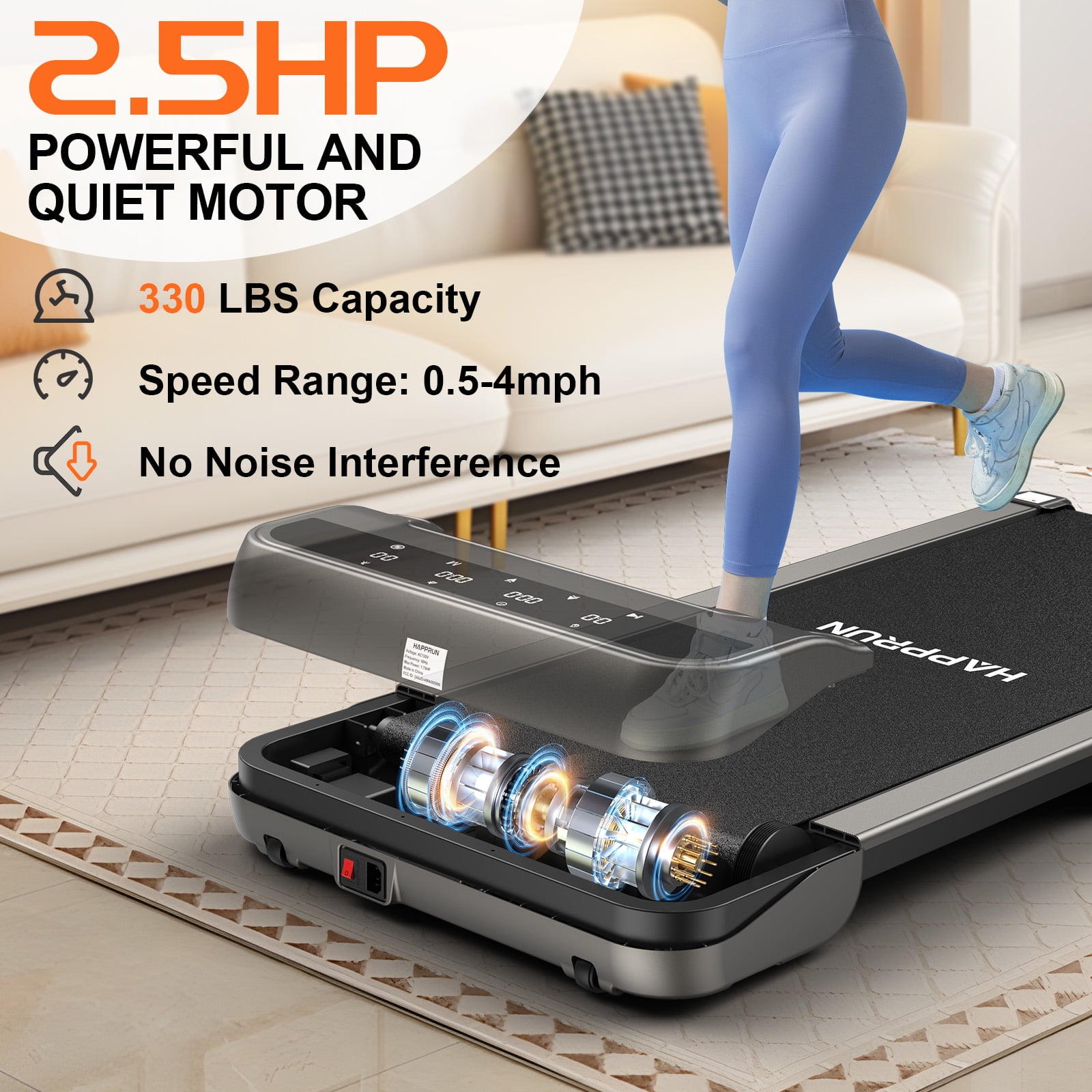 HAPPRUN Walking Pad, 2.5HP Under Desk Treadmill, Speed Range 0.5-4mph 330lbs Load Capacity Treadmill for Home Office with Remote Control