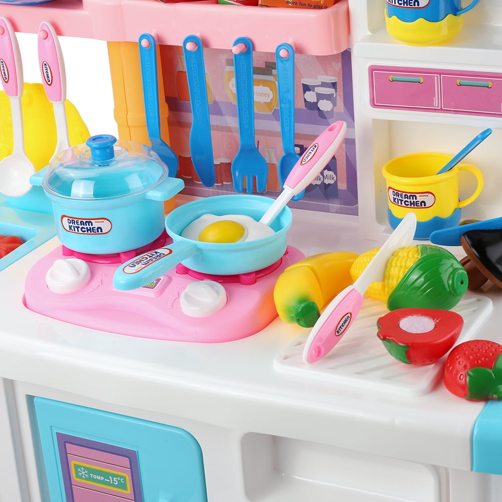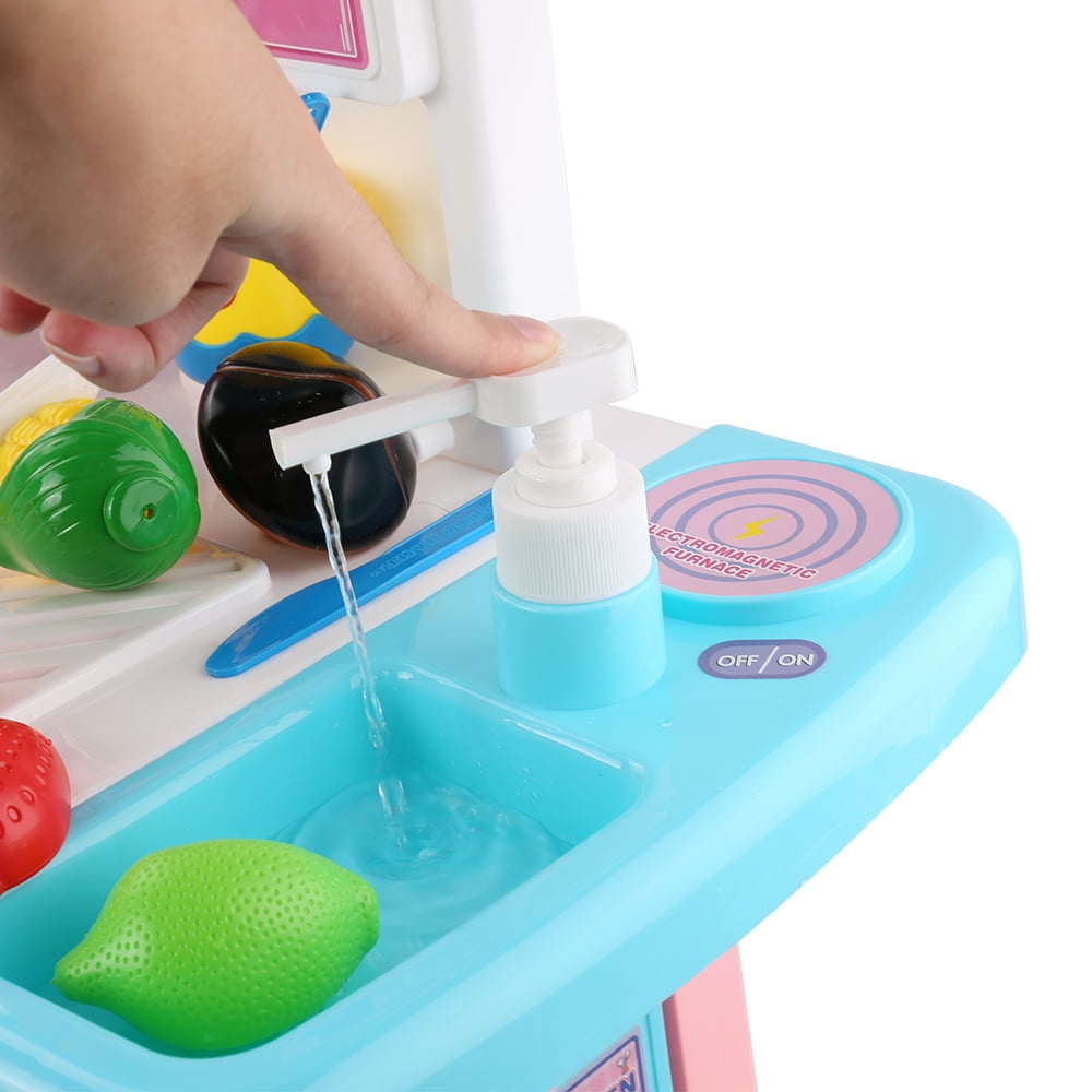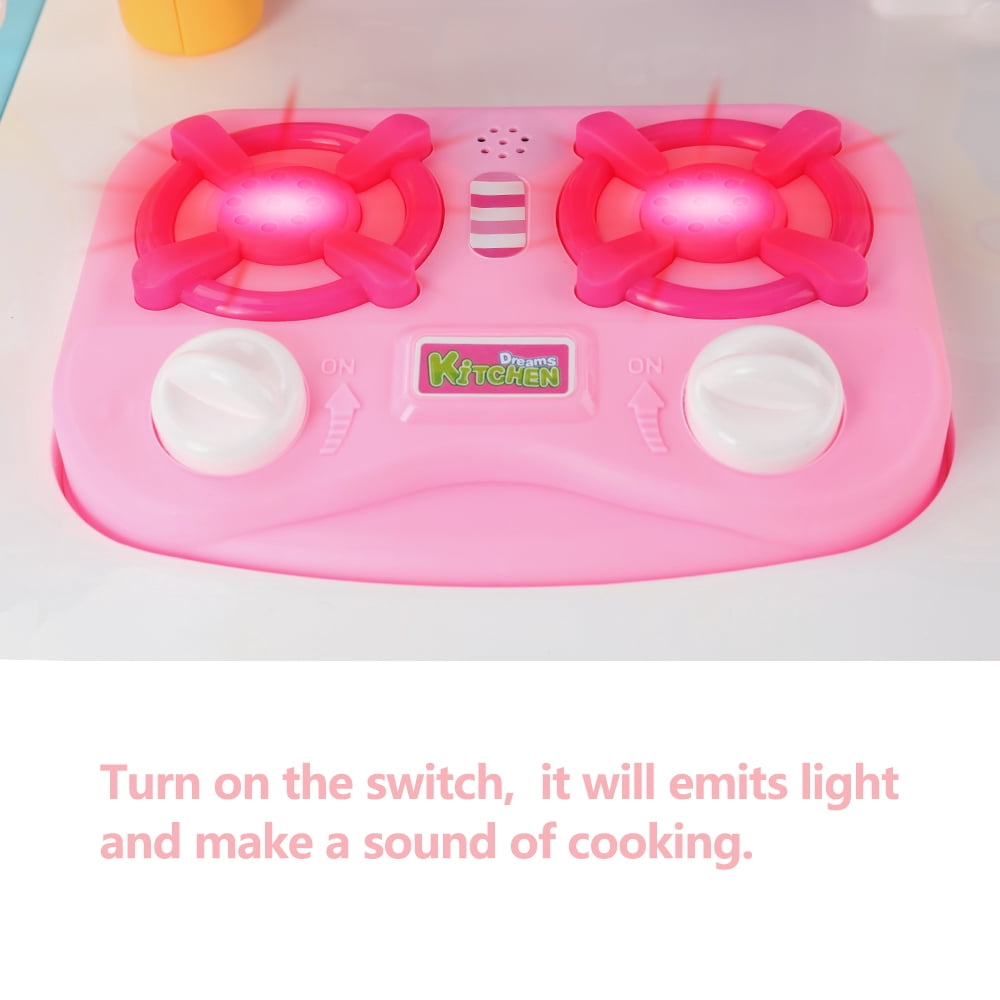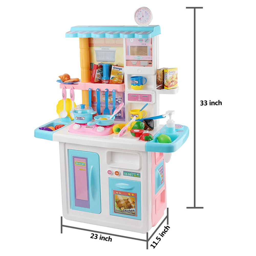 Compact, upscale kitchen designed to match today interior home decor and life style. Fun and realistic sounds simulate a real kitchen. Frying pan and pot interact with stove-top creating realistic sounds! Storage bin and pull-out drawer for easy clean up and storage. Keep the dishes organized and safe on the built-in shelf. Complete kitchen play set with stove, oven, utensils, and food pieces. All accessories included. Authentic kitchen set complete with sounds and lights Educational play set provides hours of fun and learning for boys and girls! Kitchen dimension: 33 x 23 x 11.5 inch 2 AA battery required (not included) Made of durable 100% safe materials that ensure children’s safety and durability. ASTM & CPSC tested and certified.
