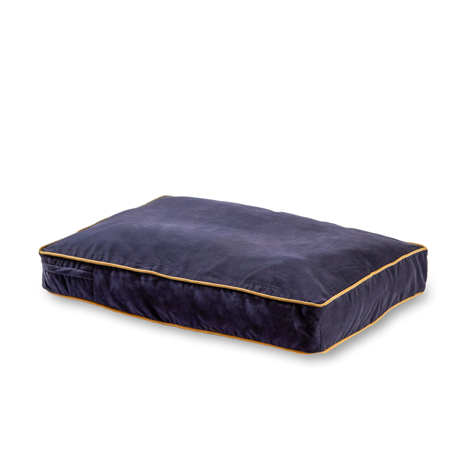 Medium bed measures 42 in. L x 30 in. W Recommended for dogs up to 75 lbs Millie is shown on our medium bed. She is a 50 lb. German Shorthaired Pointer who loves to run off leash for miles and miles with her friends Durable, double-sewn boxed edges with decorative cord trim Reversible design allows for longer use Removable, washable cover makes cleaning a breeze Heavy-duty microfiber fabric is water and stain-resistant Generously filled with a soft polyfiber made from recycled plastic Pillow dimensions are +/- 2 inches. Please note: product will arrive in a slightly compressed state; please allow a few days for product to expand to final size listed in description.