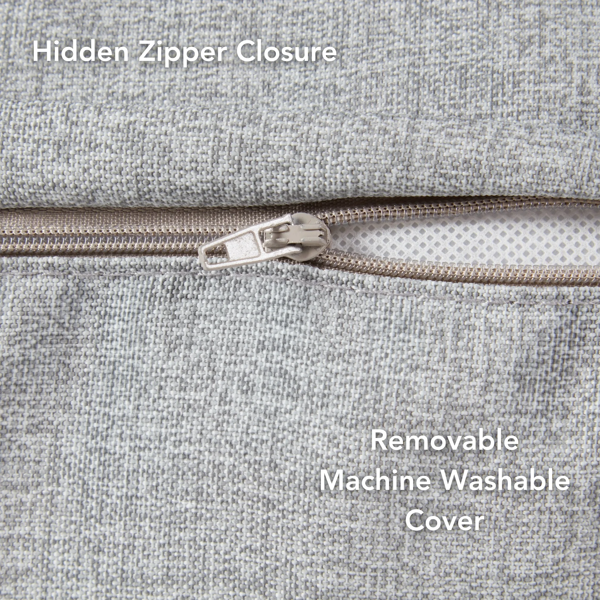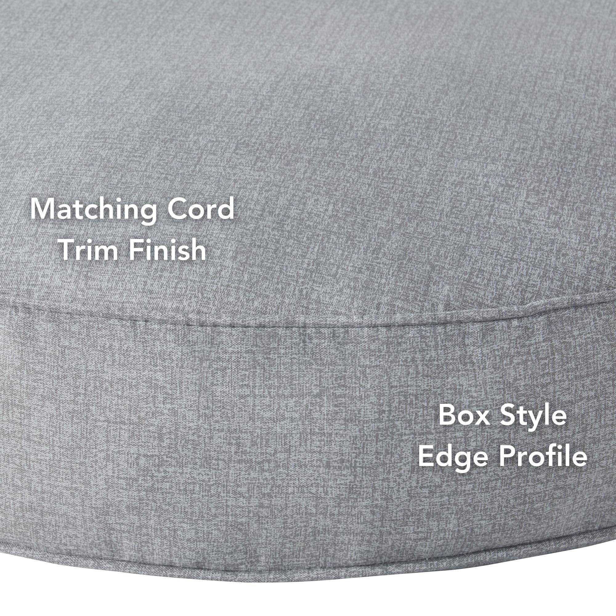 Large Bed: 42 inch x 42 inch x 6 inch Recommended for dogs over 75 lbs Millie is shown on our large bed, she is a 55 lb German Shorthaired Pointer Solid heathered gray color Water and UV-resistant polyester fabric Suitable for indoor and light outdoor use Reversible design allows for longer use Removable, washable cover makes cleaning a breeze Durable, double-sewn boxed edges with decorative cord trim Plush fill provides maximum comfort for your pet Bed dimensions can be +/- 2 inches Please note: product will arrive in a compressed state; please allow a few days for product to expand to final size listed in description