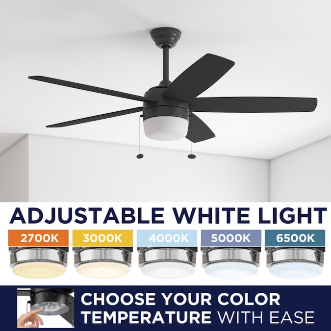 Harbor Breeze Becca 44-in Matte Black with Matte Black/Cimmeron Blades Color-changing Indoor Ceiling Fan with Light (5-Blade)