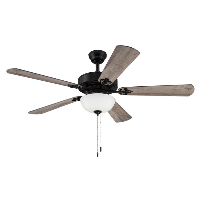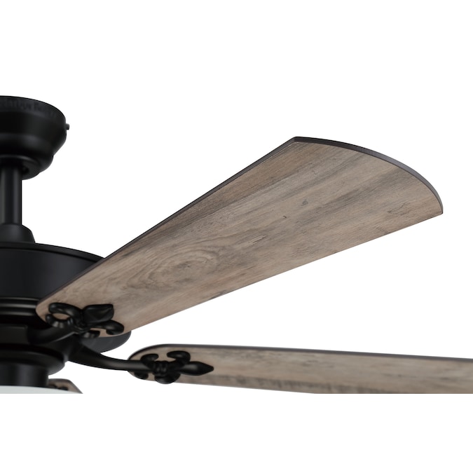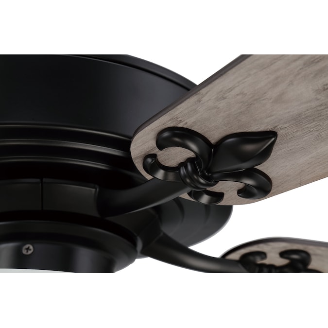 The Harbor Breeze Payton 52-in ceiling fan is designed with Fleur-De-lis detailing on the blade arms. This fan adds a fun and stylish focal point to your favorite room.
