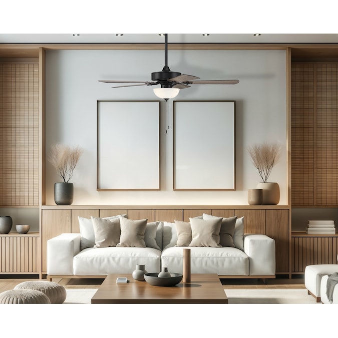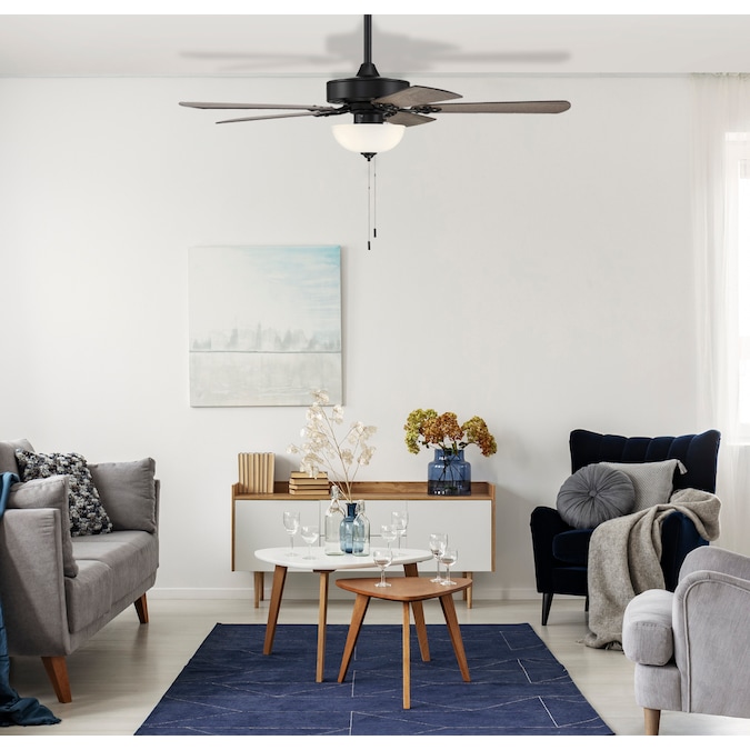 - Convenient pull chains included to control the fan speed and lighting
