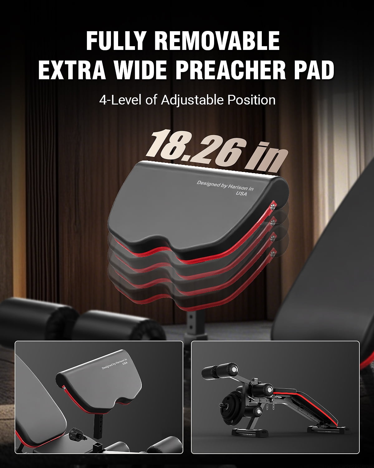 HARISON Heavy Duty Weight Bench for Home- Made of commercial thickness steel and triangular mechanical support design with safety lock, past thousands of weight test to ensure safety for workout every time 65 mm thickened backrest and 5 layers leather foam panel provide your a much more comfortable workout bench experience than others Upgraded Weight Capacity: 800 lbs Weight bench with Leg Extension and Leg Curl – HARISON HR-609 Exercise bench provided a removable preacher pad and Leg extension machine, you can decide whether to remove it according to your workout needs Such a flexible adjustment allows you to exercise the pectoral muscles, shoulders, buttocks, abdomen, back muscle group training freely in all directions Fully Adjustable and Multi-Purpose Design – HARISON leg extension bench Press provides 6 backrest pad positions, 5 positions for seat position You can arrange the bench into an incline, decline, or flat position Multi-function leg developer provide you more fun Adjustable balance knob with different angles meet all your body exercise demands 30 Day Risk-Free Trial & 1-Year Warranty We believe in our products which is why all of Harison workout bench come with a 30 day risk-free trial and a 1-year warranty to give you peace of mind! We are committed to offering you high performance premium features on our gear at an unbeatable value Our experienced team works to prove that every day Easy Installation All HARISON weight bench adjustable will come with the whole set of installation tools, and installation guidence video provide and US based customer service 24 hours for you