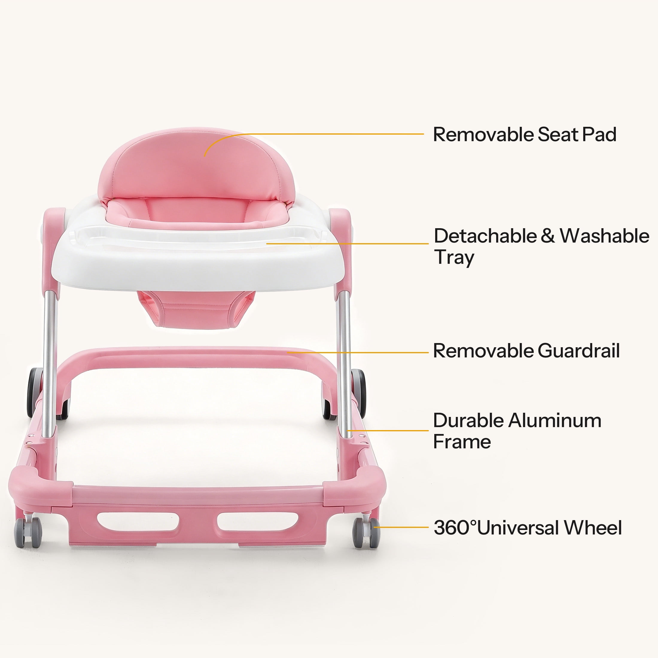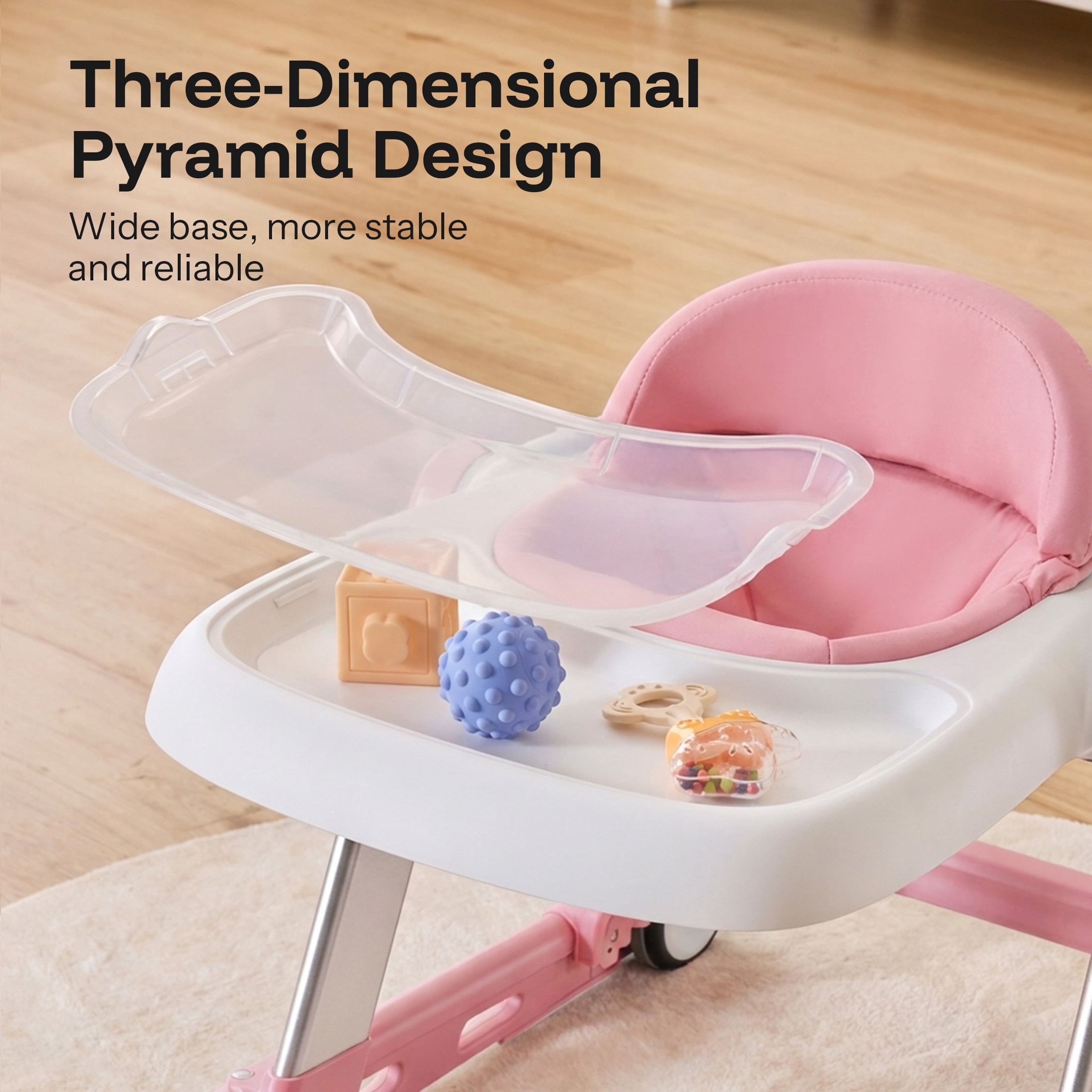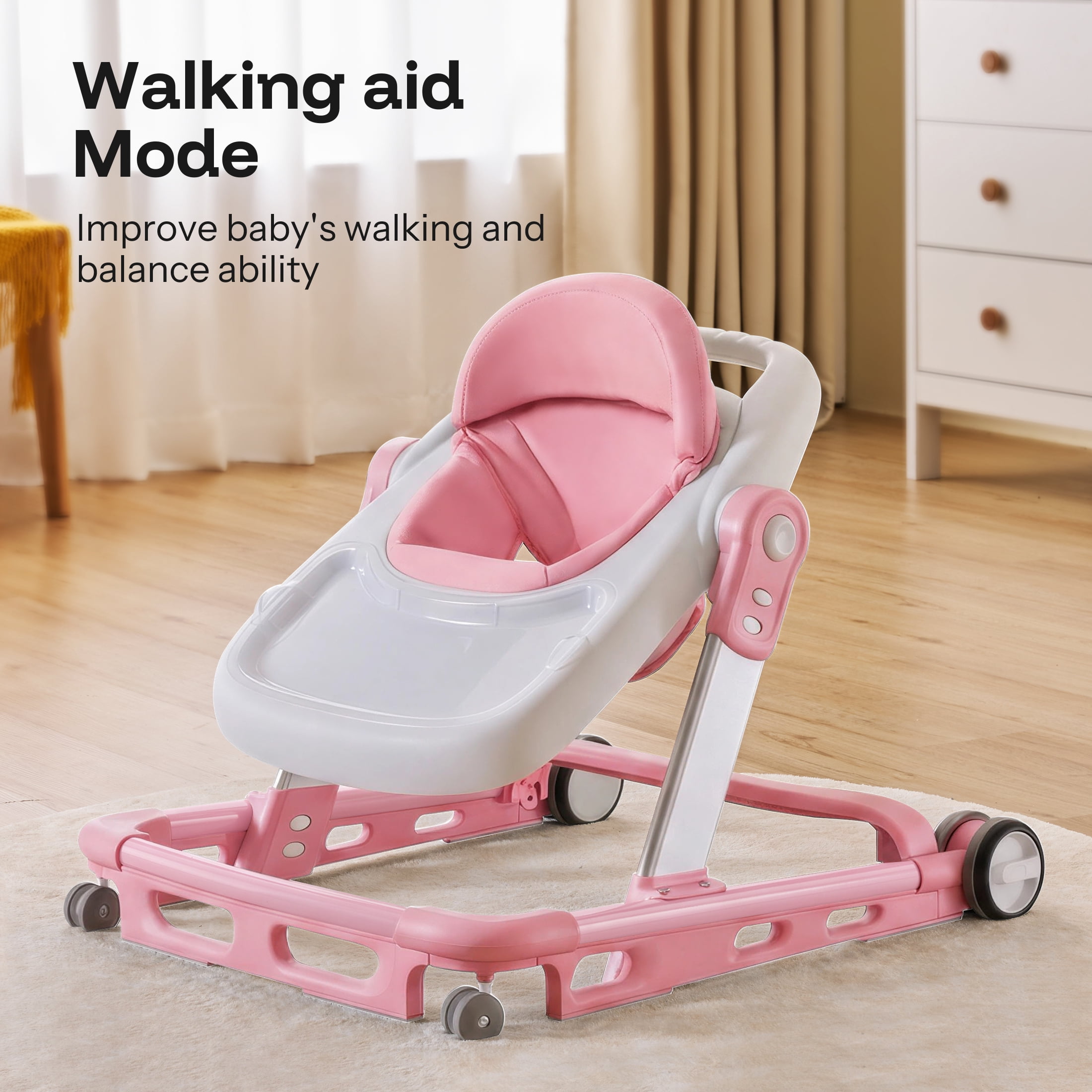 HARPPA Baby Walker for Babies 6-18 Months, Anti-Rollover, Seat and Height Adjustable, Pink