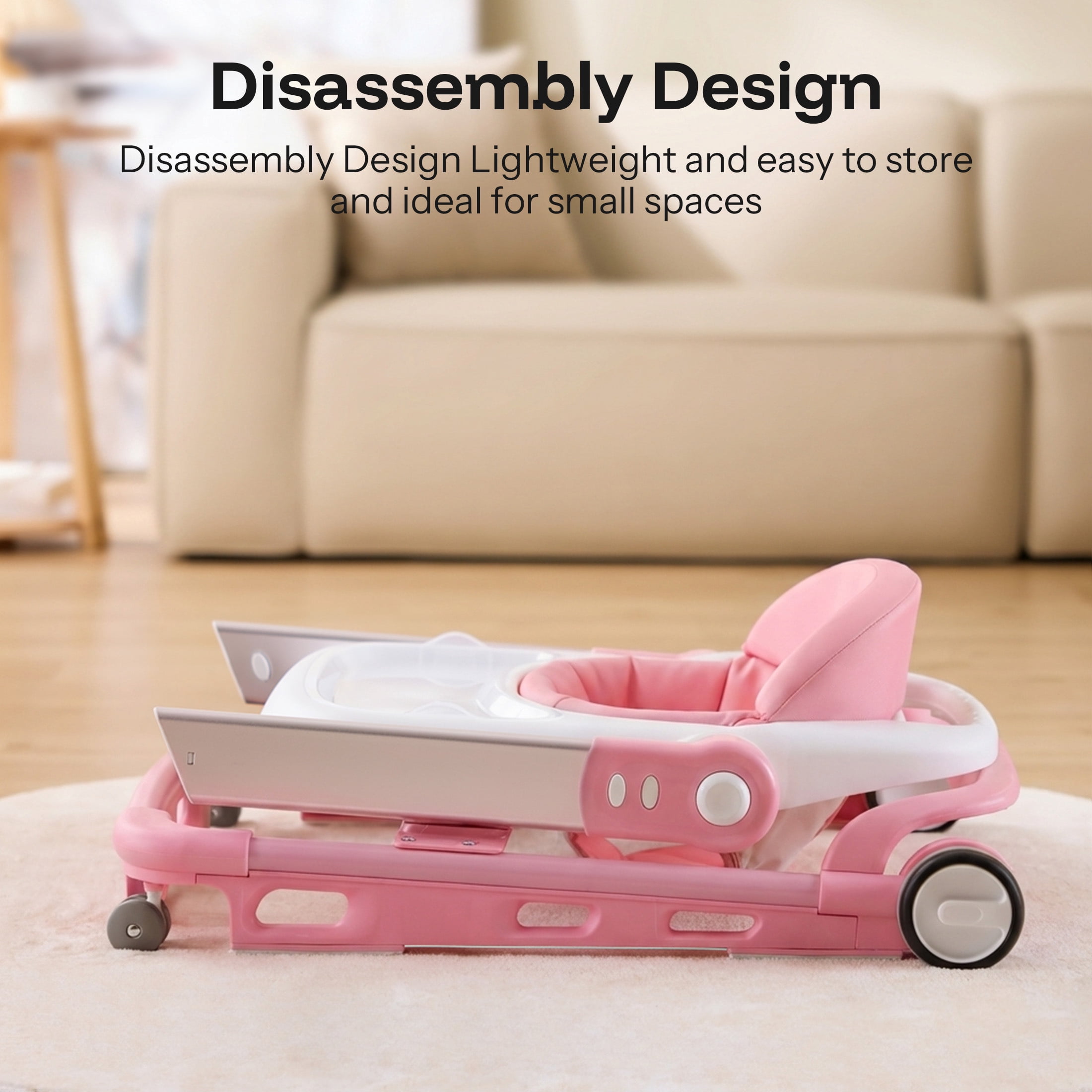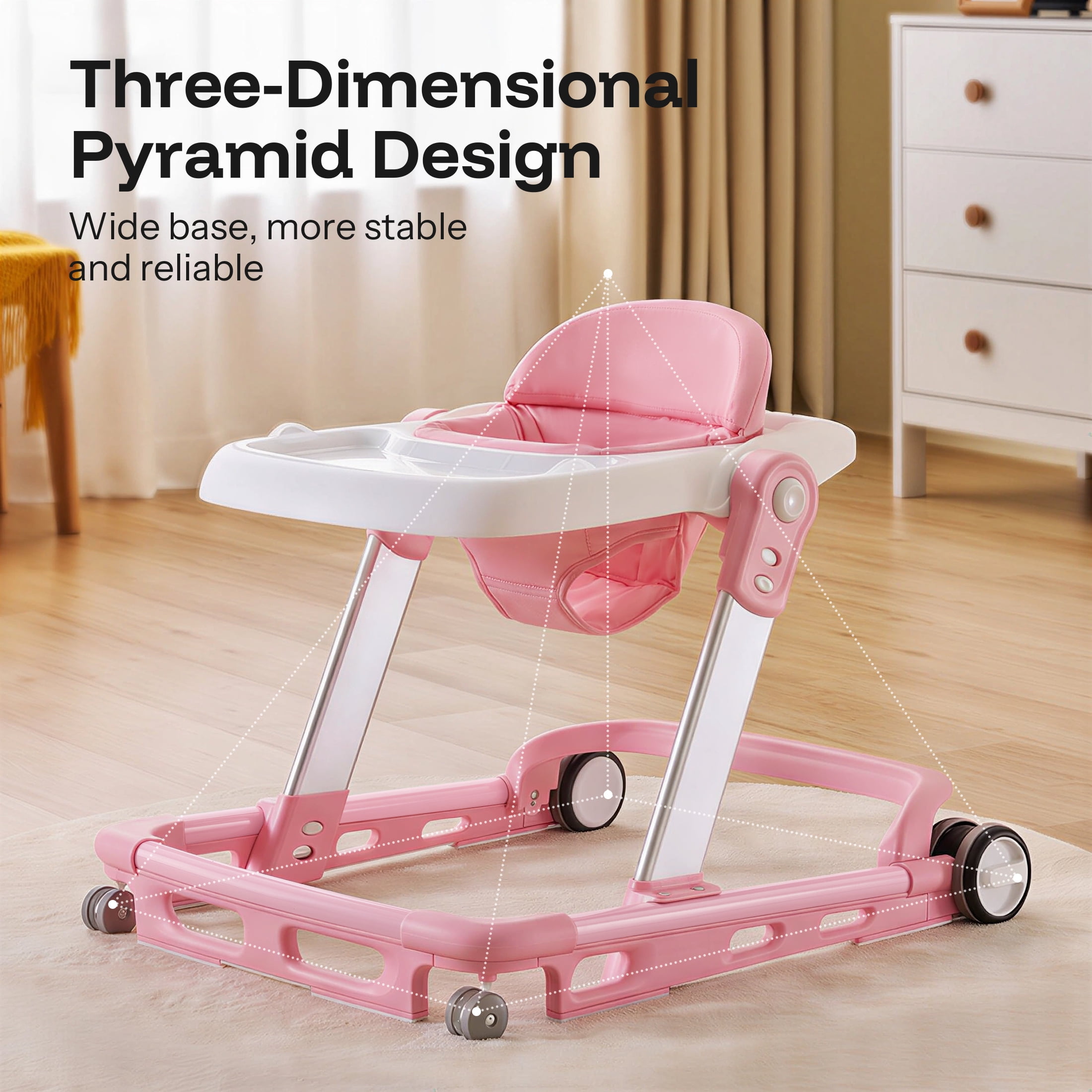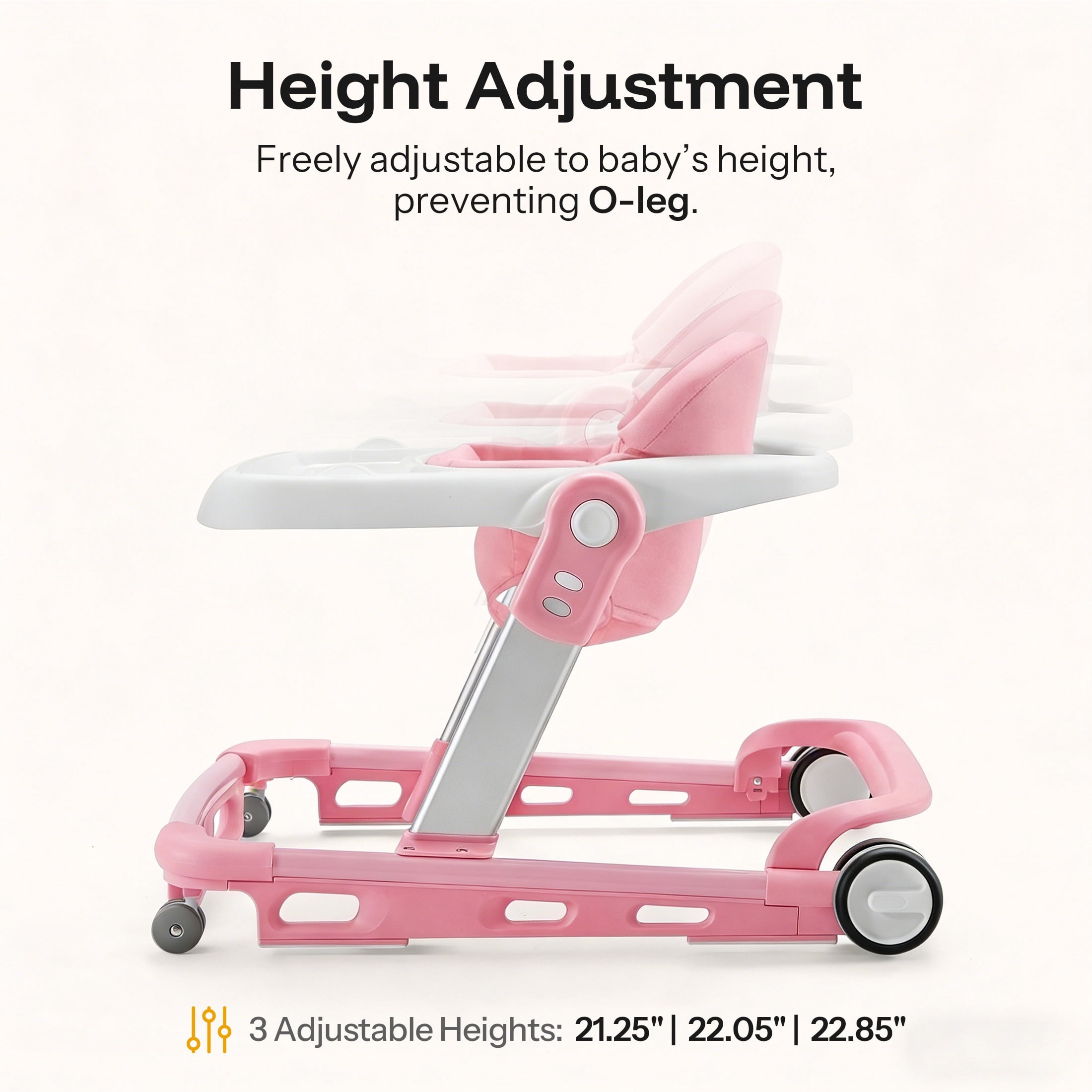 HARPPA Baby Walker for Babies 6-18 Months, Anti-Rollover, Seat and Height Adjustable, Pink