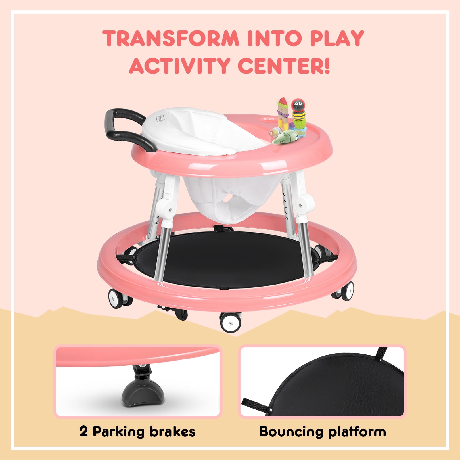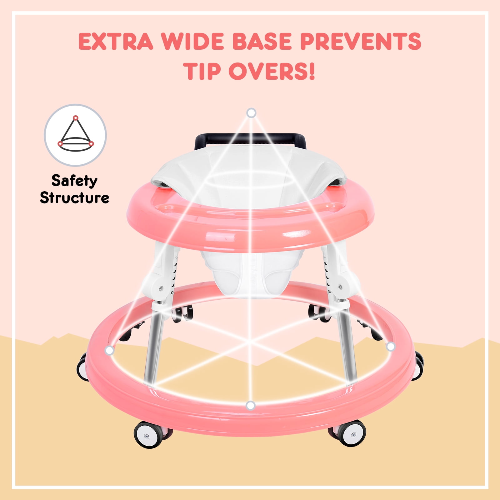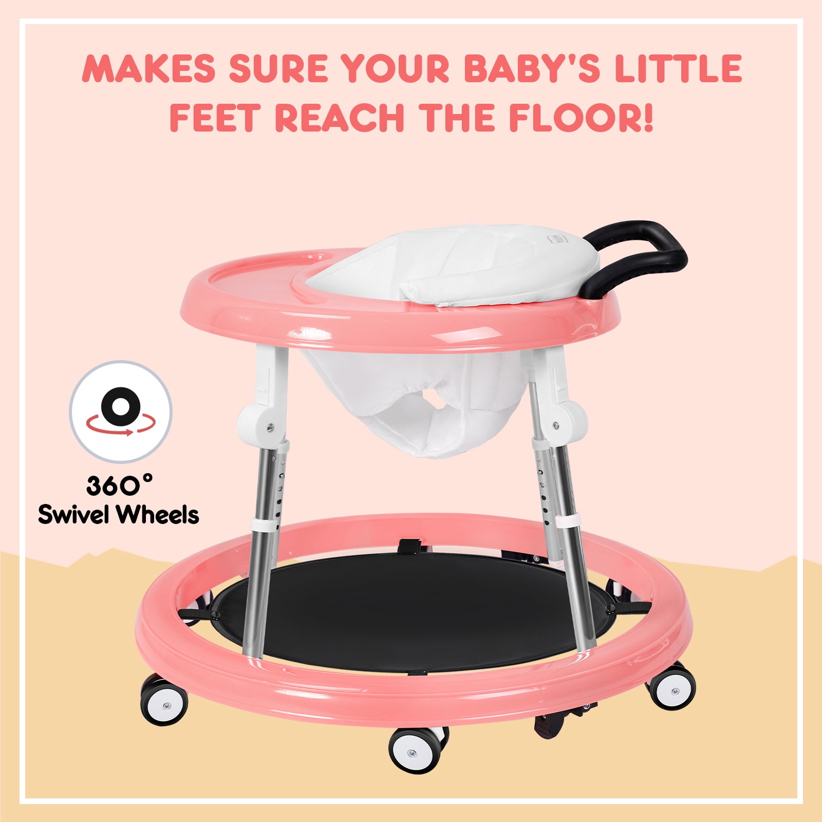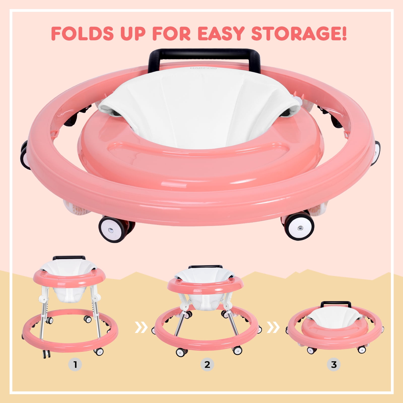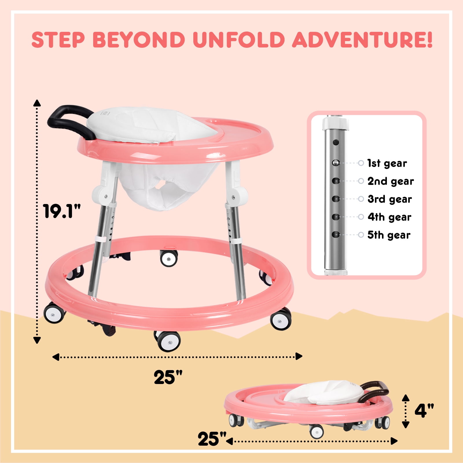 HARPPA Foldable Baby Walker for Babies 6-24 Months, Anti-Rollover, Seat and Height Adjustable, Pink