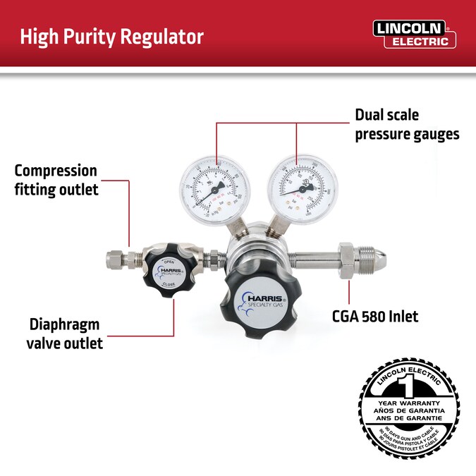 - Recommended for non-corrosive gases or purity levels of grade 5.0 (99.999) and higher