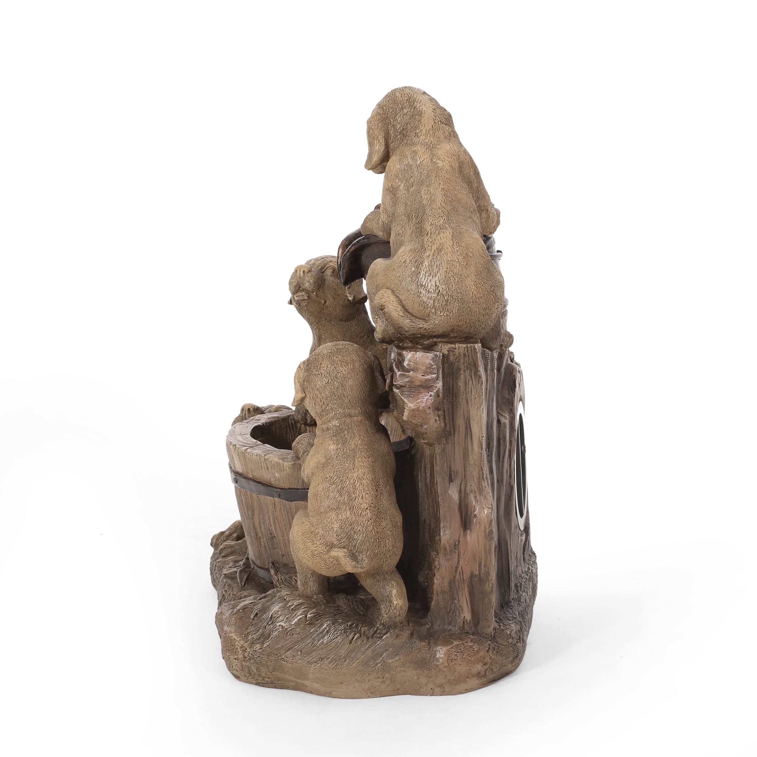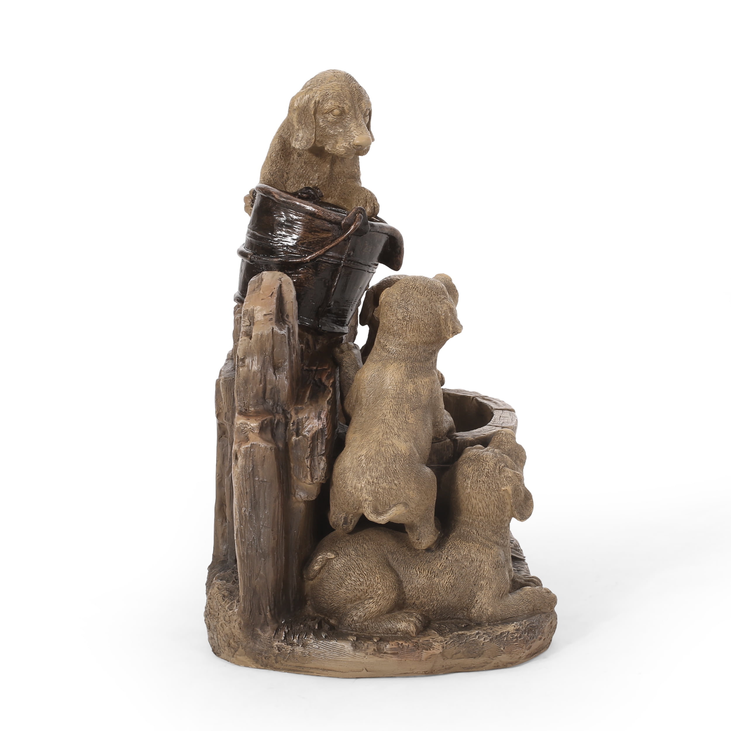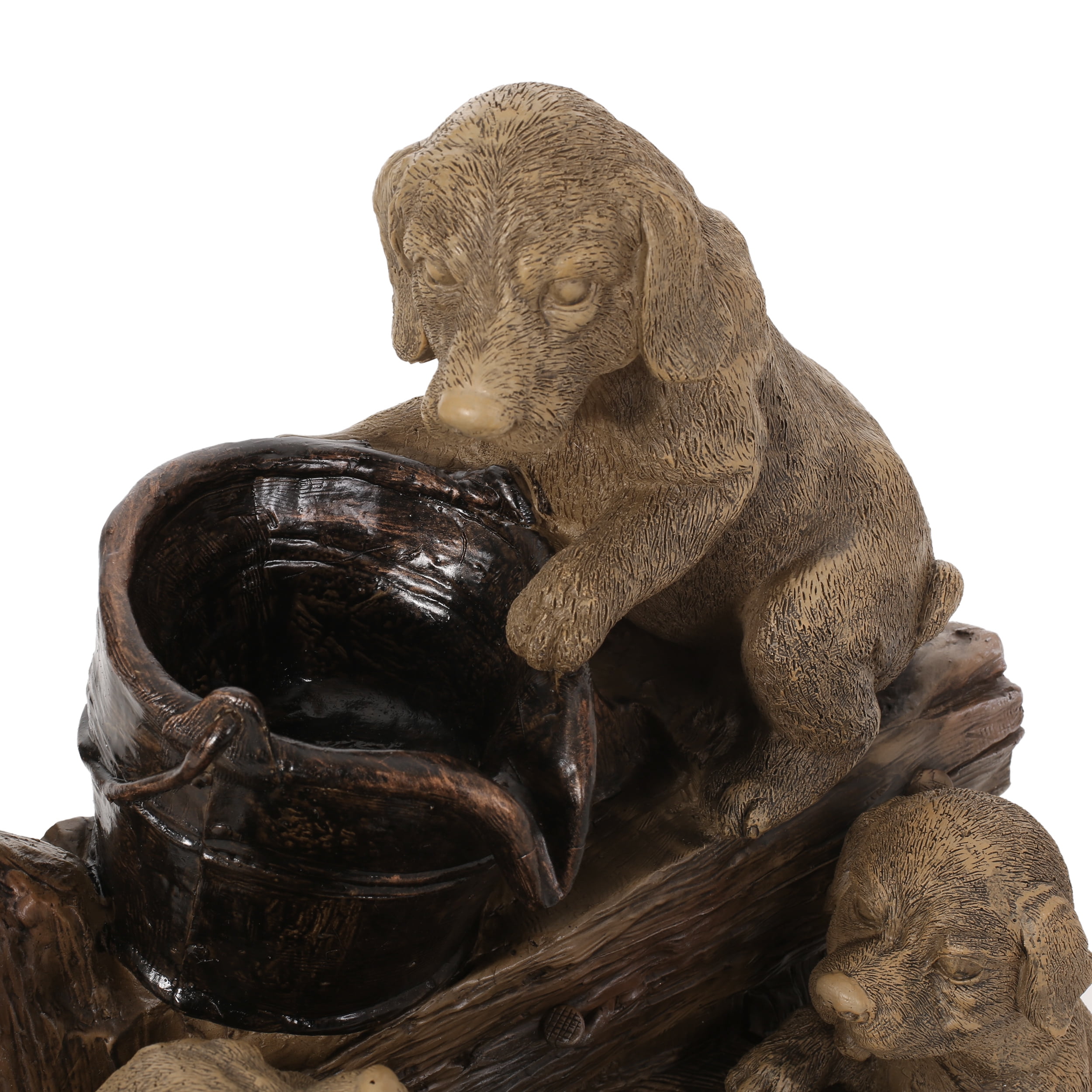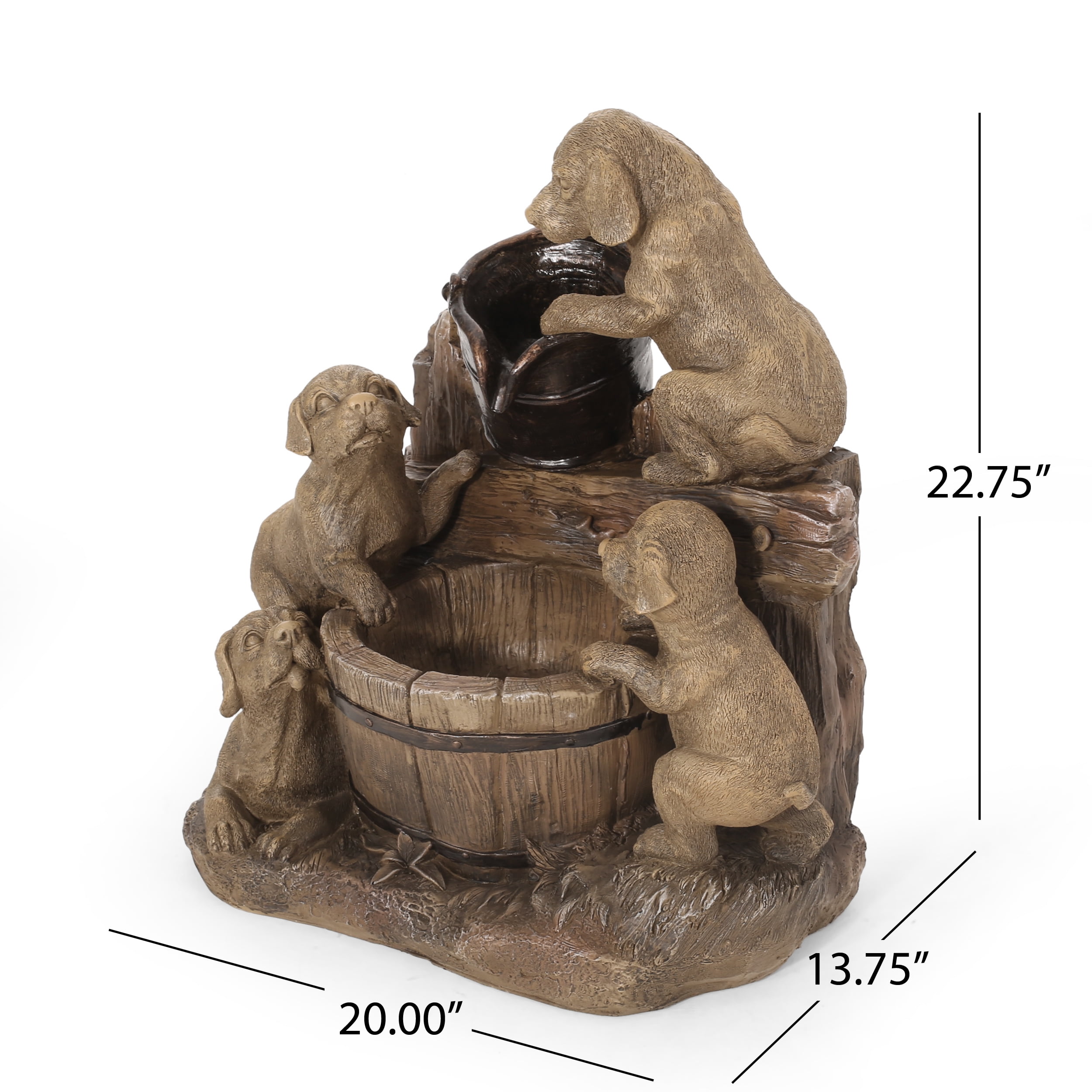Illuminate your outdoor space with an accessory that brings a delightful look to any home. Our garden fountain features a calm waterfall flow that continuously circulates using an included pump, bringing a playful aura to any backyard or patio. Crafted with an incredibly durable polyresin material, this decorative accessory offers a weather-resistant structure that allows outstanding attention to detail. Finished with four adorable puppies and enchanting underwater lights, our water fountain is sure to add a touch of whimsy to your home. A TOUCH OF PERSONALITY: Easily customize your backyard, garden, or patio with this charming outdoor water fountain. With a playful design and stunning attention to detail, this accessory will be sure to enhance any outdoor space. WATERFALL FLOW: With a gentle and relaxing water flow, this garden fountain uses an interior pump to bring a peaceful atmosphere to your outdoor space. This fountain features four puppies and two tiers that create a beautiful waterfall effect. FAUX STONE: Crafted with a stone-like material, this fountain provides a weather-resistant foundation that has clean-cut edges. This can be easily poured into flexible molds that brings outstanding details to each piece. LED LIGHTS: The base of this fountain is illuminated with underwater LED lights for a dynamic effect on your outdoor decor. These lights offer an eco-friendly, energy-efficient option that saves you electricity and money. These lights have an incredibly long life span and do not burn out like regular bulbs. They will simply begin to dim once it begins to lose its energy. DIMENSIONS: Choose an accessory that is the perfect size for you and your furniture. This fountain is 20.00″ W x 13.75″ D x 22.75″ H. You will love how much your space can transform with the simple addition of this charming fountain.