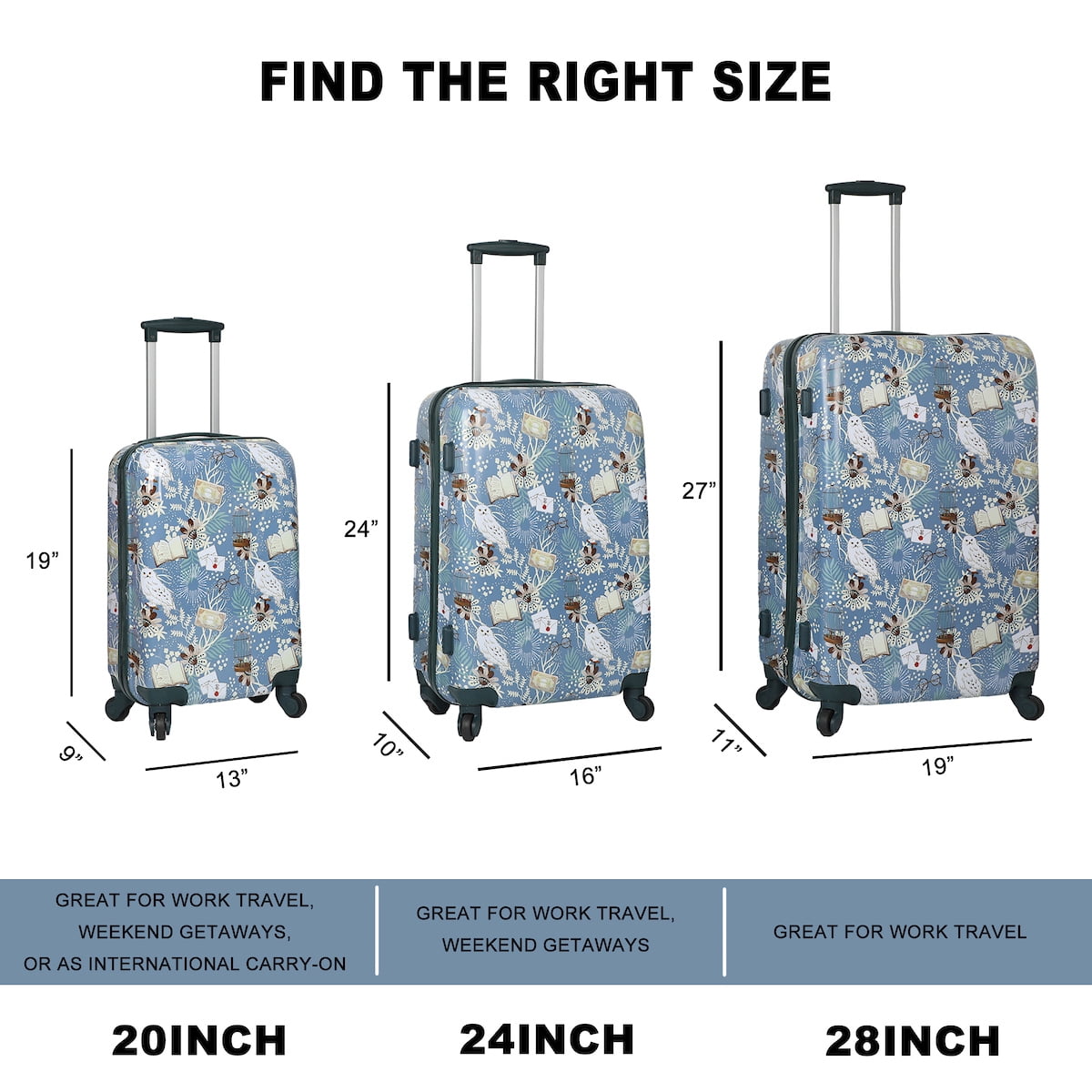 Travel to the magical land of Hogwarts or go on a great summer vacation with this Harry Potter 4 Wheel Luggage Assortment Kit. The officially licensed design is perfect for all Harry potter fans! The assorted sizes makes it perfect for every member of the family! 20″Dimensions Overall: 22″h x 13.5″w x 8.5″d CASE: 20″h x 13.5″w x 8″ d 24″Dimensions Overall: 25″h x 17″w x 10″d CASE: 24″h x 16.5″w x 9.5″ d 28″ Dimensions Overall: 30″h x 20″w x 11.5″d CASE: 28″h x 19″w x 11″ d