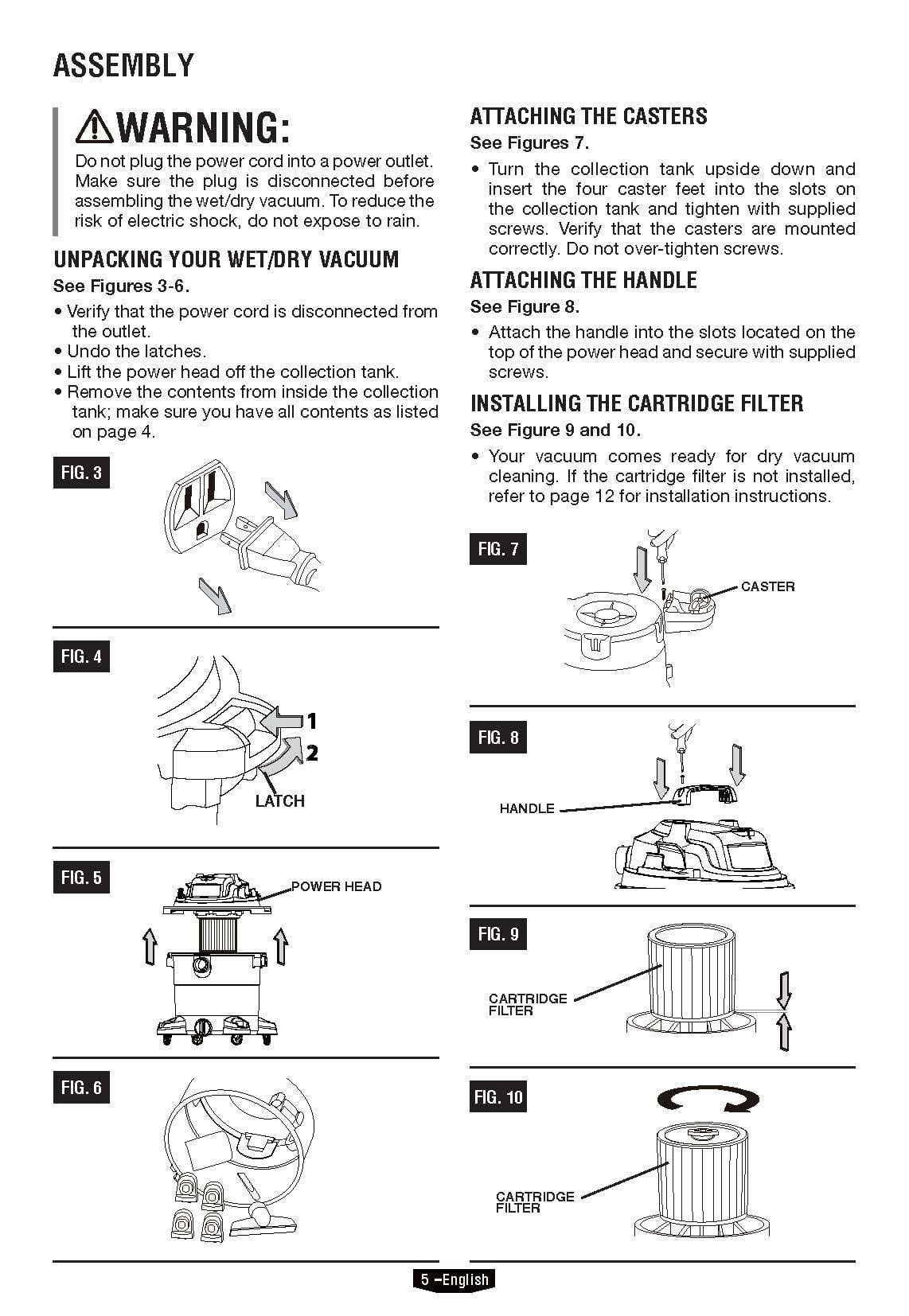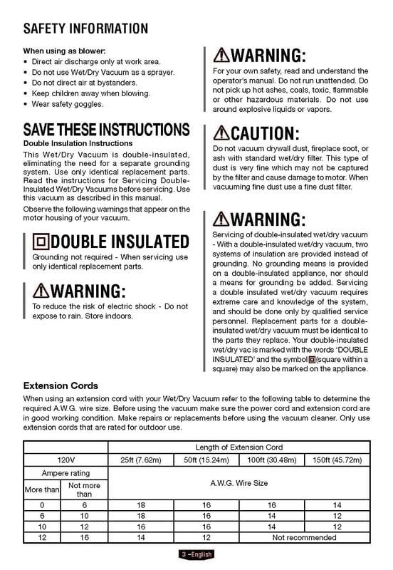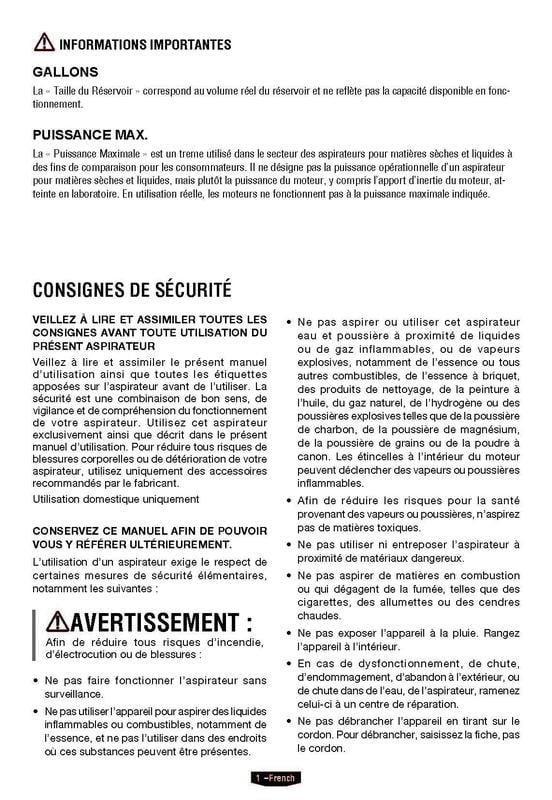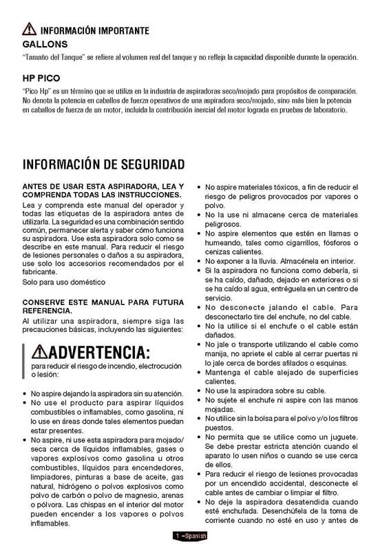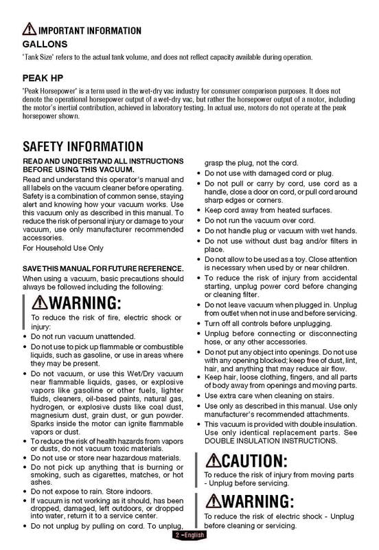 HART 10 Gallon Rugged Polypropylene Tank Powerful 6 Peak HP High Performance Motor Complete Vac Organization with On-Board Hose, Cord and Accessory Storage Locking Accessories 10-Foot Power Cord with Cord Storage Extra Large Drain Port easily Converts to Blower 17-Foot Cleaning Reach with Hose and Power Cord Large On/Off Dust-Sealed Switch 1-7/8″ Hose and Attachments Includes: 7′ x 1-7/8″ Premium Hose, (2) Extension Wands, Utility Nozzle, Crevice Tool, Floor Brush/Squeegee Nozzle, Cartridge Filter, Foam Wet Filter, Collection Bag,car cleaning kit,adapter 1-1/4″ to 1-7/8″ Manufacturer Model Number: VOC1012PF 3702 3 Year Limited Warranty Tank Size refers to the actual tank volume, and does not reflect capacity available during operation Peak Horsepower is a term used in the wet-dry vac industry for consumer comparison purposes. It does not denote the operational horsepower output of a wet-dry vac, but rather the horsepower output of a motor, including the motor’s inertial contribution, achieved in laboratory testing. In actual use, motors do not operate at the peak horsepower shown
