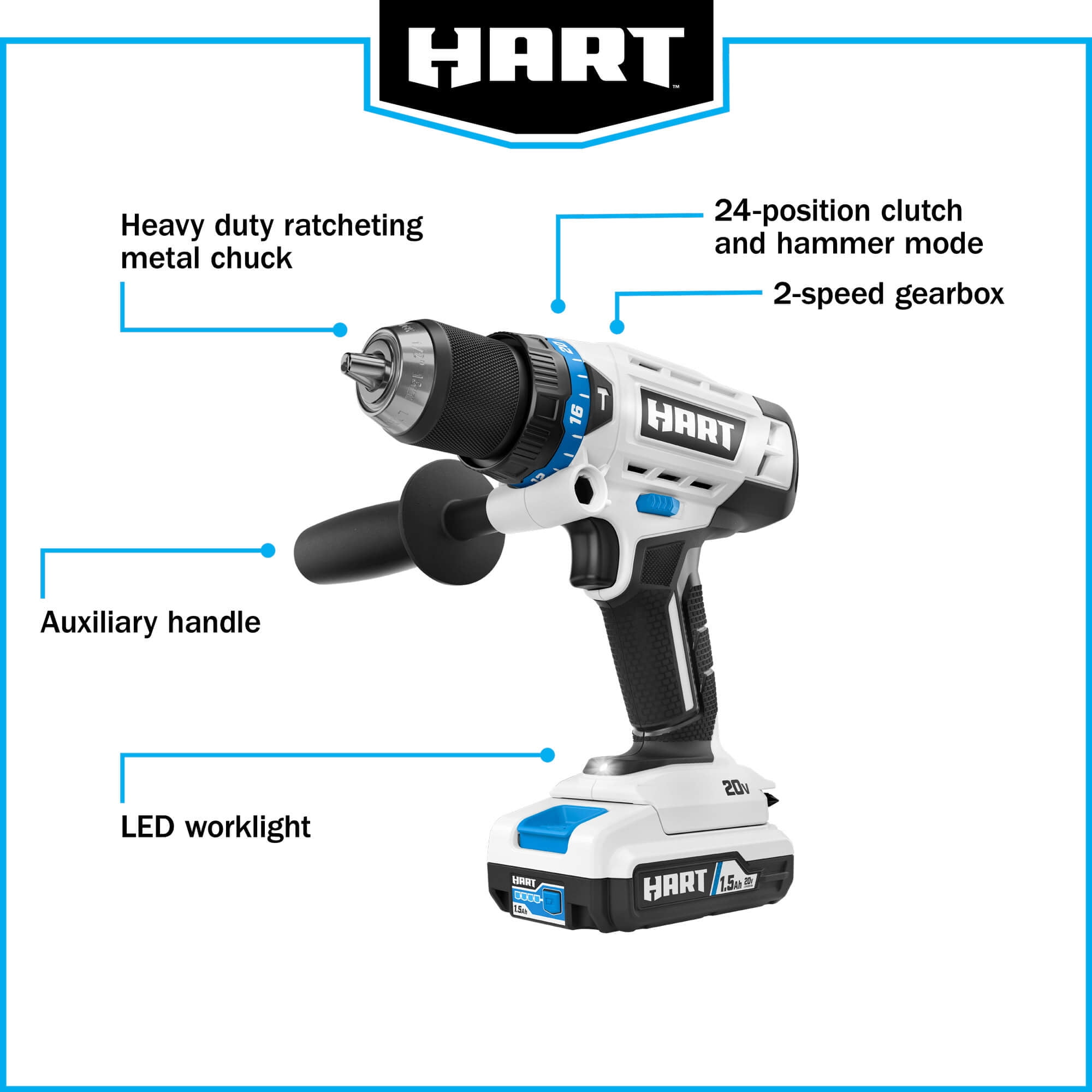HART 20-Volt 1/2-inch Cordless Hammer Drill Kit, Gen2