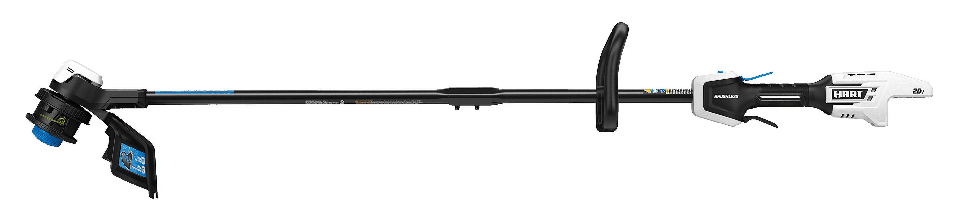 Variable speed trigger for increased user control Easy loading bump-feed head High and low-speed settings for a variety of trimming applications Adjustable 11″-13” cutting swath for a variety of cuts Ideal for medium-large size yards Brushless motor for more power, longer runtime & longer motor life Works with all HART 20V batteries Includes: (1) 20V Brushless 13” String Trimmer, (1) Grass Deflector, (1) Front Handle, (1) .080” Line, and (1) Operator’s Manuals
