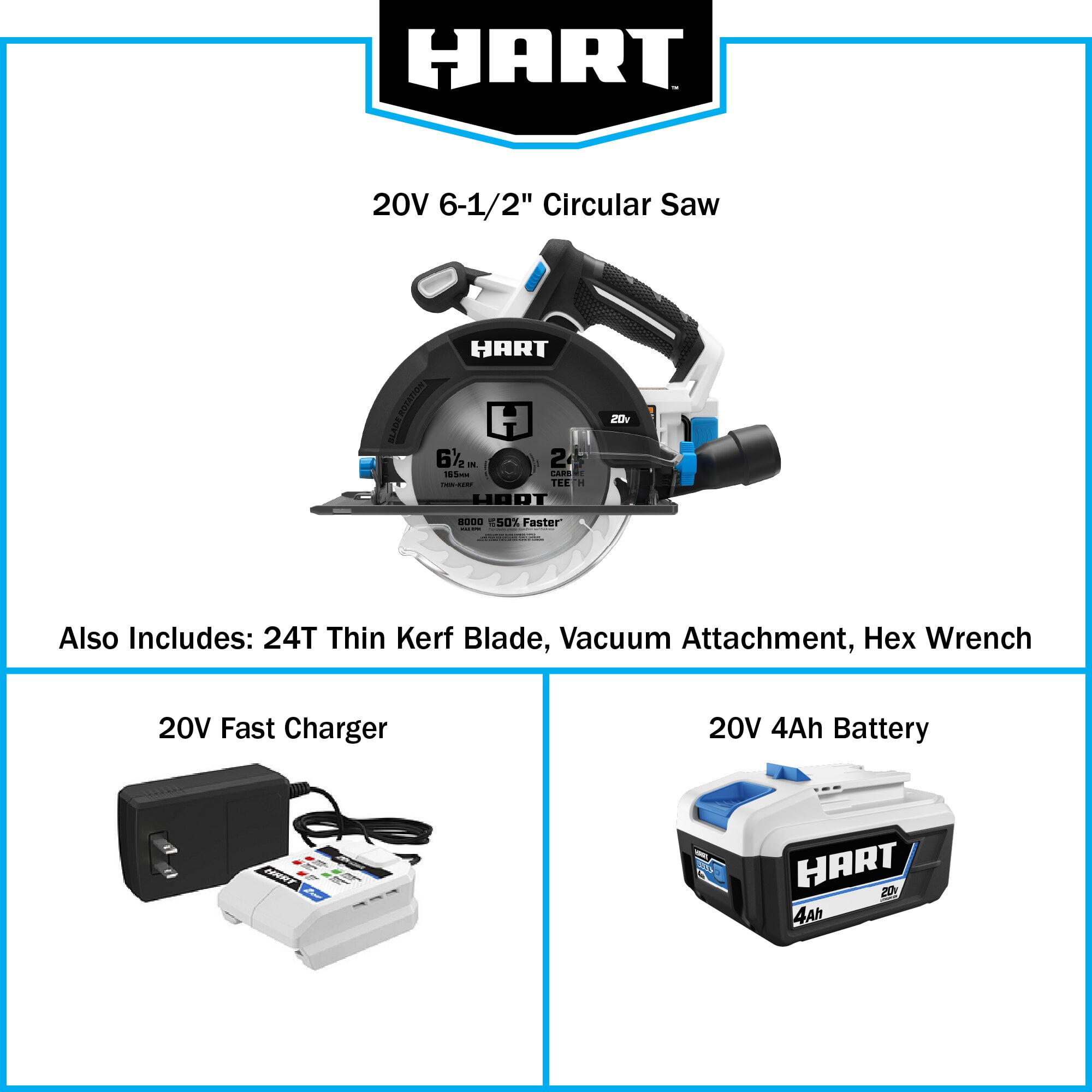 HART 20-Volt 6 1/2-inch Cordless Circular Saw Kit (1) 20-Volt 4.0Ah Lithium-Ion Battery