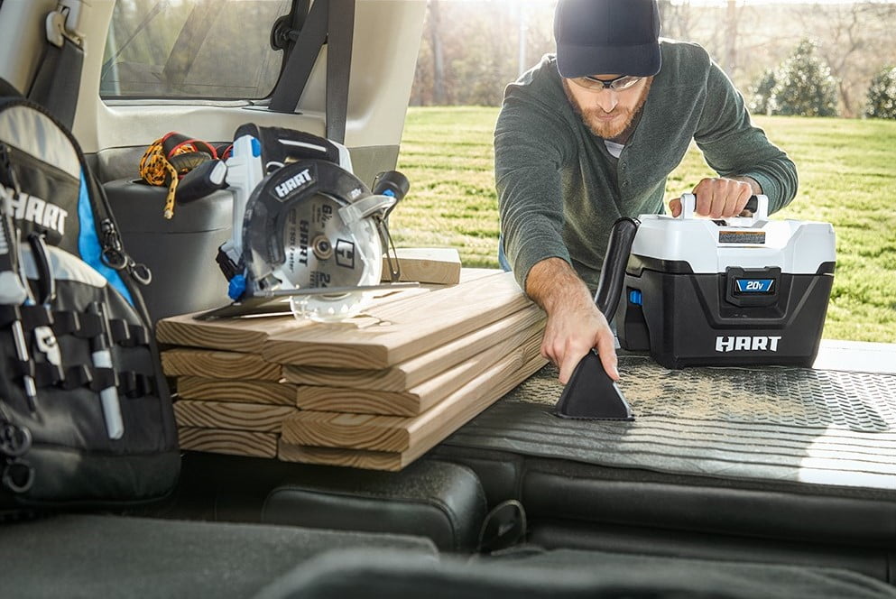 HART’s 20-Volt 2 Gallon Wet/Dry Vac is the perfect tool for portable cleaning in large durations with its holding capacity. Also, this tool comes with an ultra flexible 6’ x 1-1/4” hose, utility nozzle and crevice tool that adds versatility to get to certain spots while cleaning. Another feature that increases versatility is the pivoting air inlet. Includes (1) 2 Gallon Wet/Dry Vac, 6’ x 1-1/4” flexible hose, utility nozzle, crevice tool and pleated paper filter.