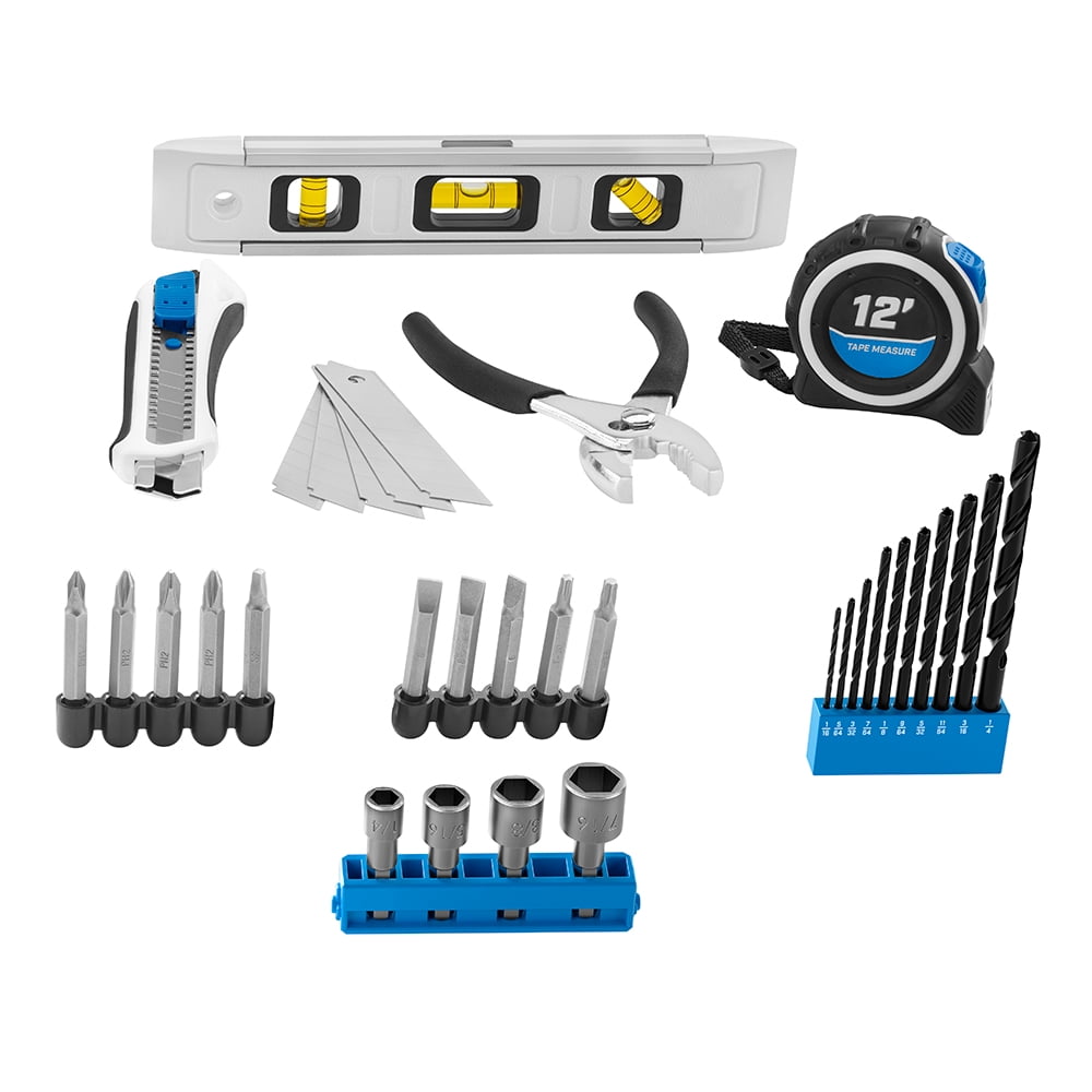 The 20V one battery system allows you to interchange the battery on all 20V HART products. It powers all HART 20V tools, outdoor, automotive and lifestyle items This product comes with a battery and charger Adjustable Clutch with 24 Torque Settings 33 Hand Tools & Accessories Included Variable speed trigger provides user control for precise drilling and driving Compact and lightweight design Overmold with microtexture grip New condition Portable storage bag included for easy transport of tools. Includes: 3/8″ Dill/Driver, (1) 1.5Ah 20V Lithium-Ion Battery, Charger, 10 PC. Drill Bit Set, 10 PC 2″ Driving Bit Set, Slide Knife, 5 Knife Replacement Blades, Slip Joint Pliers, 12 Ft. Tape Measure, Torpedo Level, 4 PC Nut Driver Set, 10-inch Storage Bag and Operator’s Manual Specs: Battery: 20V Lithium-Ion, RPM (Low-High): 0-600/min, Chuck: 3/8″ Keyless, Clutch: 24 Positions, Tool Weight: 3.6 lbs