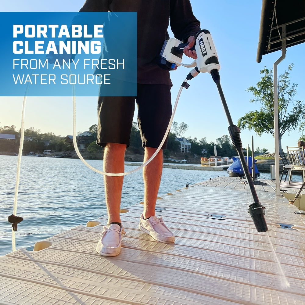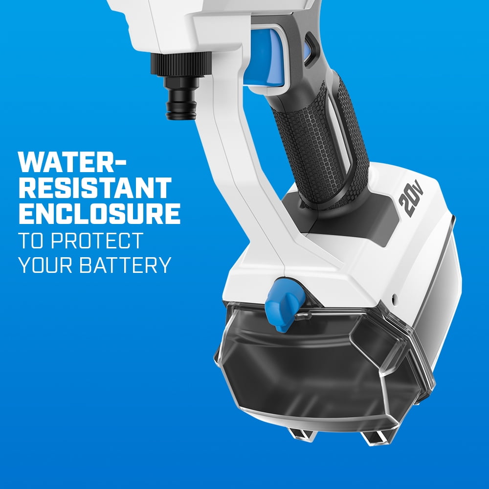 20V Lithium-Ion battery and charger sold separately 3-in-1 selectable nozzle for a variety of cleaning applications Water resistant protective battery enclosure Powerful performance with 320 PSI and 0.8 GPM Pressurized, portable cleaning from any fresh water source such as hose-to-bucket, hose-to-lake and hose-to-faucet Included wheel brush and foamer to make vehicle cleaning easier Works with All HART???? 20V Batteries Includes: Pressurized Vehicle Cleaner, 20 ft. Filtered Inlet Hose, Spray Wand, 3-in-1 Nozzle, Brush Attachment, Foamer Attachment and Operator’s Manual. Battery: 20V Lithium-Ion PSI: 320 GPM: 0.8 Weight: 4 lbs. New Condition