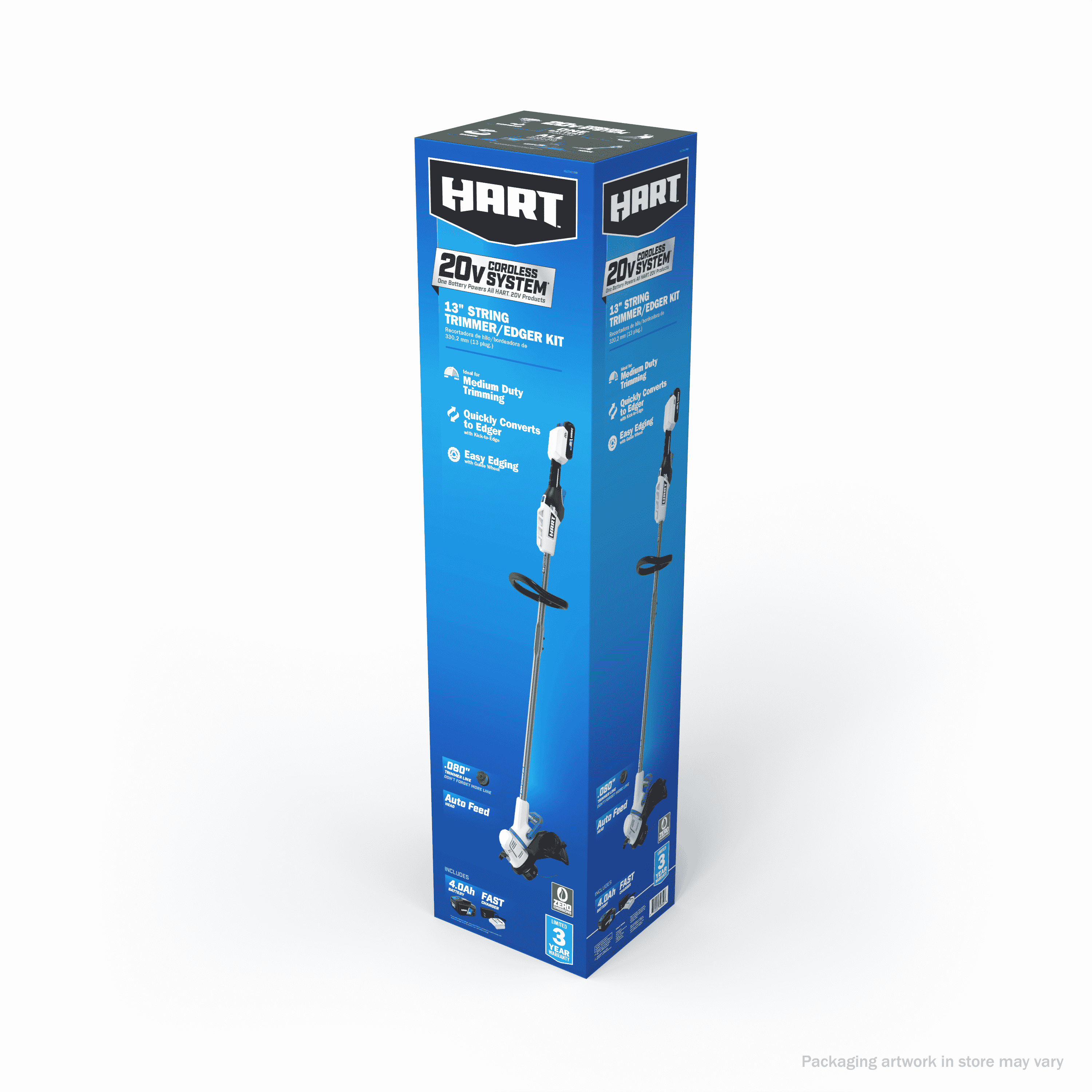It is a fantastic 2-in-1 tool that quickly converts to a dedicated edger with its pivoting head 13-inch cutting swath and auto-feed head Straight Shaft String Trimmer Ideal for use in small and medium-sized yards for maximum performance Works with All HART™ 20V Batteries