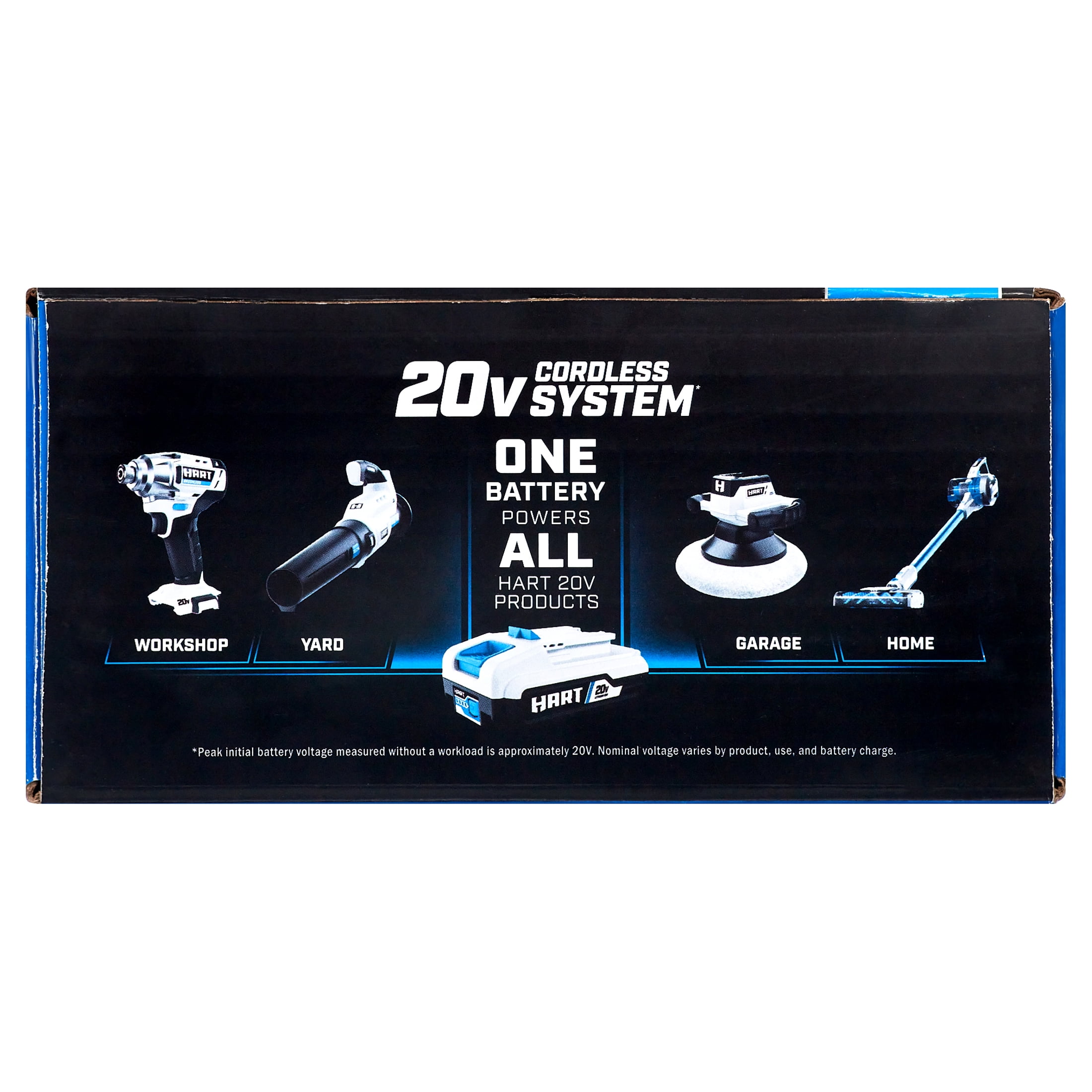 This kit also Includes a fast 2 AMP charger that’s compatible with any other 20V batteries. Batteries 100% compatible with all HART 20V products. On-board LED fuel gauge that lets you know how much charge you have left at a glance.