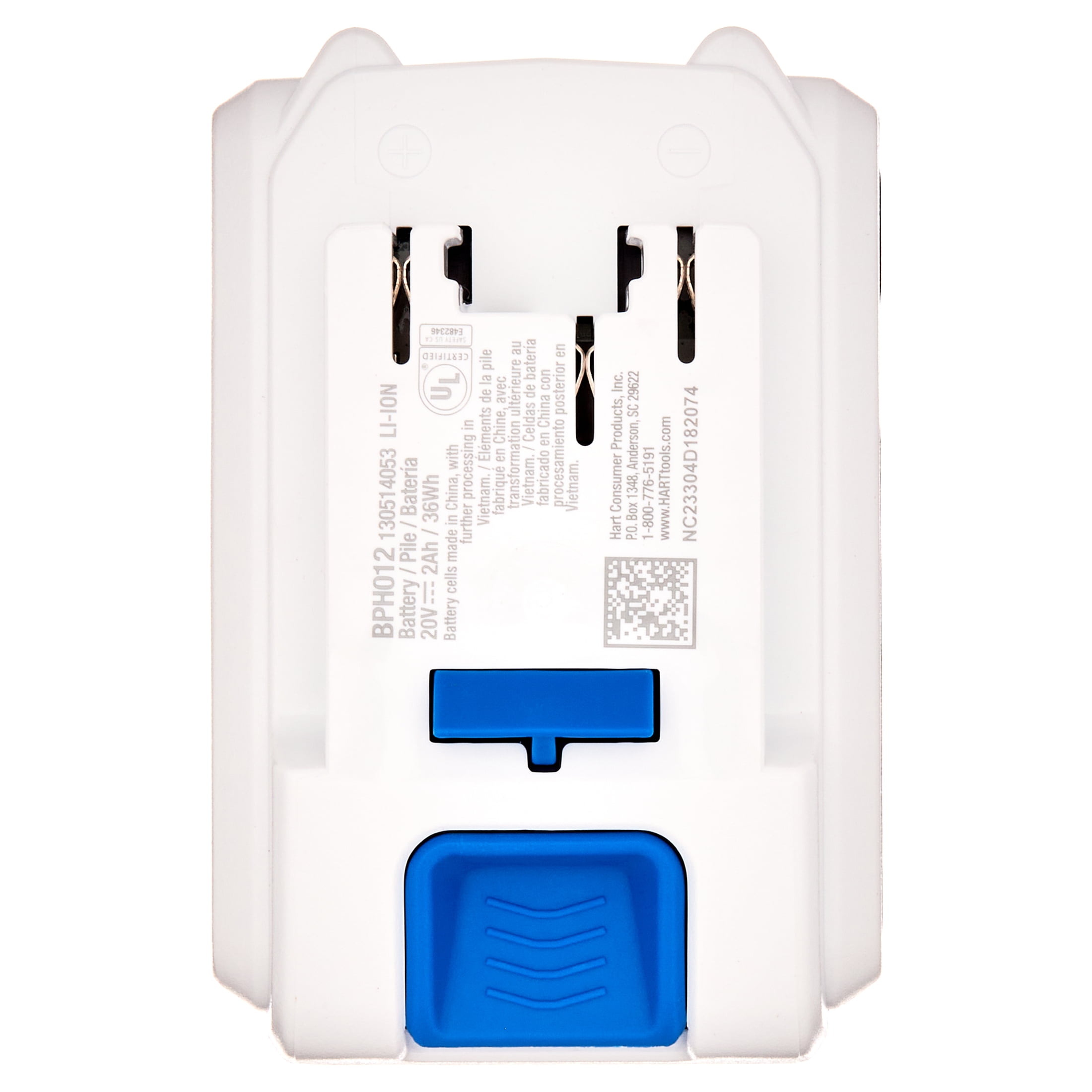 The HART 20V 2.0Ah Lithium-Ion battery is an excellent addition, or start to, any DIYer’s HART tool collection. This battery is compatible with all HART 20V power tools. It features Lithium-Ion technology to give you long-lasting and fade-free power to get you through any project you decide to take on. This battery is designed to be compact and lightweight for more maneuverability and while reducing user fatigue. Whether you are maintaining your yard with HART outdoor tools, cleaning and maintaining your car with HART automotive tools or keeping cool and entertaining with HART lifestyle tools, the HART 20V 2.0 Ah battery is there to provide the power you need when you need.