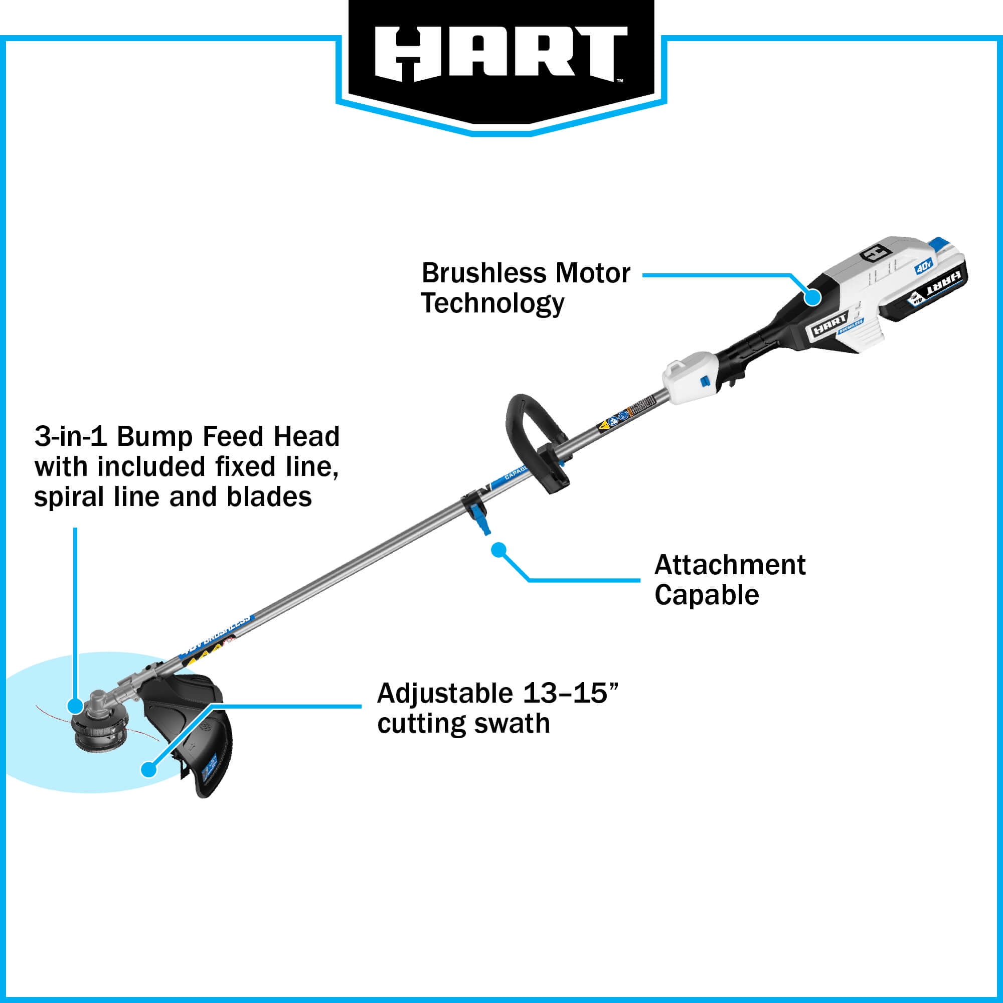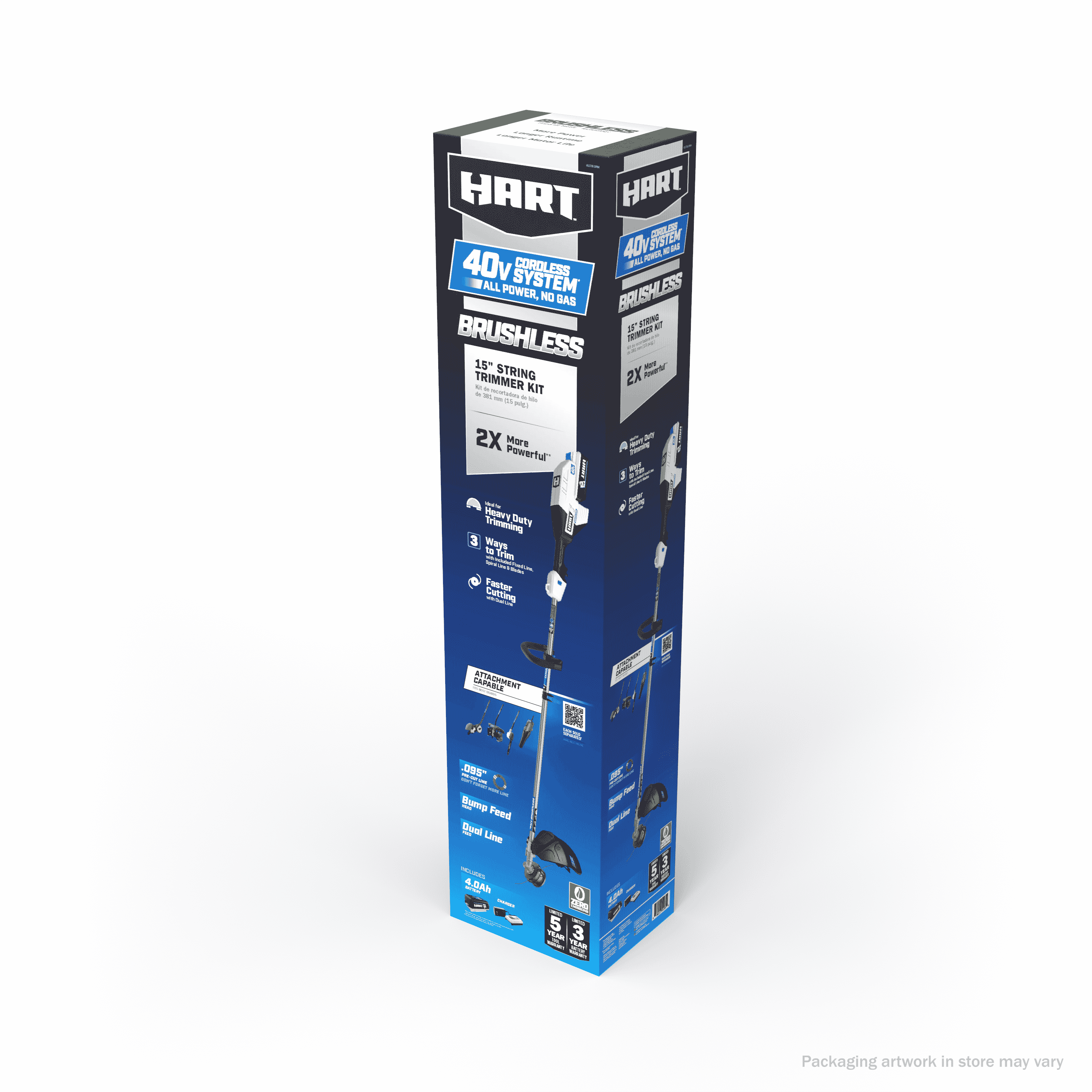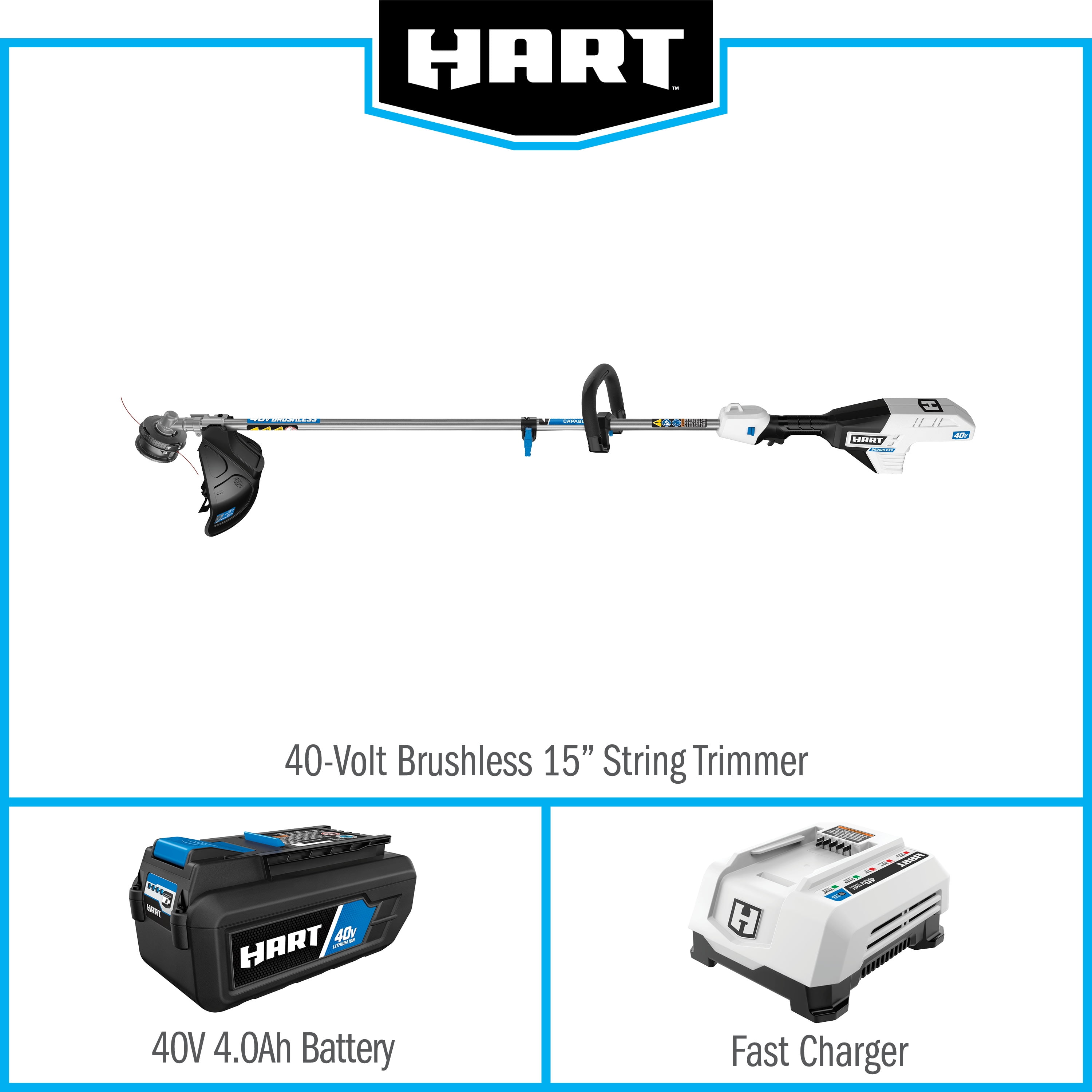 HART 40 Volt Cordless Brushless 15-inch String Trimmer Kit, (1) 4.0Ah Lithium-Ion Battery