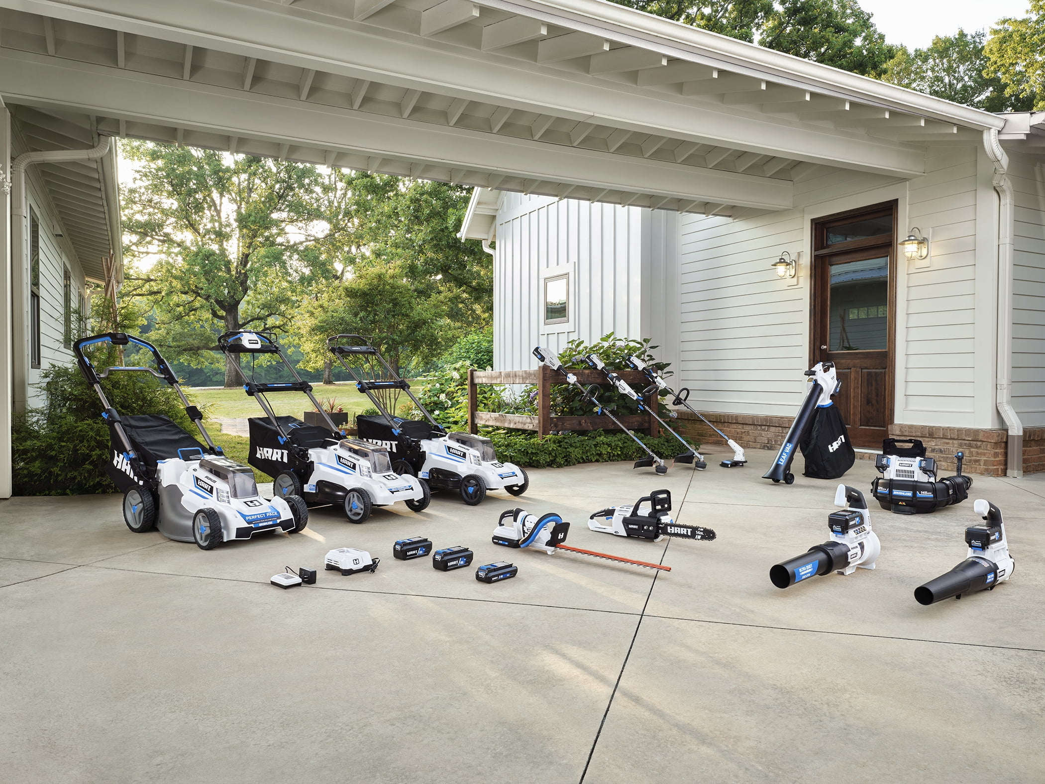 Variable speed trigger for increased control Lightweight design for user comfort The auto-feed head requires no bumping Straight Shaft String Trimmer Adjustable 10”-12″ cutting swath Includes .080″” line and spool Works with All HART™ 40V Batteries 450 CFM/120 MPH Turbo fan design for stronger debris removal Variable speed trigger for increased control Ideal for clearing wet debris off hard surfaces Works with All HART™ 40V Batteries