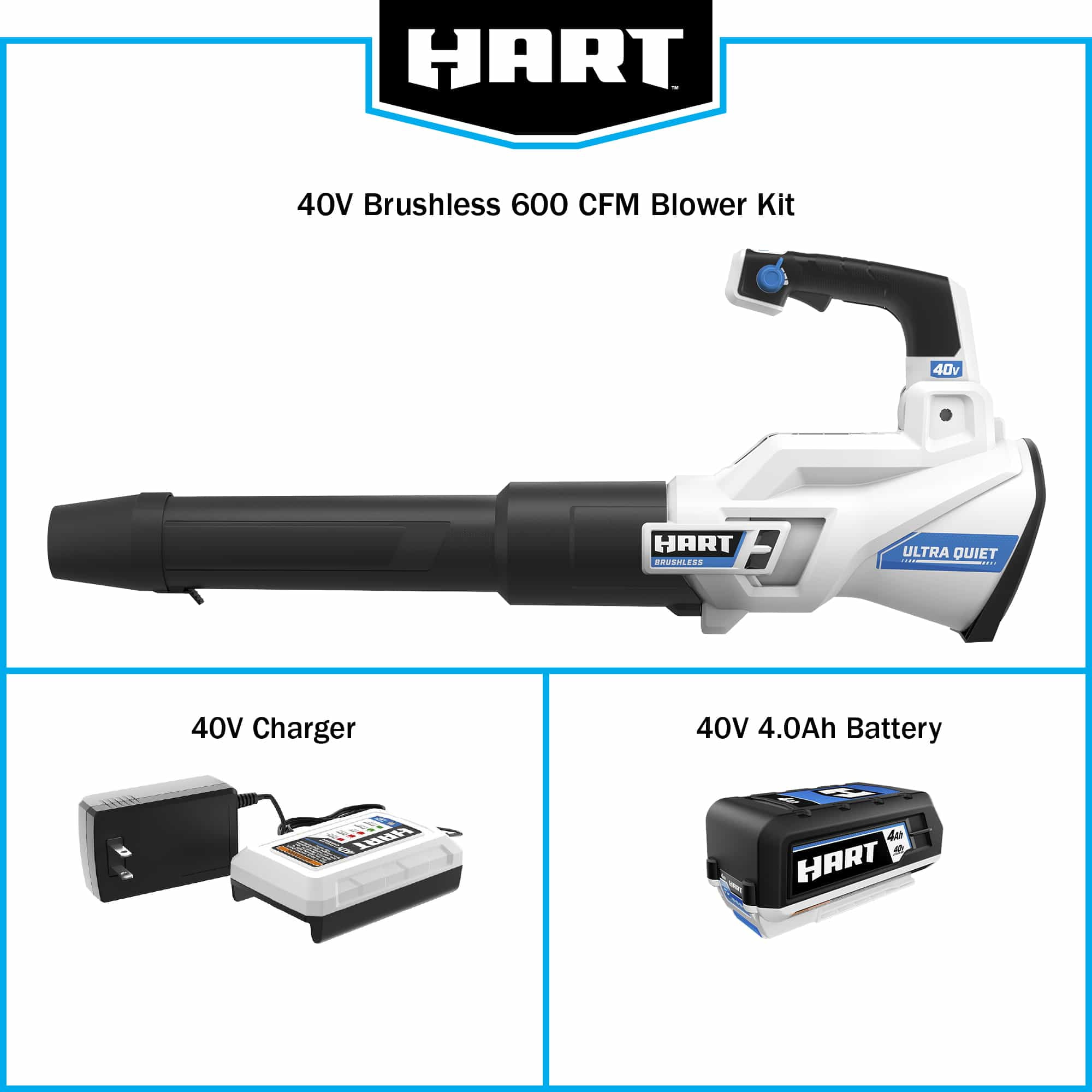 HART 40V 155 MPH at 600 CFM Cordless Brushless Axial Leaf Blower Kit, (1) 4.0Ah Lithium-Ion Battery