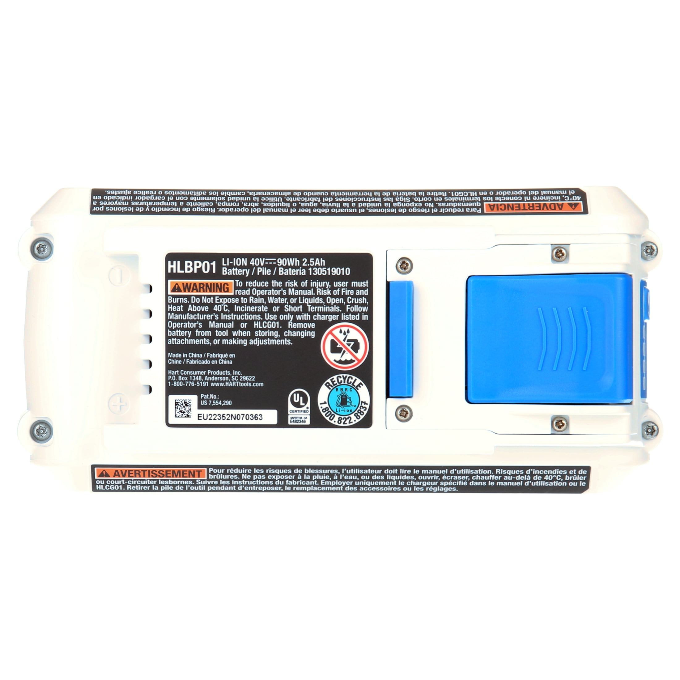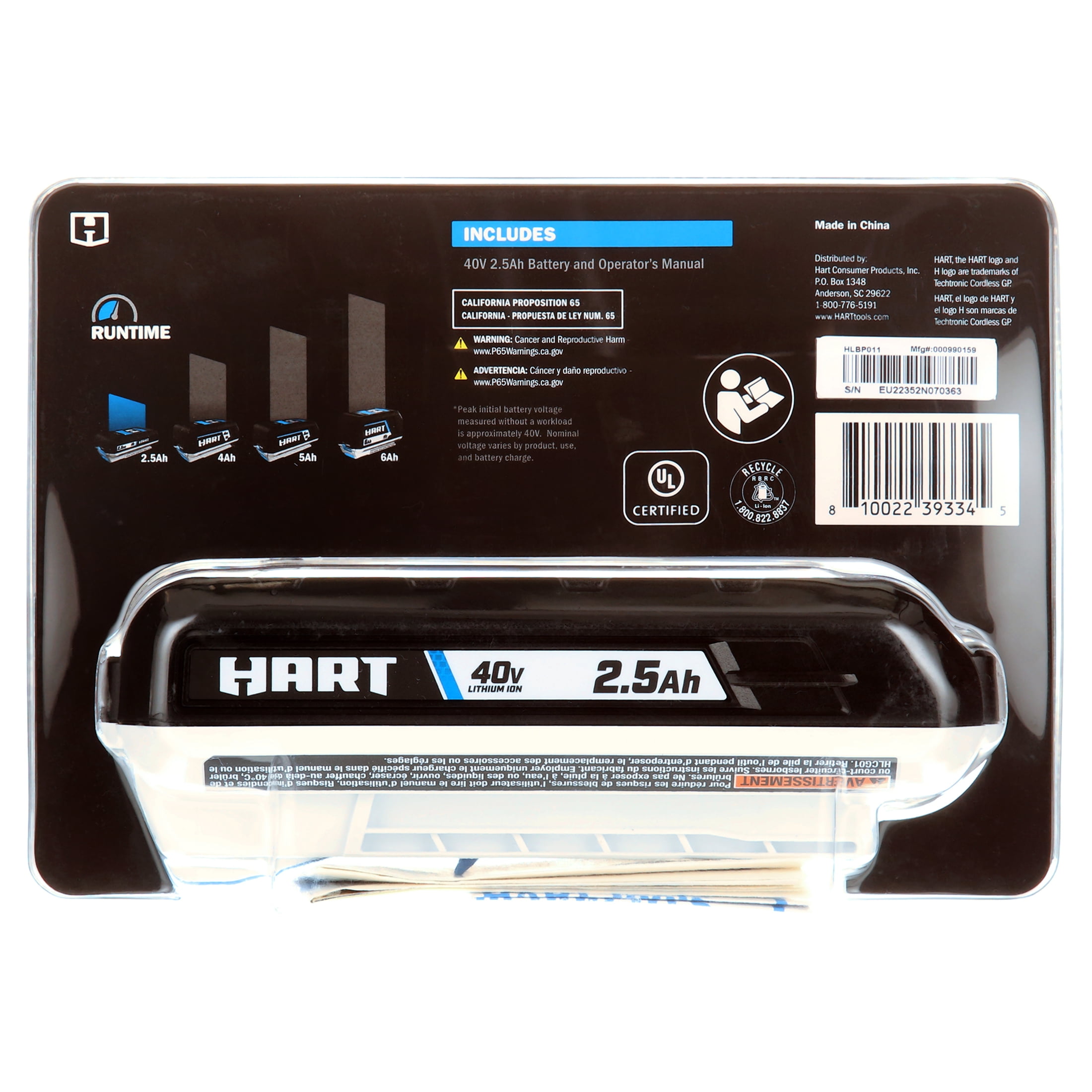 HART 40V 2.5Ah Battery Accessory, Lithium-Ion, On-Board Fuel Gauge