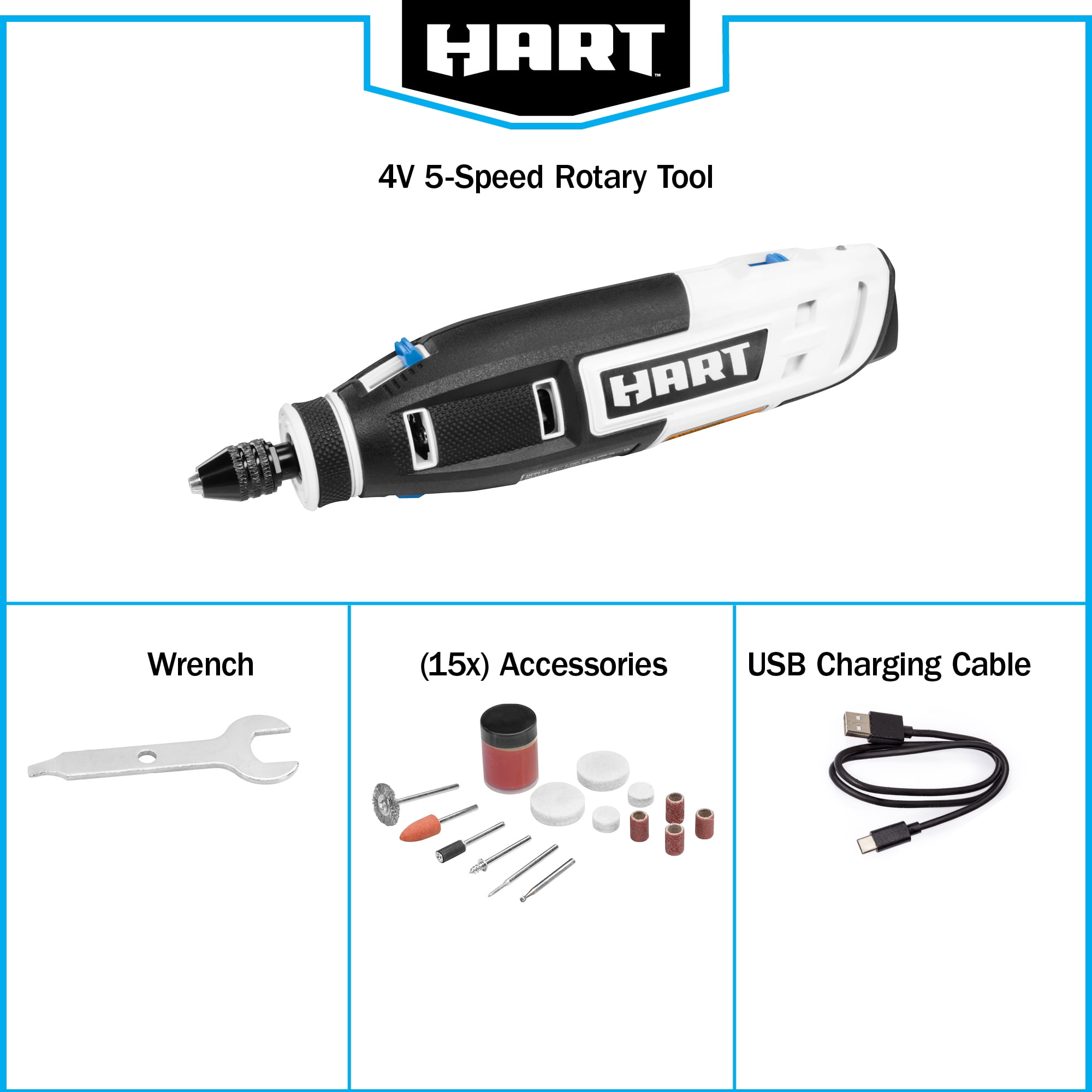 HART Battery Powered 4 Volt Rotary Tool Kit with Accessories