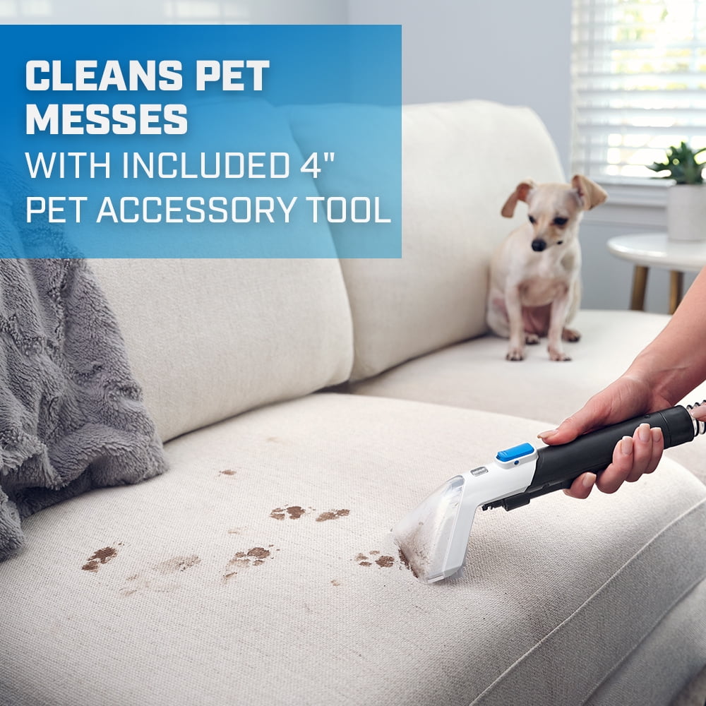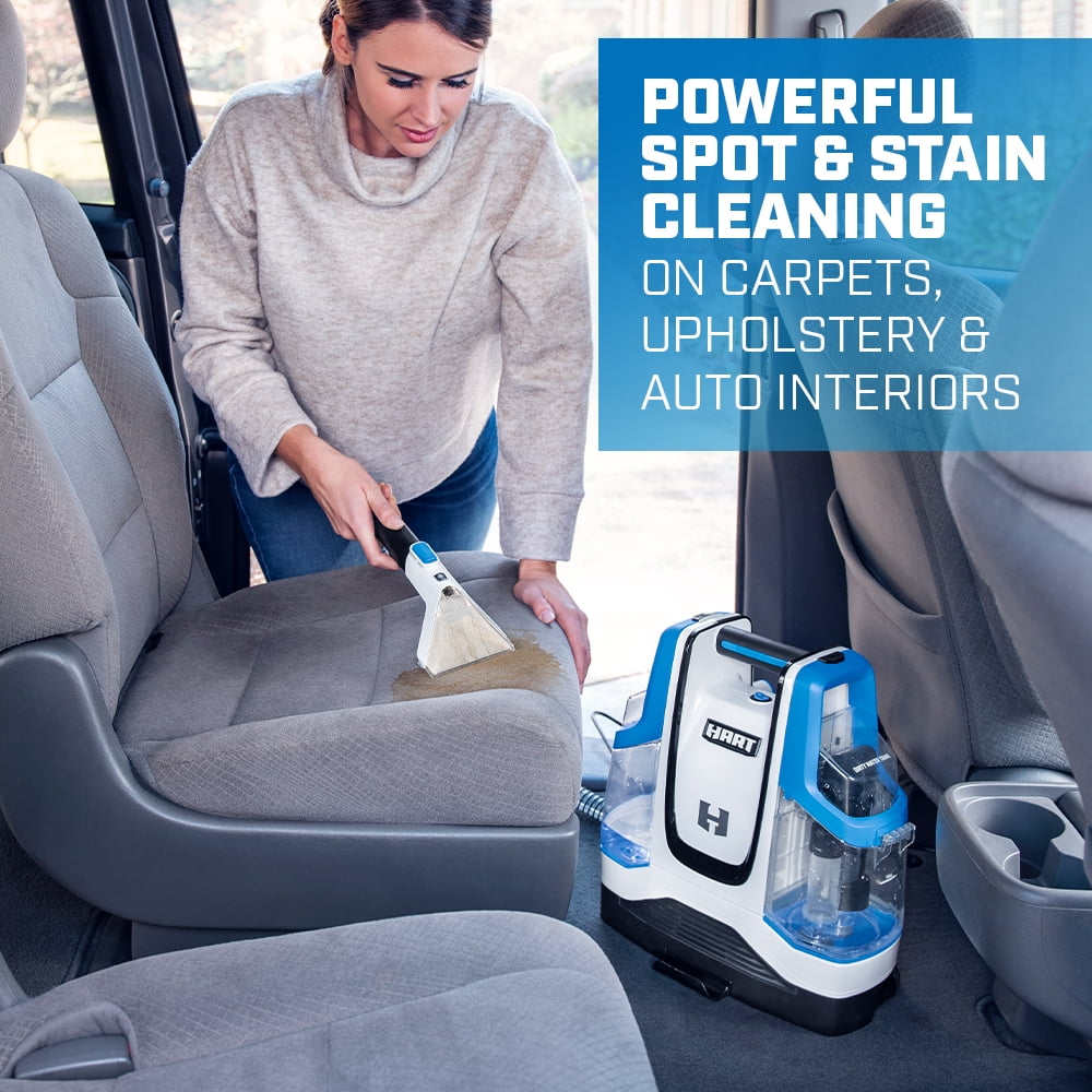 The HART Spot Cleaner is ideal for spot and stain cleaning on carpets, upholstery, and auto-interiors. Portable cleaning with a compact, lightweight design (51 Ounce) Clean up pet messes with the included 4” pet accessory tool Easily reach difficult spots with included 45 ft. hose Key Features Includes: (1) Spot Cleaner, (1) Trial-sized Unscented Pet Carpet Cleaning Formula, (1) 4” Pet Accessory Tool, (1) 5’ Hose, and (1) Operator’s Manual