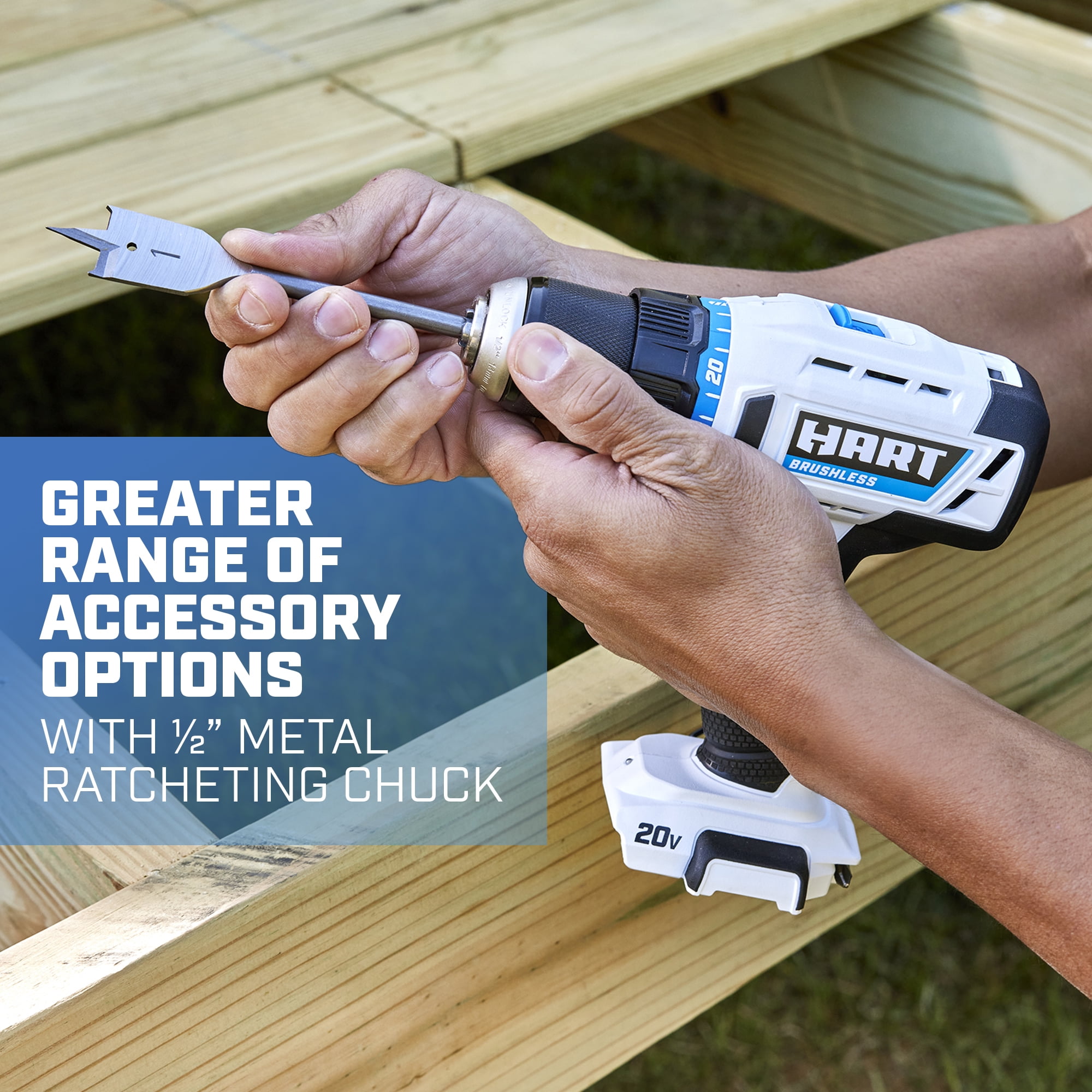 HART’s 20V Brushless 1/2” Drill/Driver Kit boasts up to 2,000 RPM and up to 550 in-lbs. of torque to handle almost every drilling or driving job you’ll ever come across. Where does this power come from? In 3 words: Brushless motor technology. Using the same HART 20-Volt Lithium-ion battery (not included), the Brushless motor is up to 20% faster than its brushed counterpart. This tool features a variable speed trigger for controlled drilling and driving and an onboard LED light for illumination. Apart from that, it also has a new 1/2″ Ratcheting Metal Chuck for increased durability. Upgrade your toolkit today with HART!