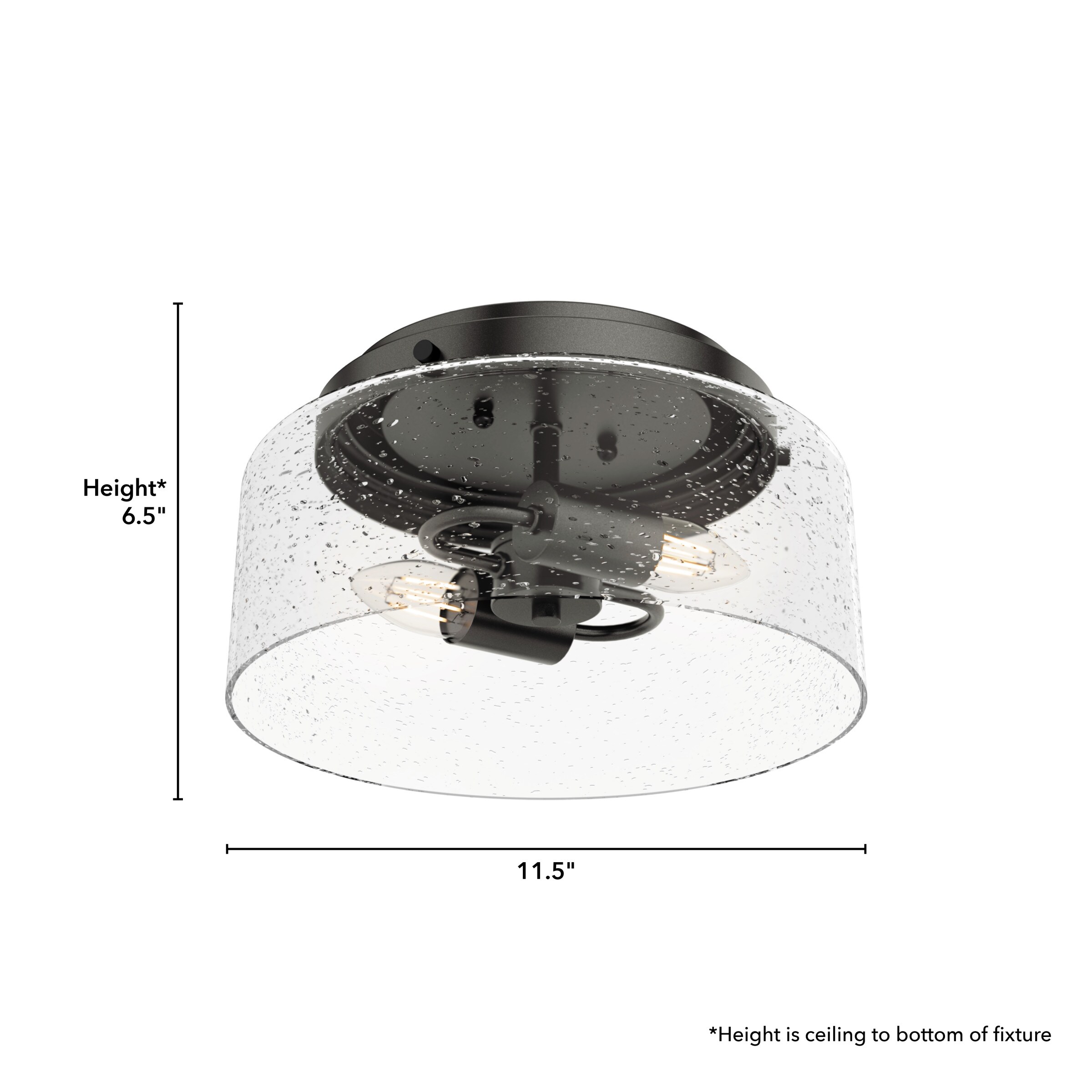 The Hartland 2 light flush mount delivers a revised classic look that works with a variety of styles. No matter the bulbs you choose, the clear seeded glass is sure to catch your eye as it sparkles from the rays of light. Match your decor with either of our popular Matte Silver or Noble Bronze finishes. Combine the Hartland flush mount with other members of its collection for the perfect look!