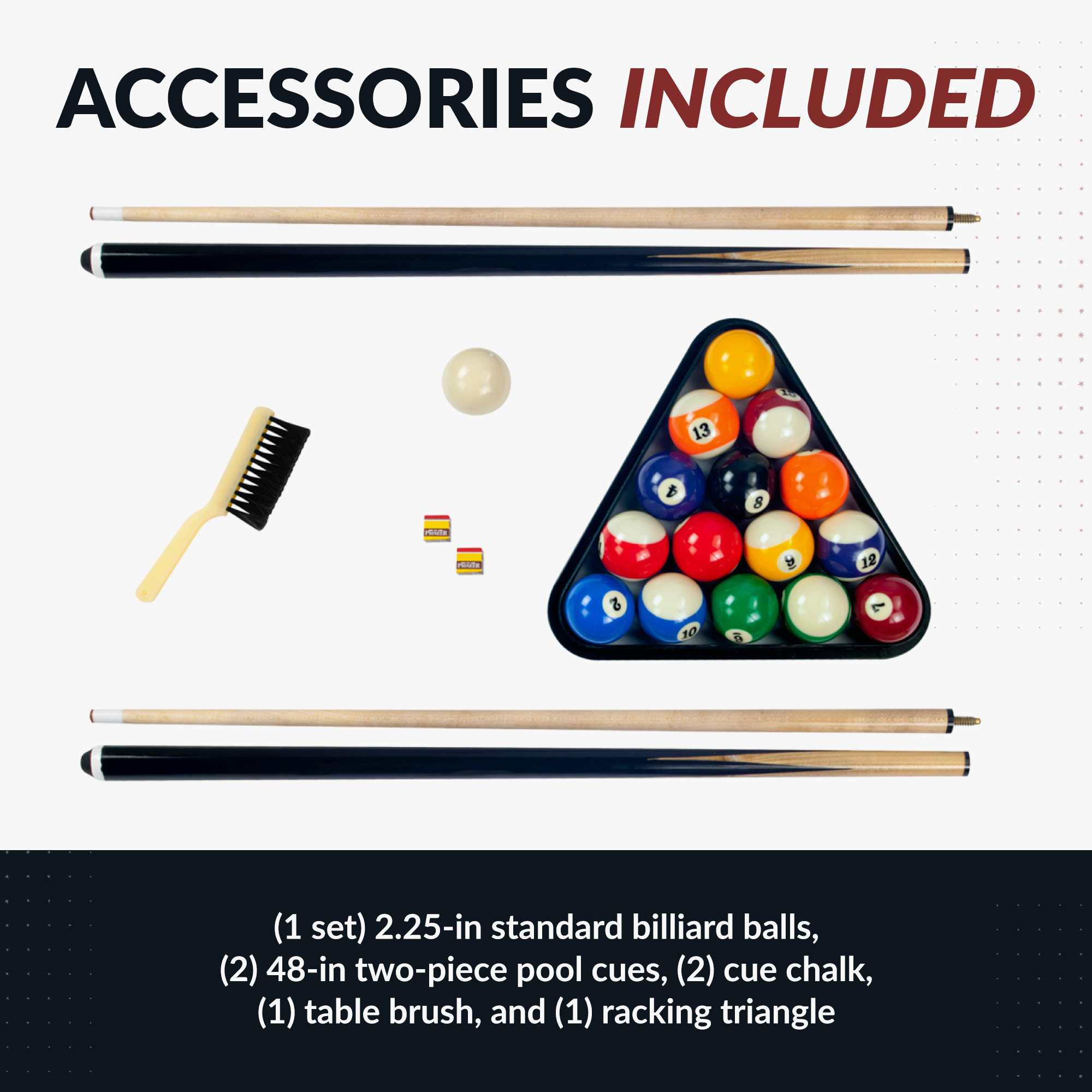 The unique Hathaway Pendleton 6-ft Pool Table is the perfect addition to any game room, basement, or den. Its compact, 6-foot frame is perfect for kids learning the game and adults will appreciate its high-quality construction and simple, space-saving design. Super easy to set up and even easier to store, this table is certain to provide hours of fun and competitive play for both children and adults. Includes all pool table accessories.180-day limited warranty.