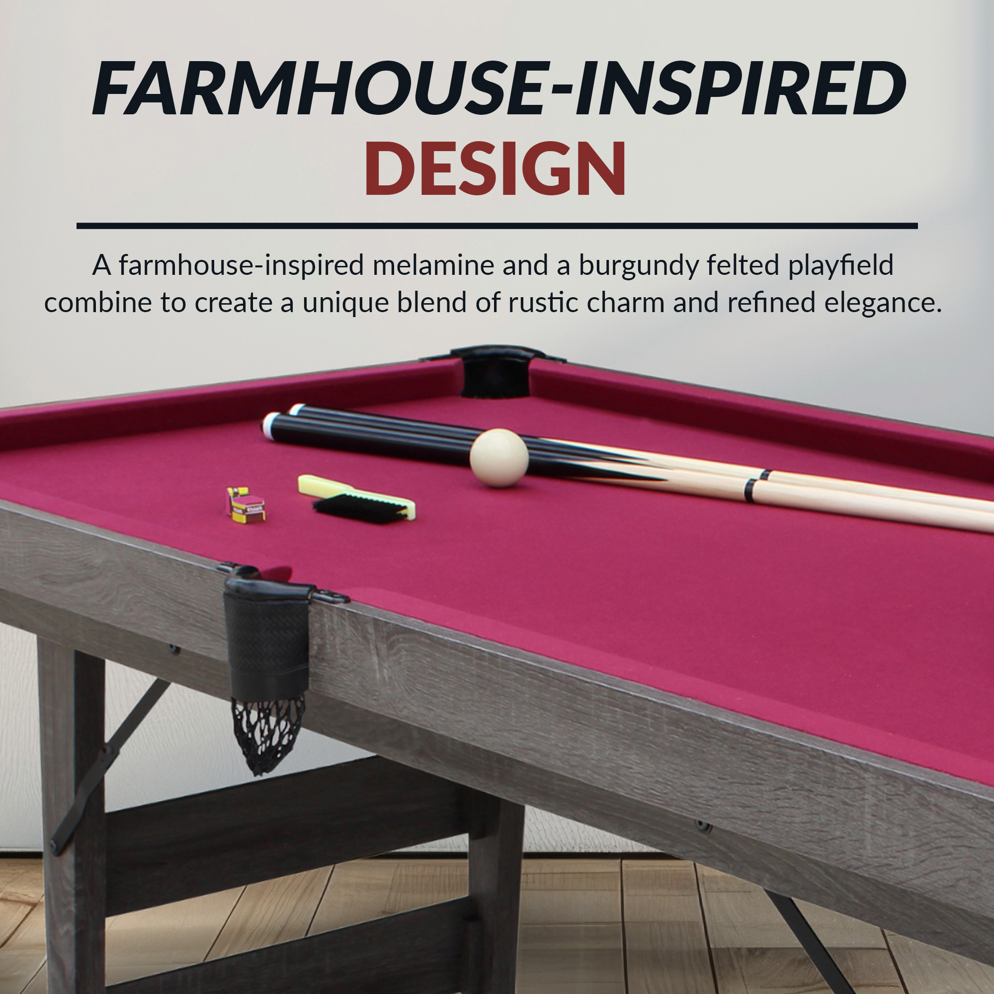 Hathaway 6-ft Pendleton Portable Pool Table, 72-in l x 36-in w, driftwood finish with burgundy felt