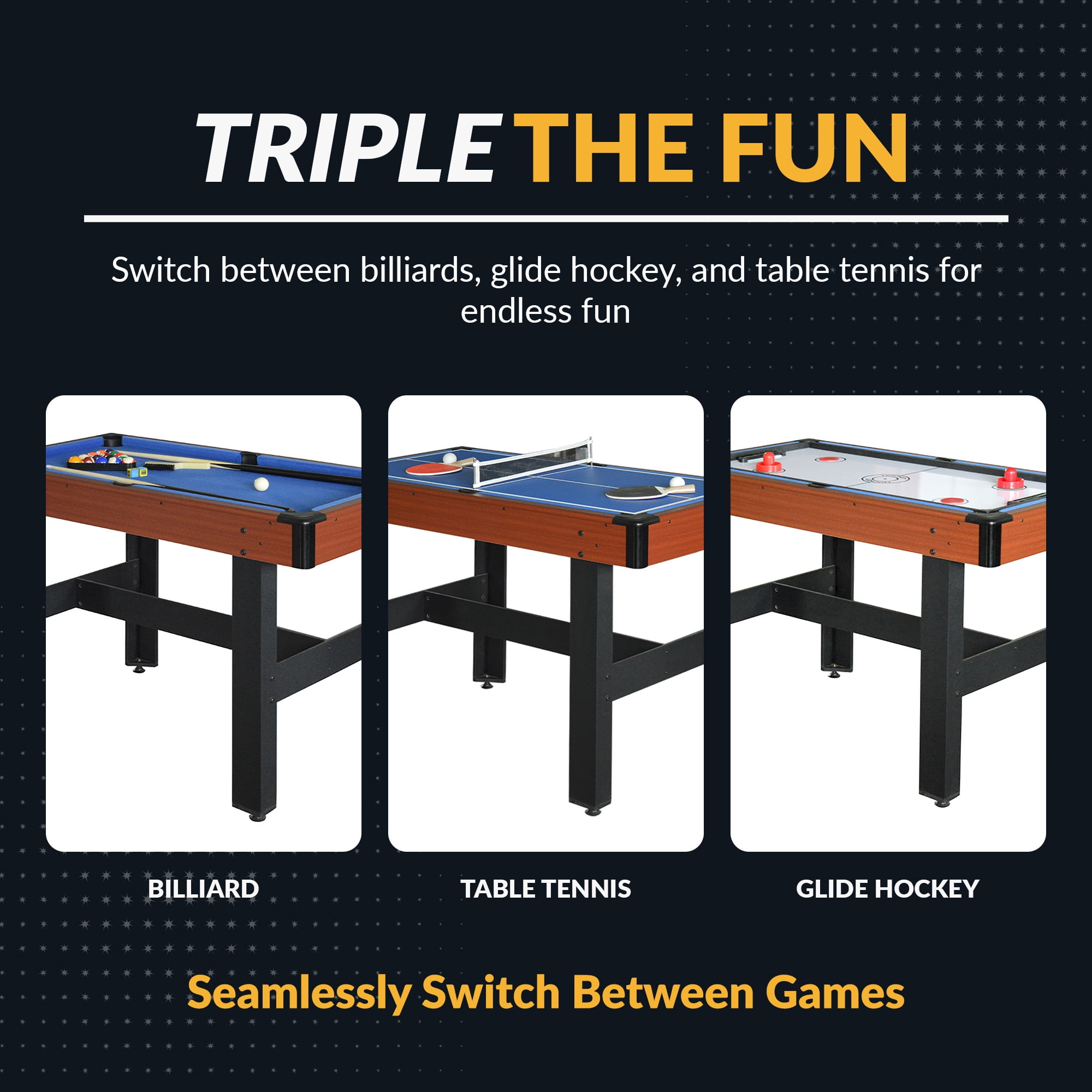 Hathaway Triad Multi Game Table with Pool, Glide Hockey, and Table Tennis, 48-in, Blue/Multi