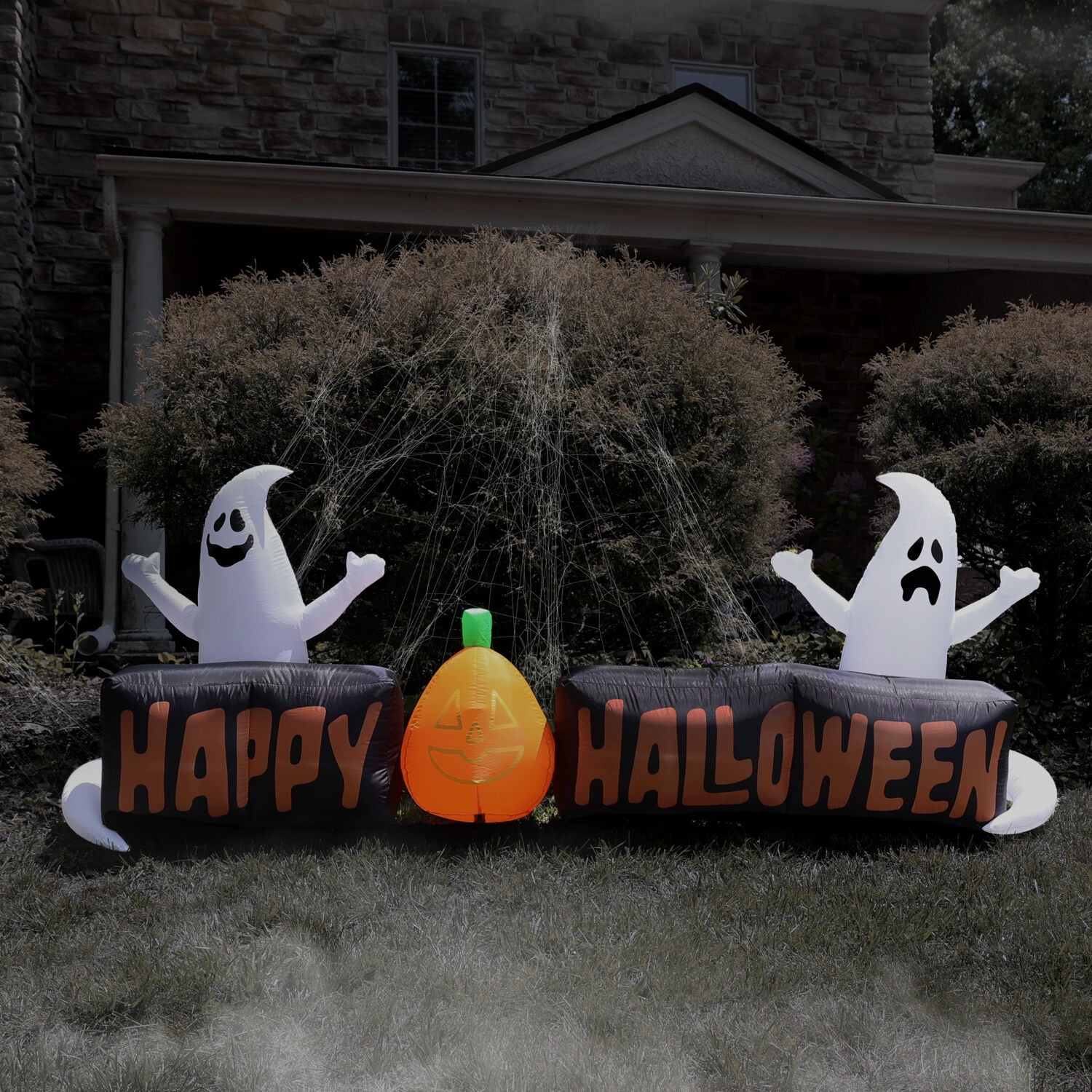 8 feet wide: This large inflatable sign is sure to bring the festive spirit to your yard and welcome trick-or-treaters. Pre-lit: The sign casts a bright glow when illuminated with the inflatable’s internal light, so it will be seen on even the darkest of Halloween nights. Easy to assemble: Setup is a breeze with the included ropes and spikes. Simply place the inflatable where desired in your yard, inflate, and secure with stakes. Storage bag included: Pack up and store the inflatable at the end of the season with the included storage bag that will keep it clean and safe until it’s time to be set up again. Plug-in operated: Your Halloween blow up will be inflated 90 seconds after being plugged into a standard electrical outlet.