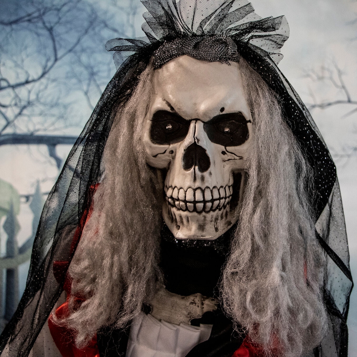 Haunted Hill Farm 65″ H 3.5lbs Life-Size Animatronic Skeleton Bride, Halloween Decor, HHBRIDE-1FLSA