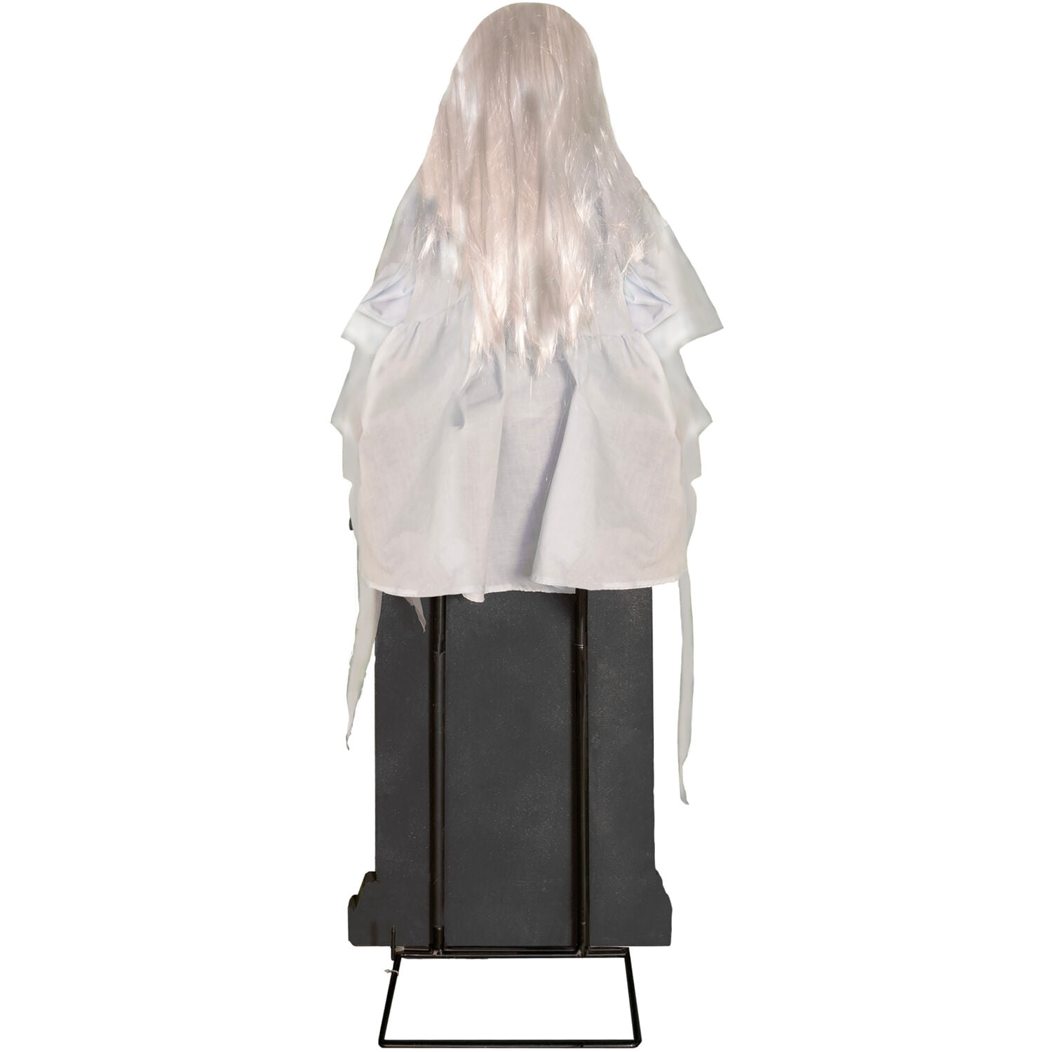 Premium Life-Size Animatronic: Darcy, the sitting tombstone girl, will terrify your trick-or-treaters as she sits on a headstone, trapped between the living and the dead. Spine-tingling animation includes talking, humming, giggling, haunting sound effects, moving head, and swinging legs. Talking Scare Prop: Phrase 1-I’m lost, do you know the way out of here? Phrase 2-This place is kind of scary. I’d stay away if I were you. Phrase 3-I live here in the graveyard. Would you like to live here with me? Motion and Sound Activated: This creepy kid is motion-sensor and sound (loud clap) activated. Choose Darcy to create a spooky graveyard or an evil cemetery near your front door, on your porch, or in your foyer to frighten your family, friends, and neighbors. Battery Operated with Plug-In Option: This animated prop runs on 4AA batteries (not included), so you can conveniently place it anywhere in your home or covered outdoor space. Power adapter included. Assembly Required: Hardware and instructions included. Assembled Dimensions 19″L x 30″W x 48″H; Assembled Weight 6 lbs. Back from the Dead Collection by Haunted Hill Farm and Tekky Toys Darcy, the sitting tombstone girl, will terrify your trick-or-treaters as she sits on a headstone, trapped between the living and the dead Creepy creature is motion sensor and sound (loud clap) activated – operates on the included UL plug-in adapter or 4 AA alkaline batteries (not included) Spine-tingling animation includes talking, humming, giggling, moving head, swinging legs, and haunting sound effects As she speaks, her soulless white eyes light up while a blue light radiates from her chest, adding to her ghostly appearance Scary Phrase 1: I’m lost. Do you know the way out of here? (giggles) Scary Phrase 2: This place is kind of scary. I’d stay away if I were you. (humming and giggling) Scary Phrase 3: I live here in the graveyard. Would you like to live here with me? (music and giggling)