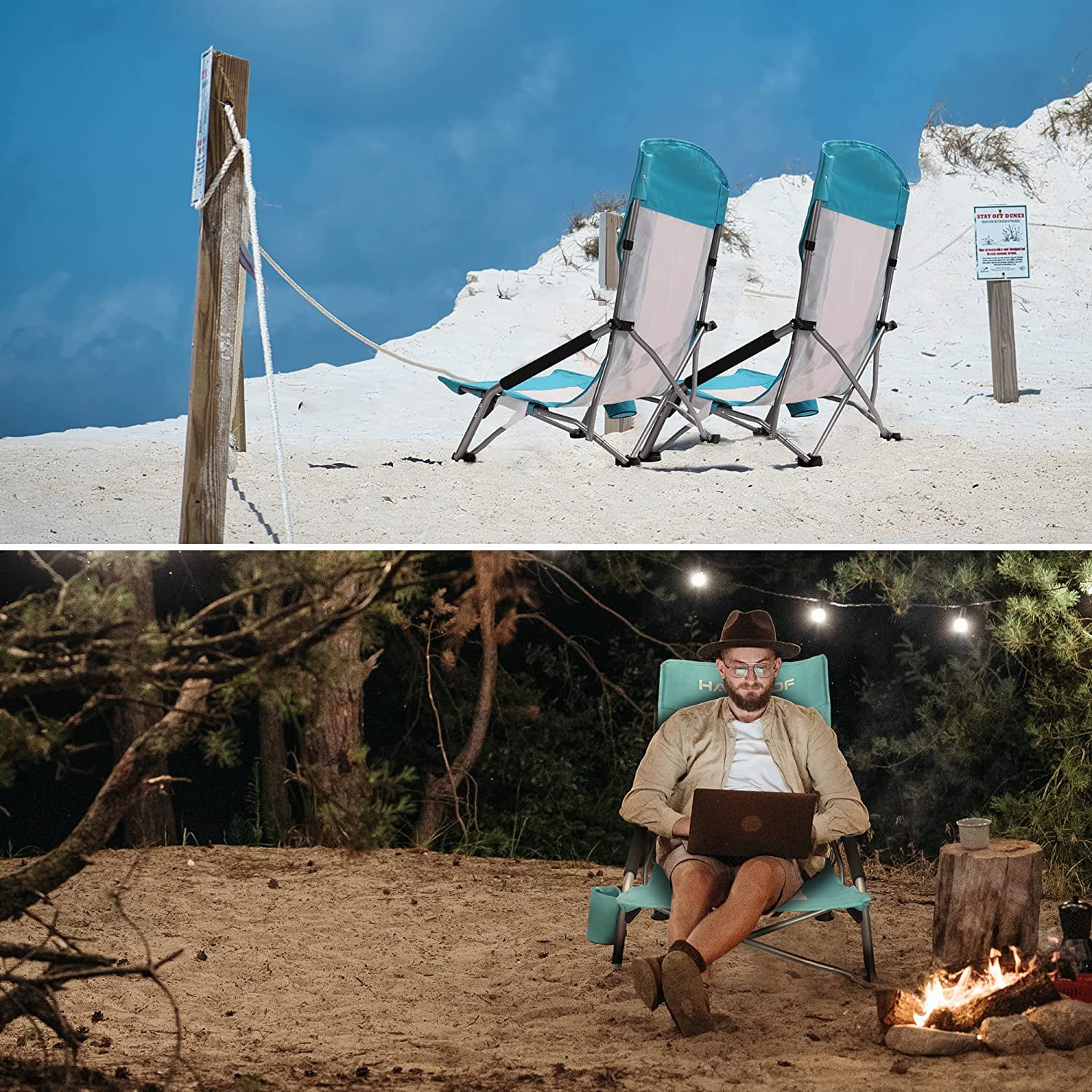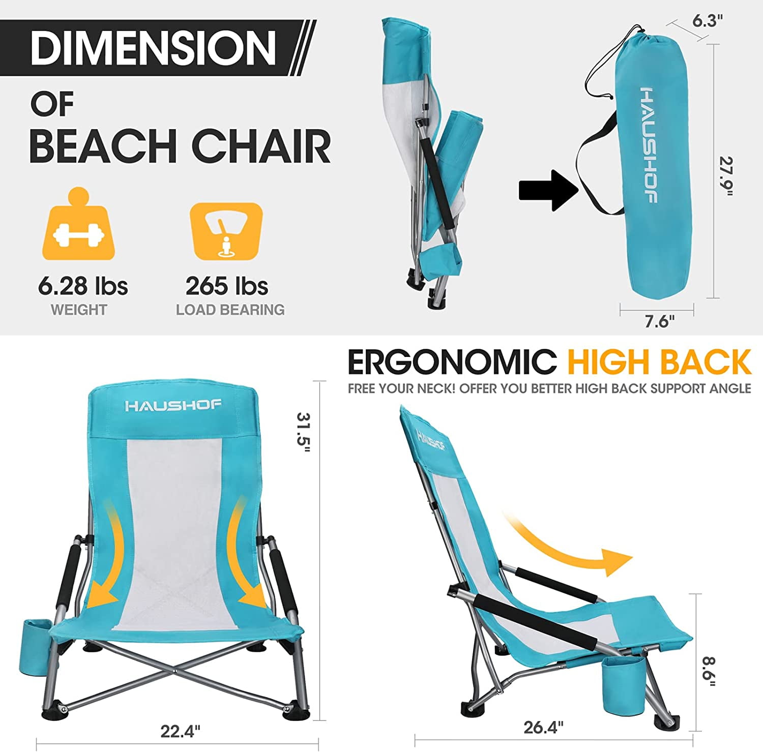 Ergonomic Design – High Back with Better Reclining Angle reduces the pressure on your neck. Low seats allow you to fully stretch your legs. Get cozy in this low beach chair with mesh back and arm resting cushions. Lightweight & Portable – Grab and go! Weighs only 6.83 lbs. Package size 27.9 × 7.6 × 6.3 inches. Comes with a carry bag for backpacking, easy storage and great portability. Heavy Duty & Weight Capacity – Maximum Seated Weight Capacity: 265lbs. Durable 600D Oxford fabric. Industrial Grade Iron ensures a higher compressive strength than aluminum. Convenient & Functional – Open and close in seconds. The easy reaching cup holder allows you to enjoy an entire day of relaxation. Also easy to clean: only need a towel or soap and water. Multi-purpose – Whether it’s beach vacations, camping, picnic, concerts, lawn, watching a football match, or just taking a nap in your own yard and balcony, HAUSHOF outdoor beach camp folding chairs always meet your needs.